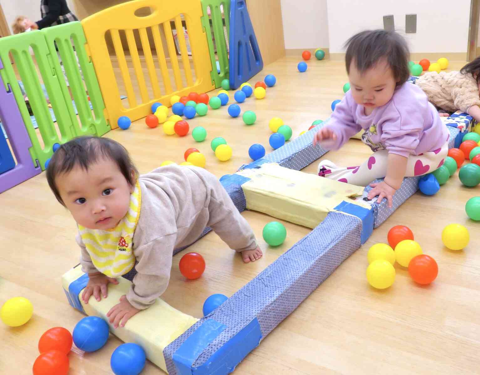 0歳児ひよこ組さんは、コーナに分かれて