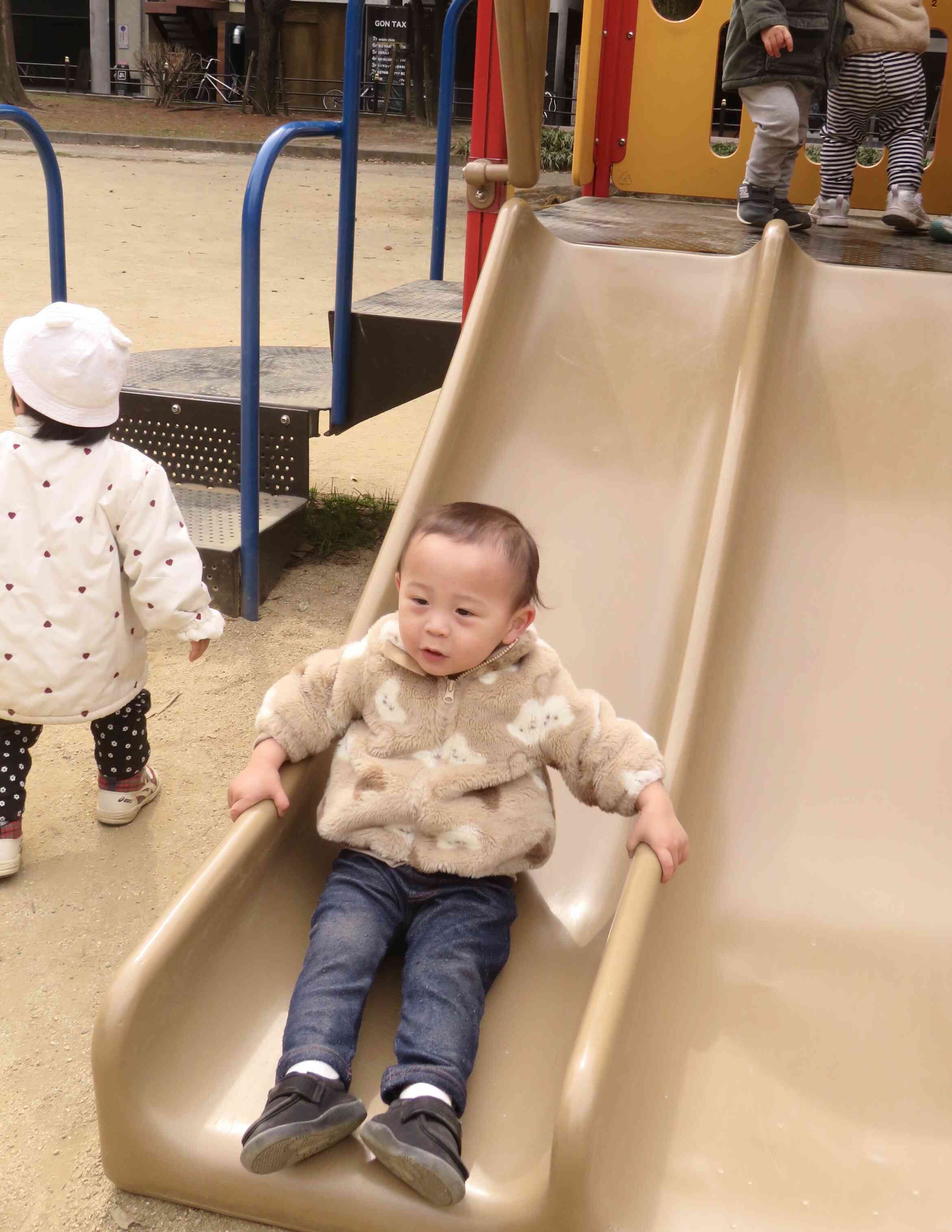 滑り台で遊びました。