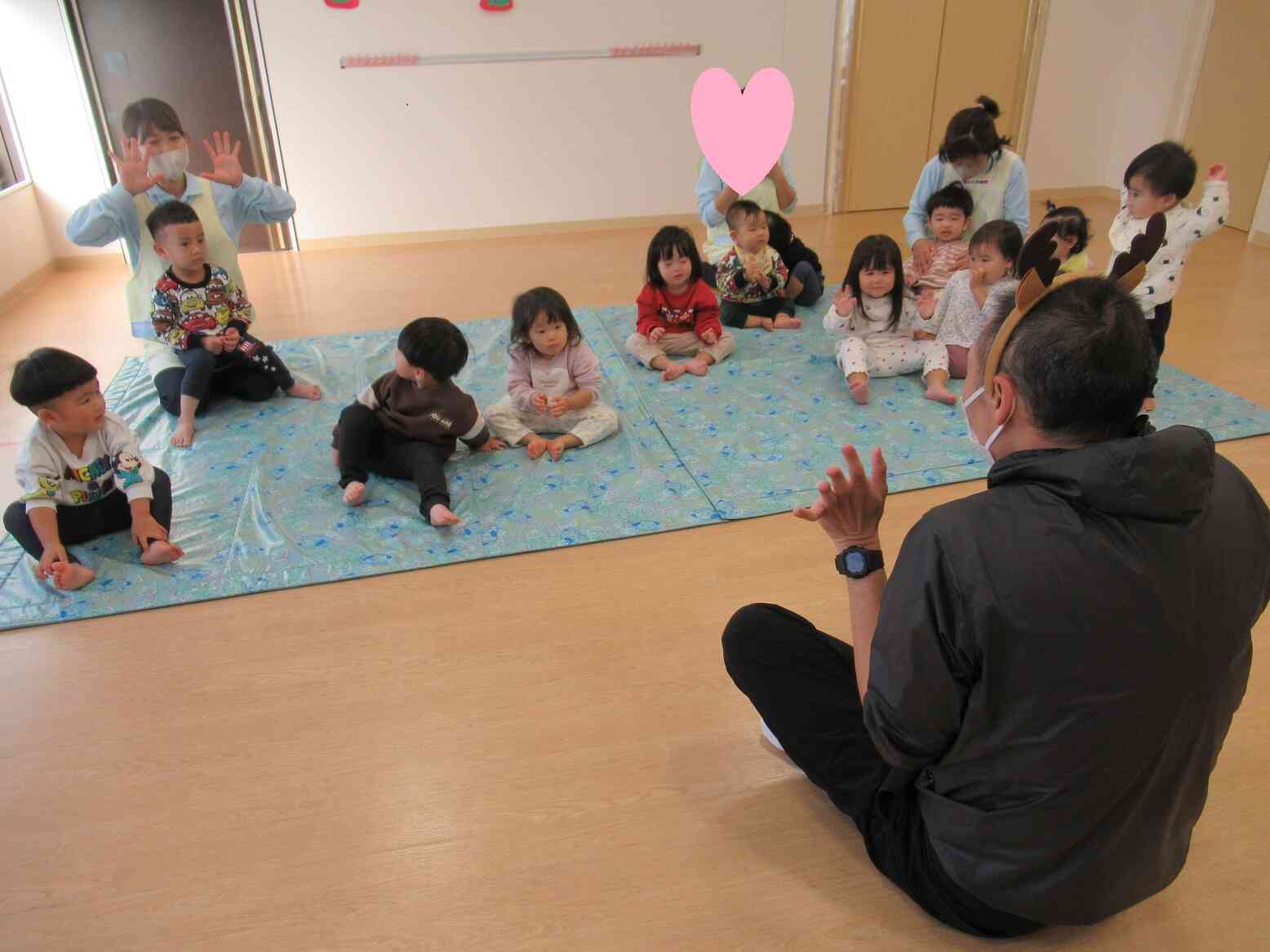 「walking walking」の英語の曲にのせて、身体を動かすおともだち。