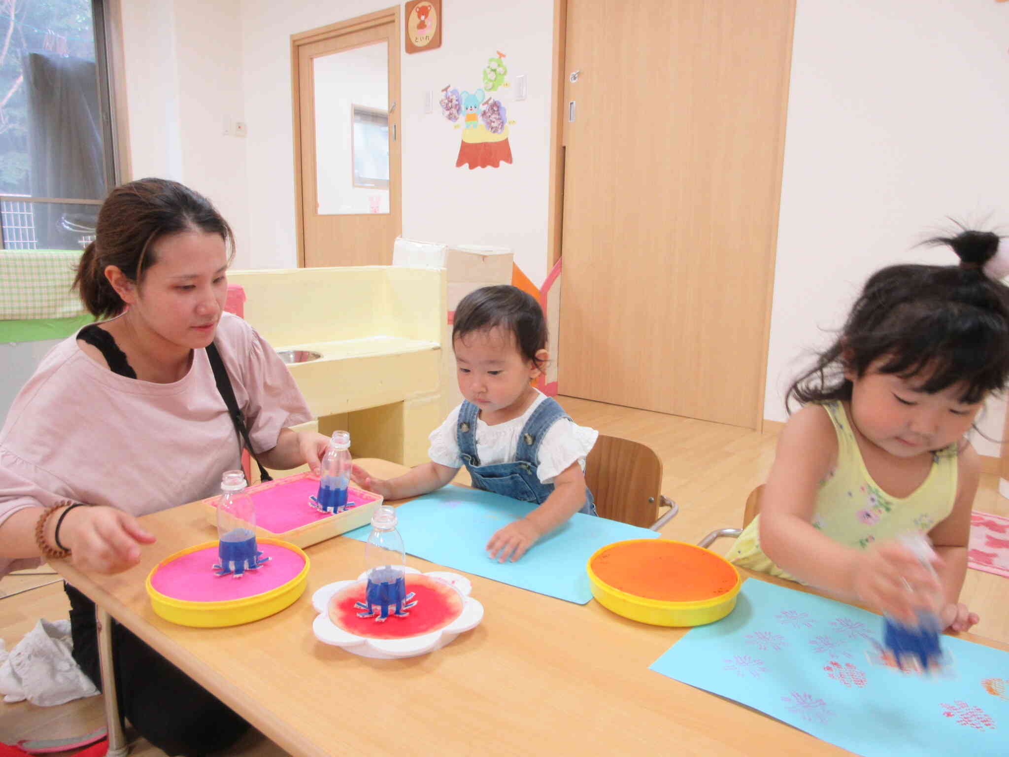 自分で好きな色をを選び画用紙にポンポン!!