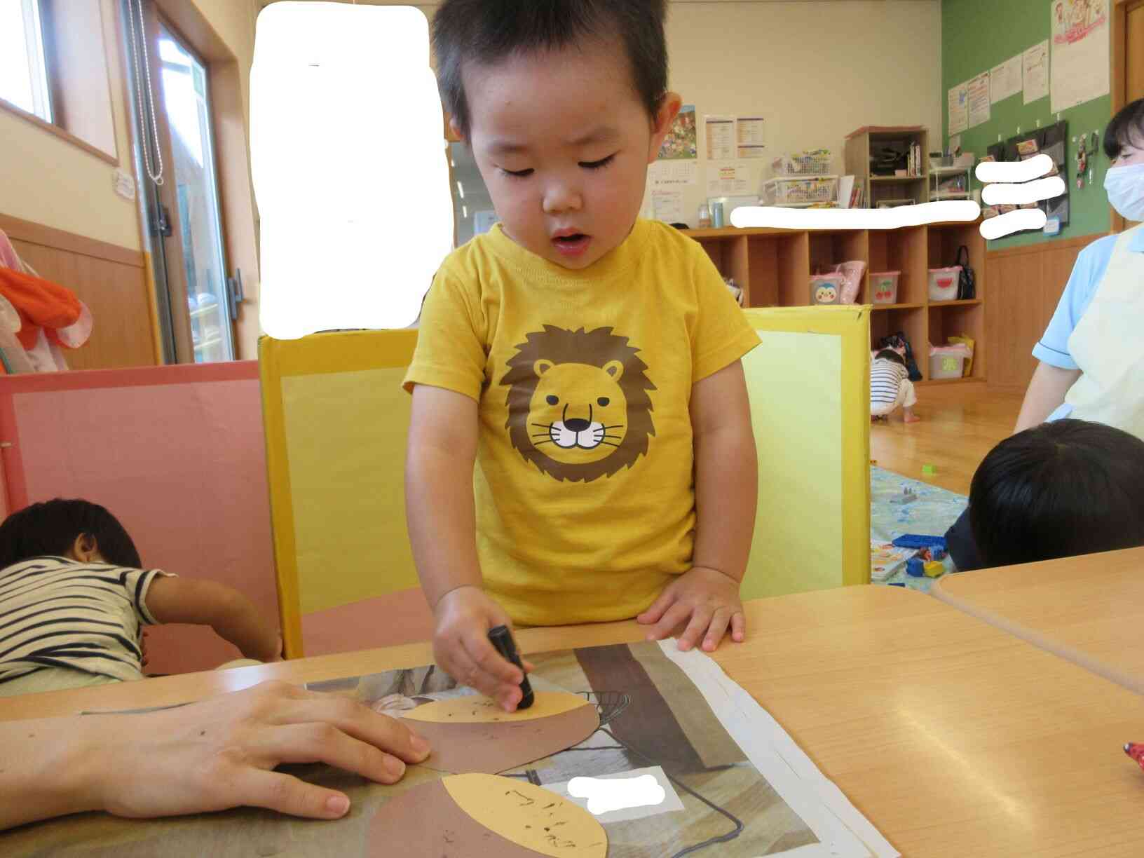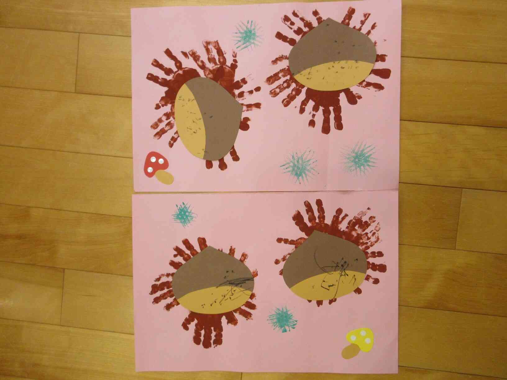 周りの緑色のいがぐりはフォークでスタンプしました!!
