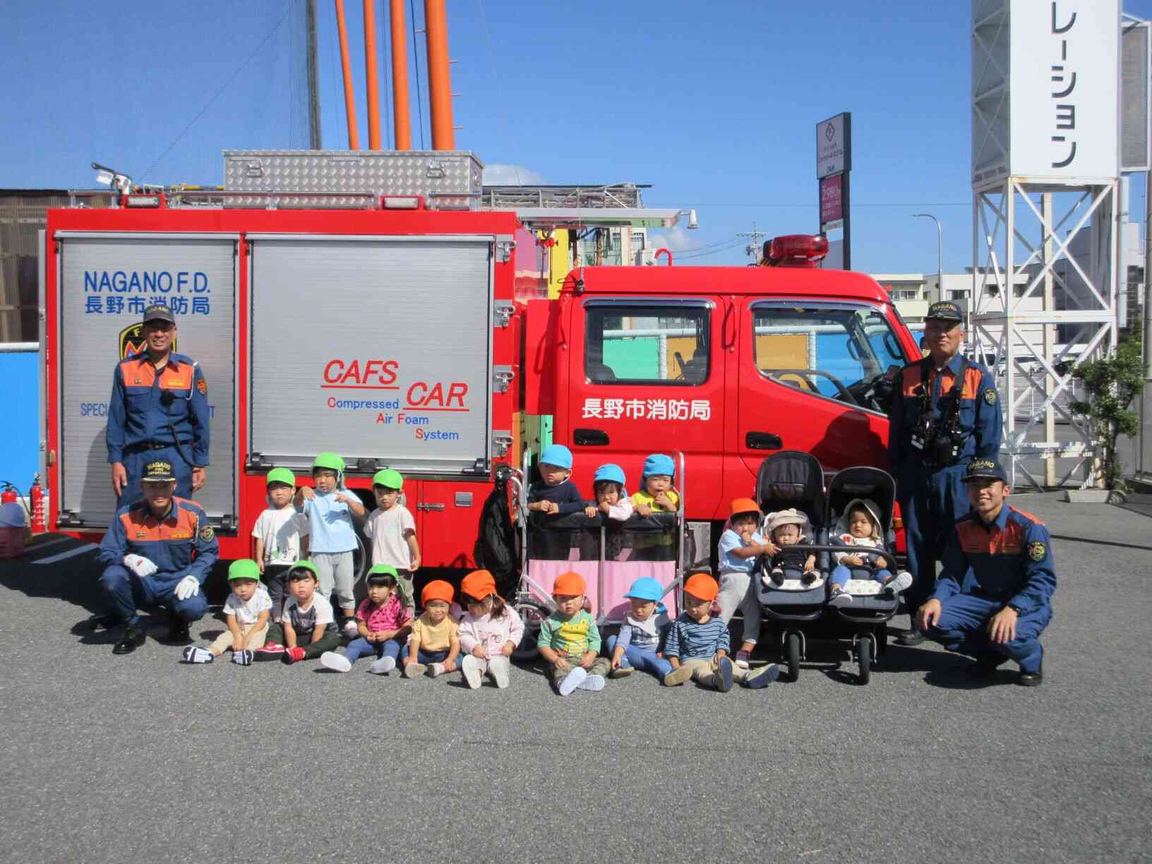 最後は消防車の前で消防士さんたちと一緒に記念撮影♪♪