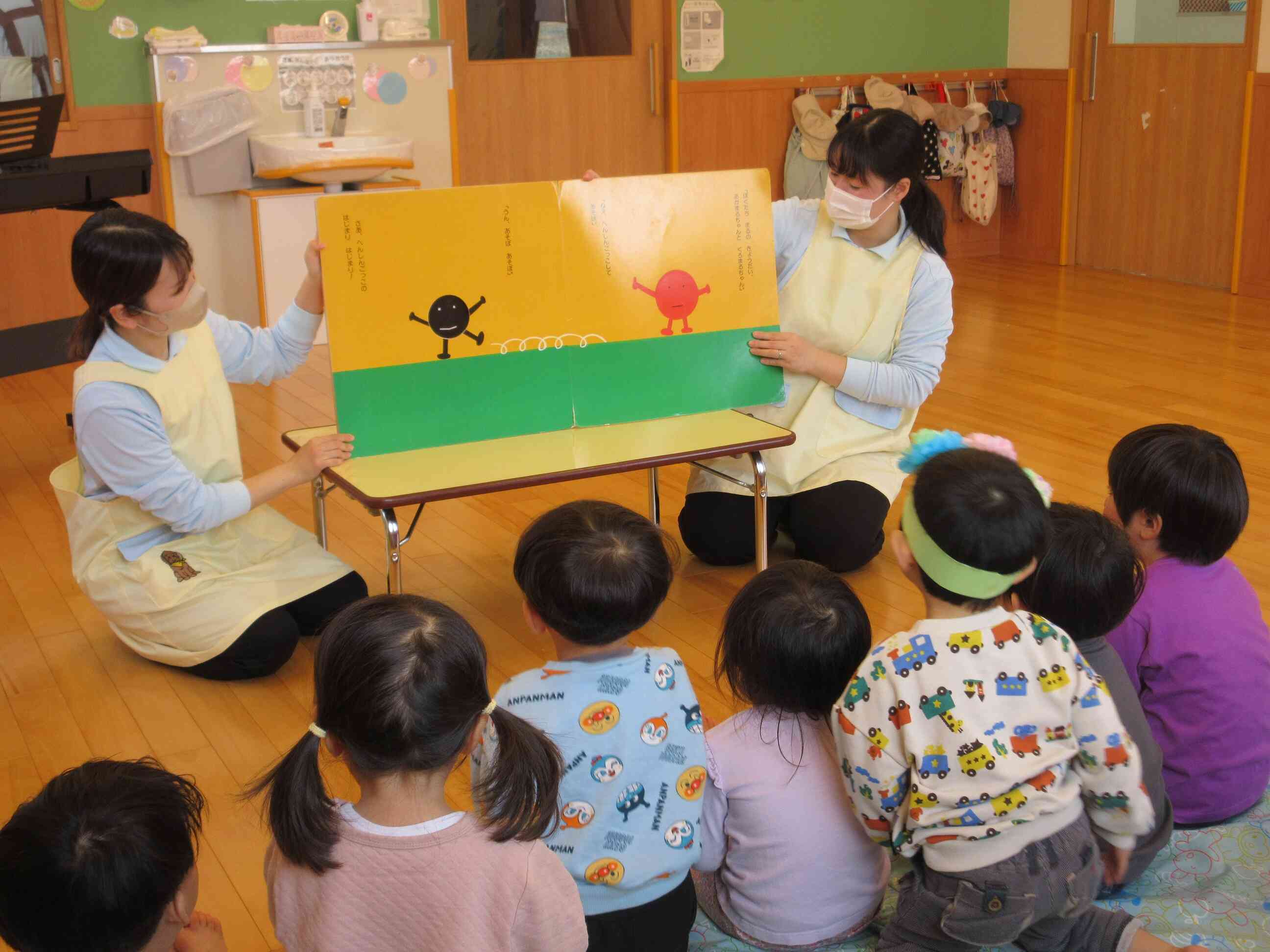 先生が大型絵本を出すと、身を乗り出して真剣な表情で見入っていました!