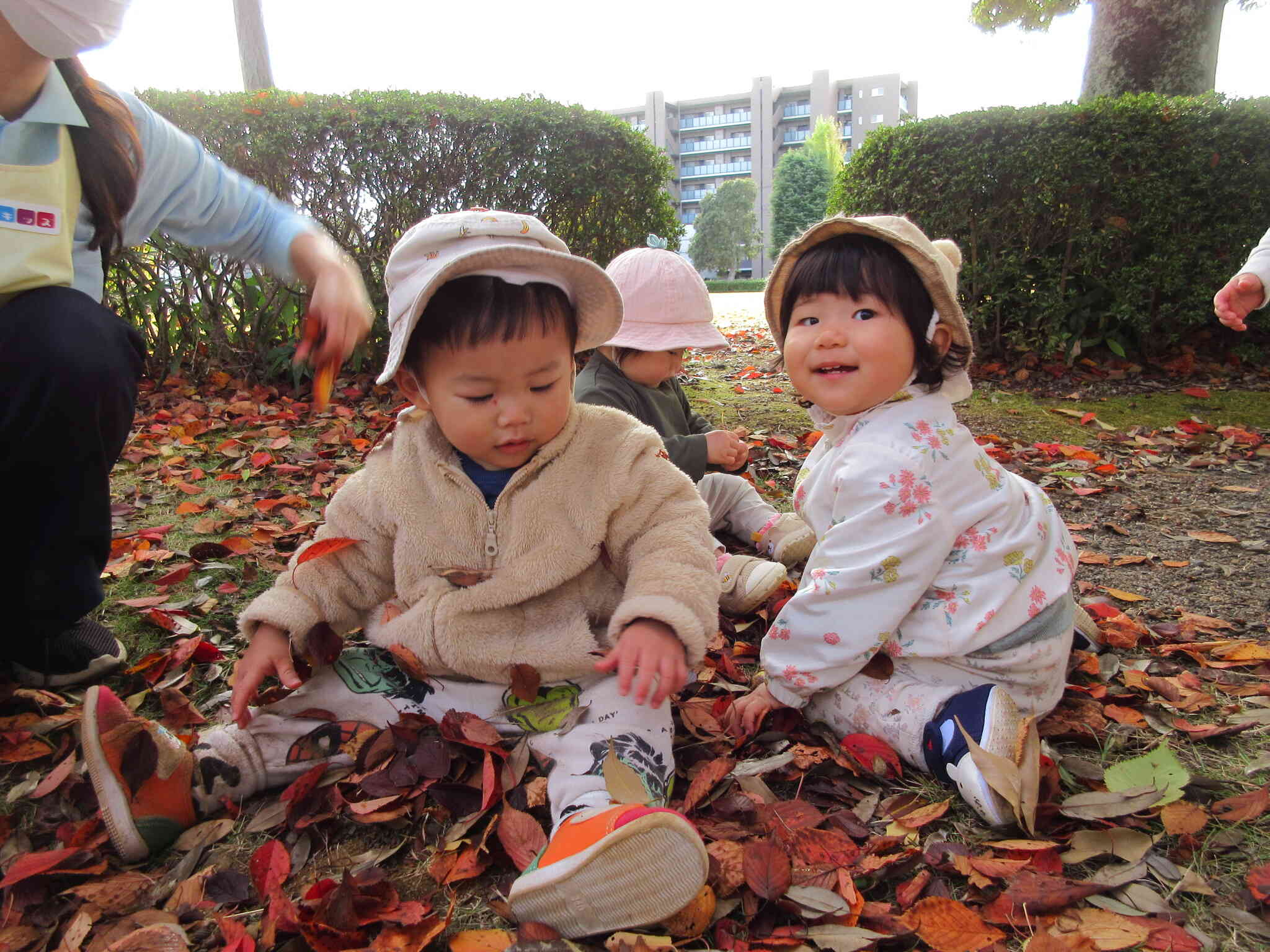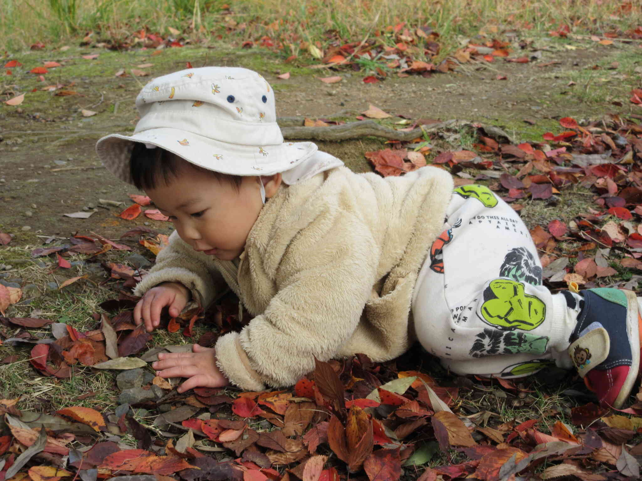 きれいな落ち葉の絨毯の上で♪ 秋の自然満喫中!!