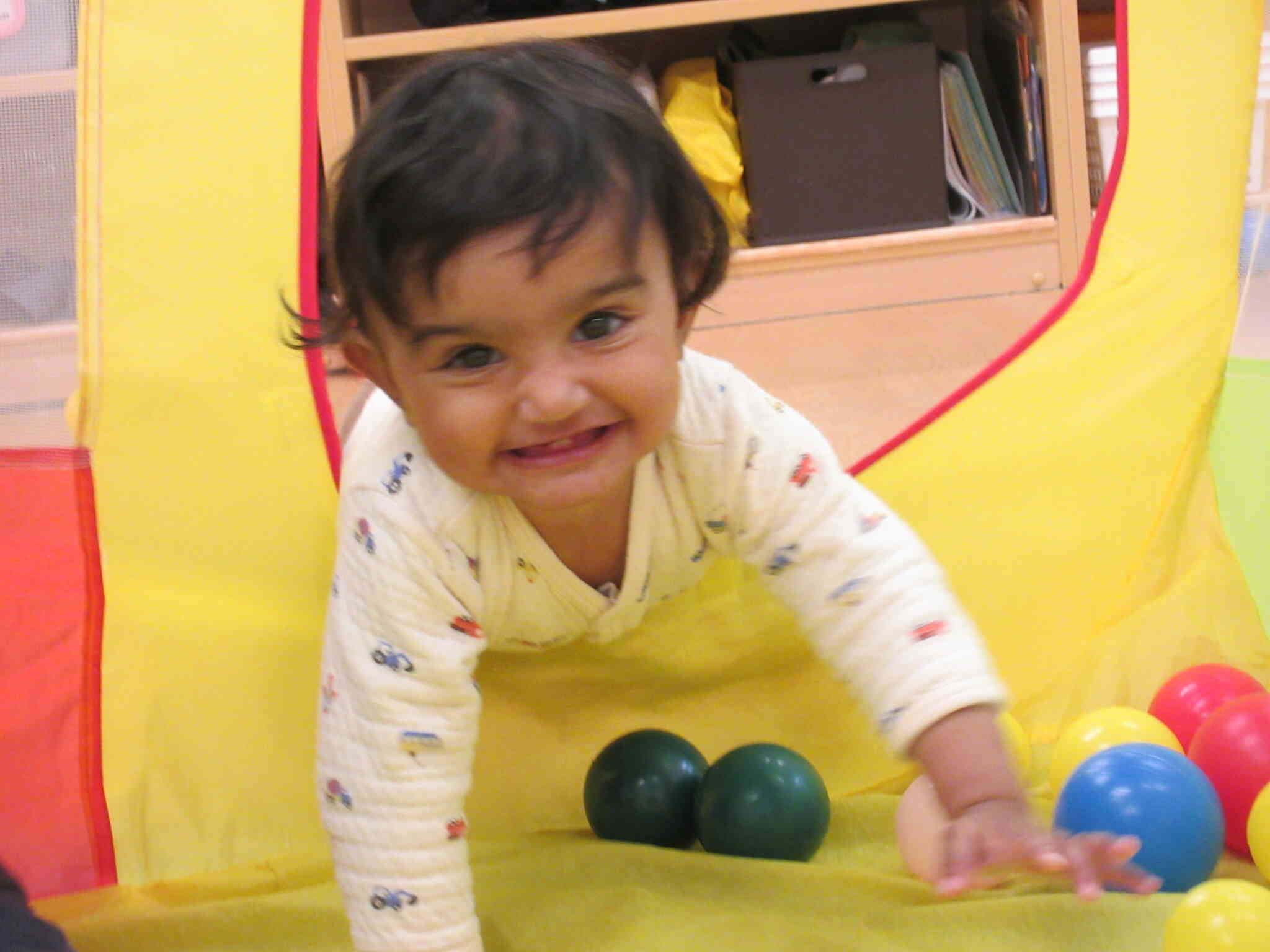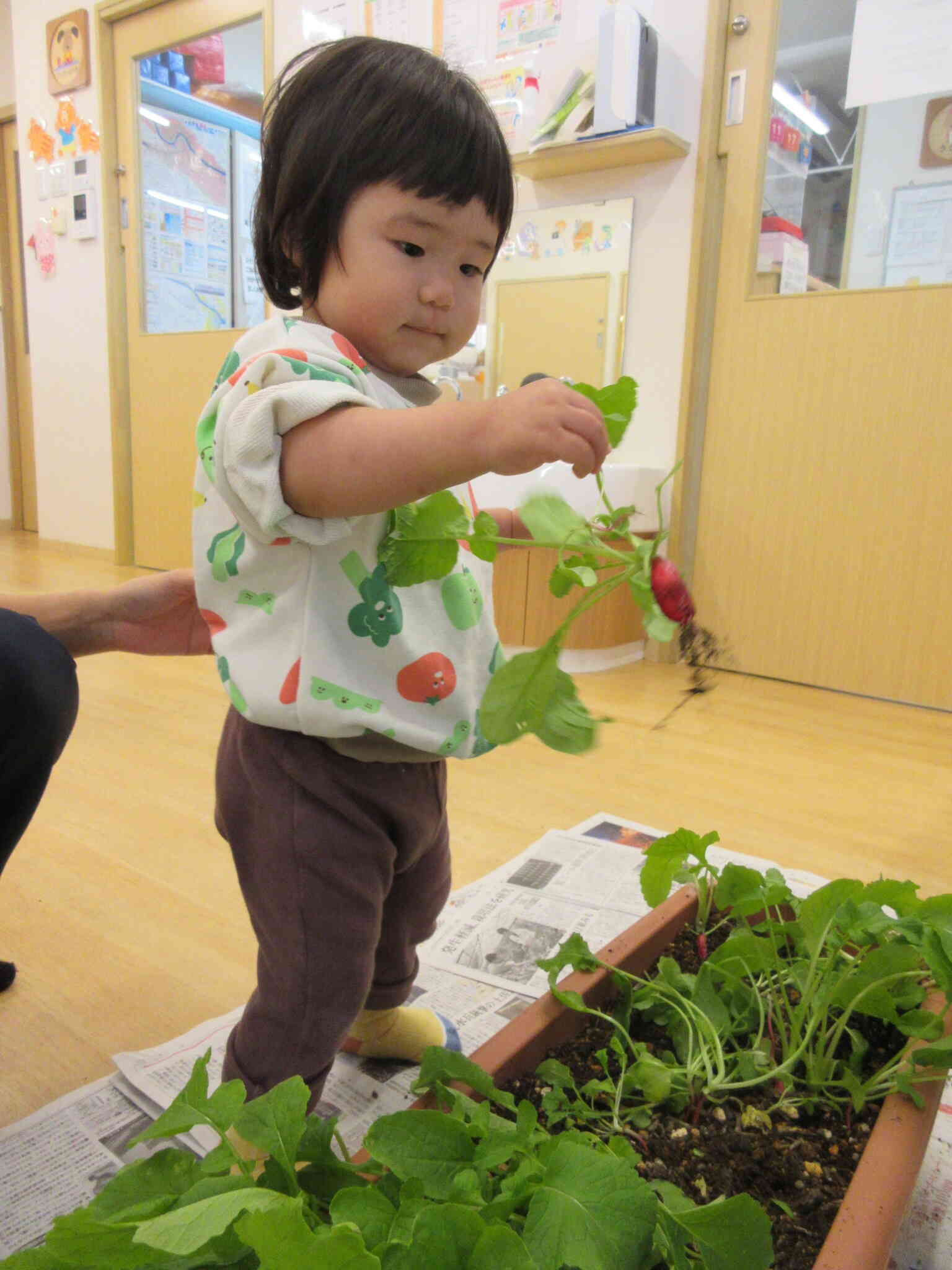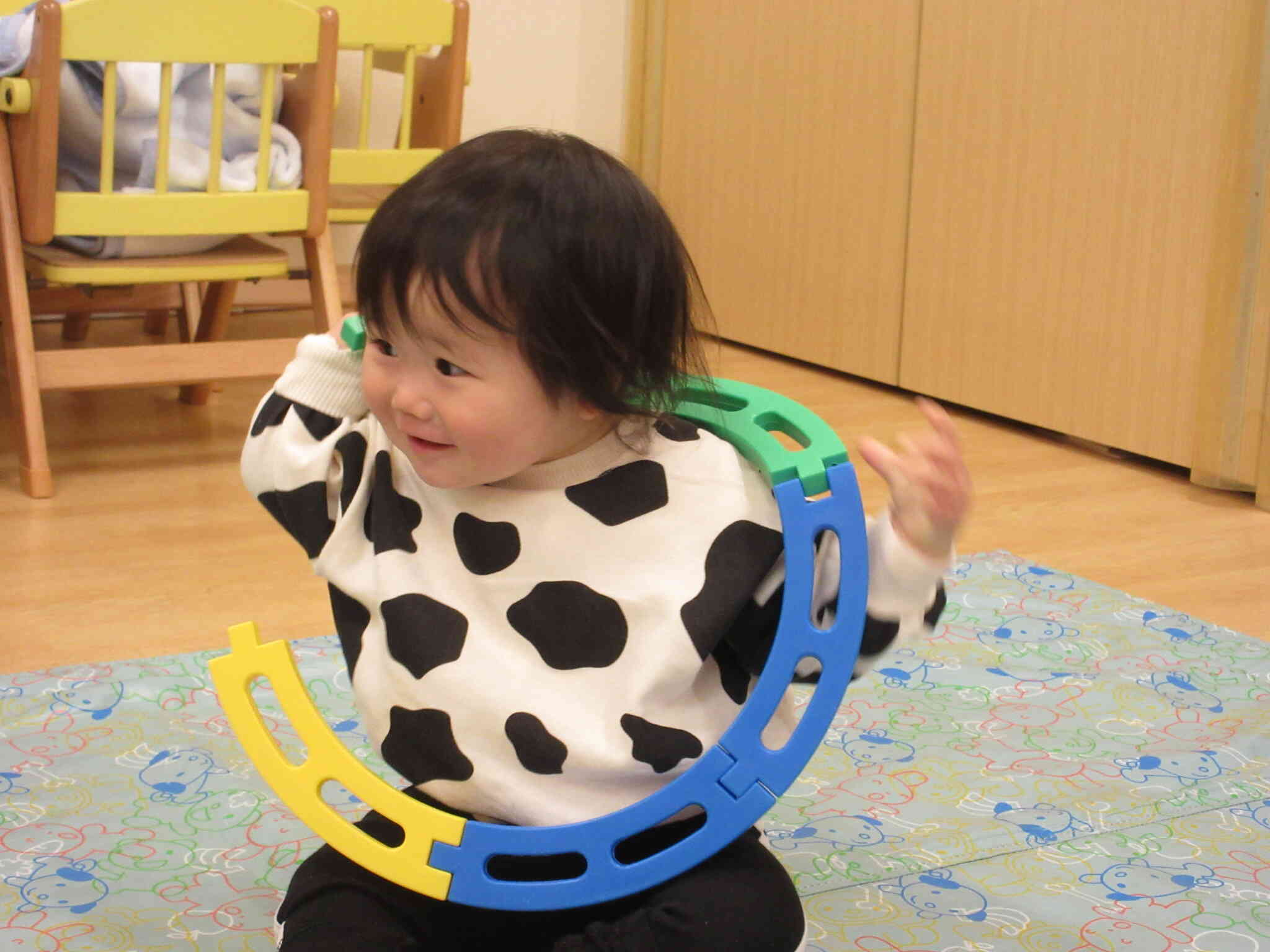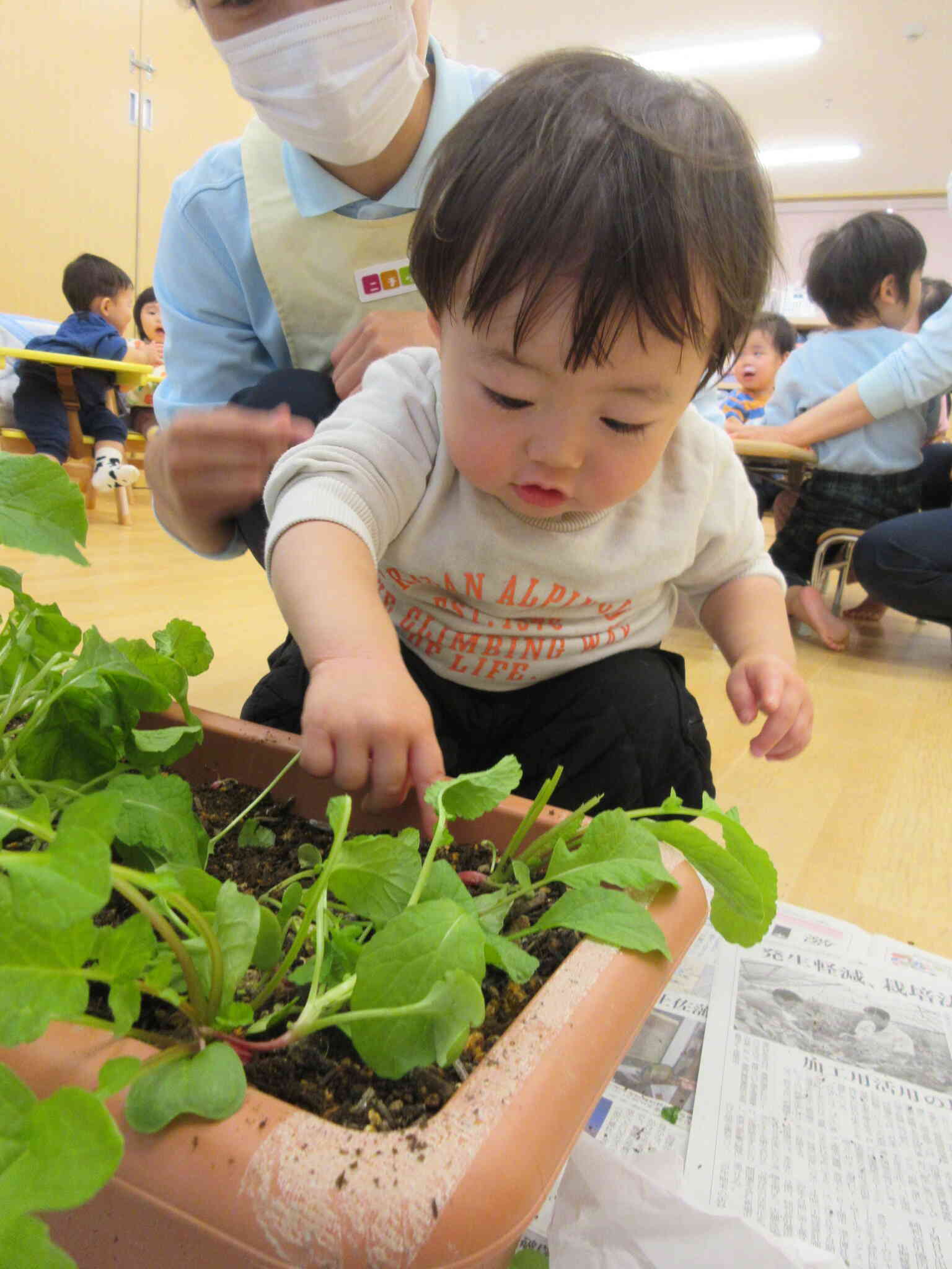 デコレーションボールに絵の具を染み込ませて上から「えい!!」とたたくと…