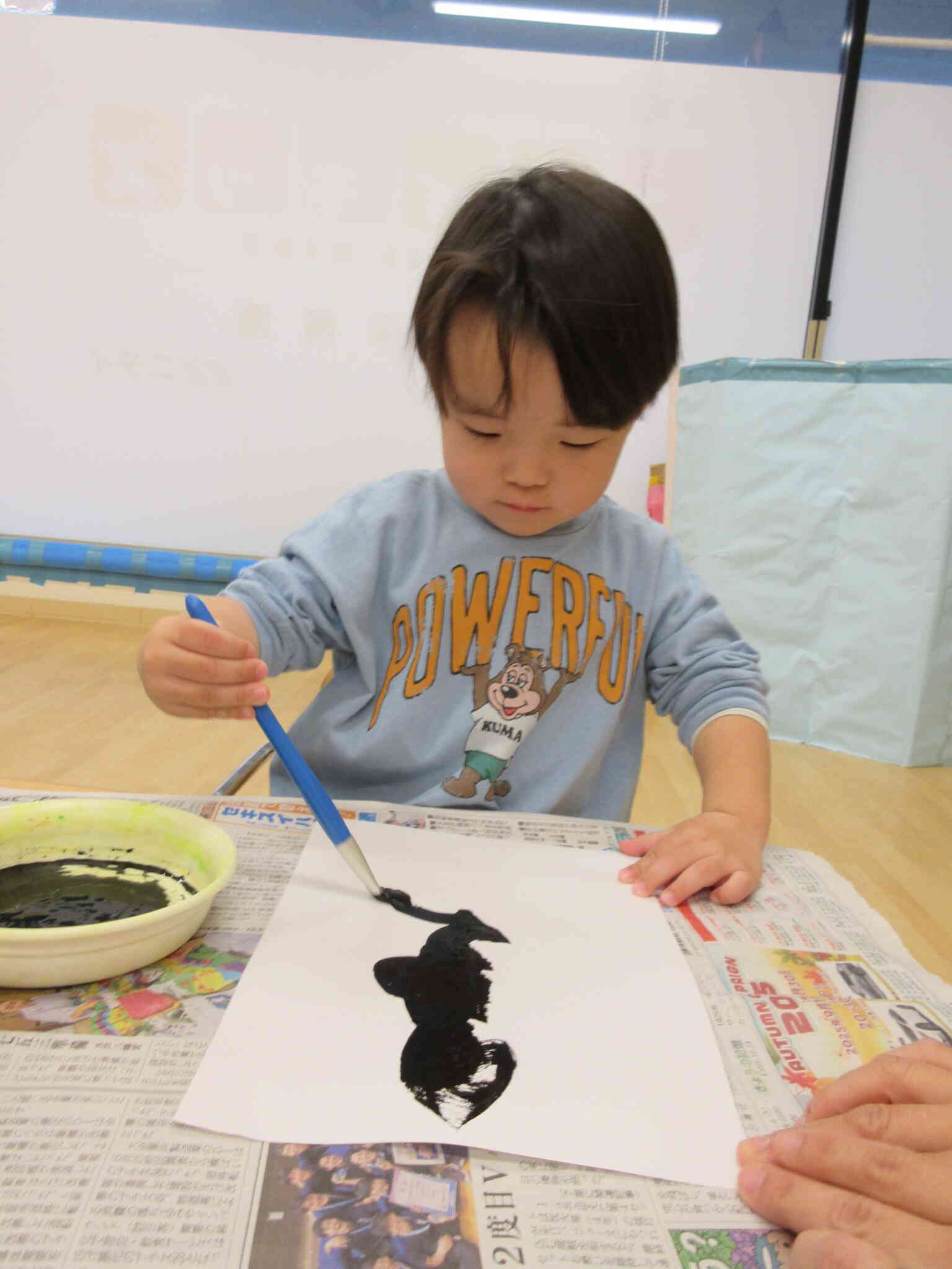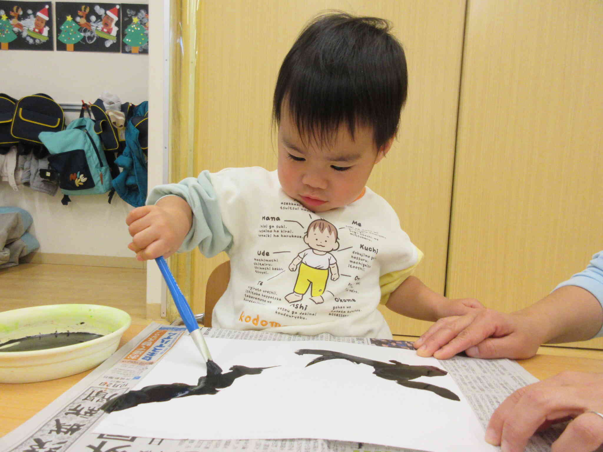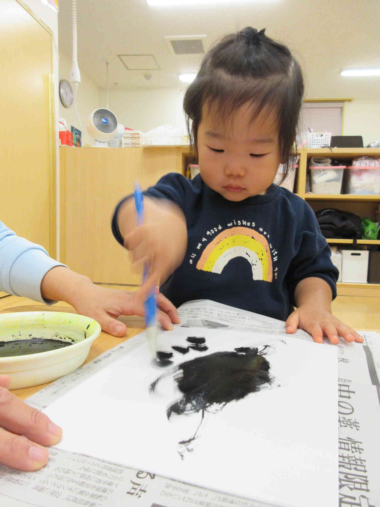 ダイナミックに書く子。筆の感触を確かめるようにそーっと書く子。