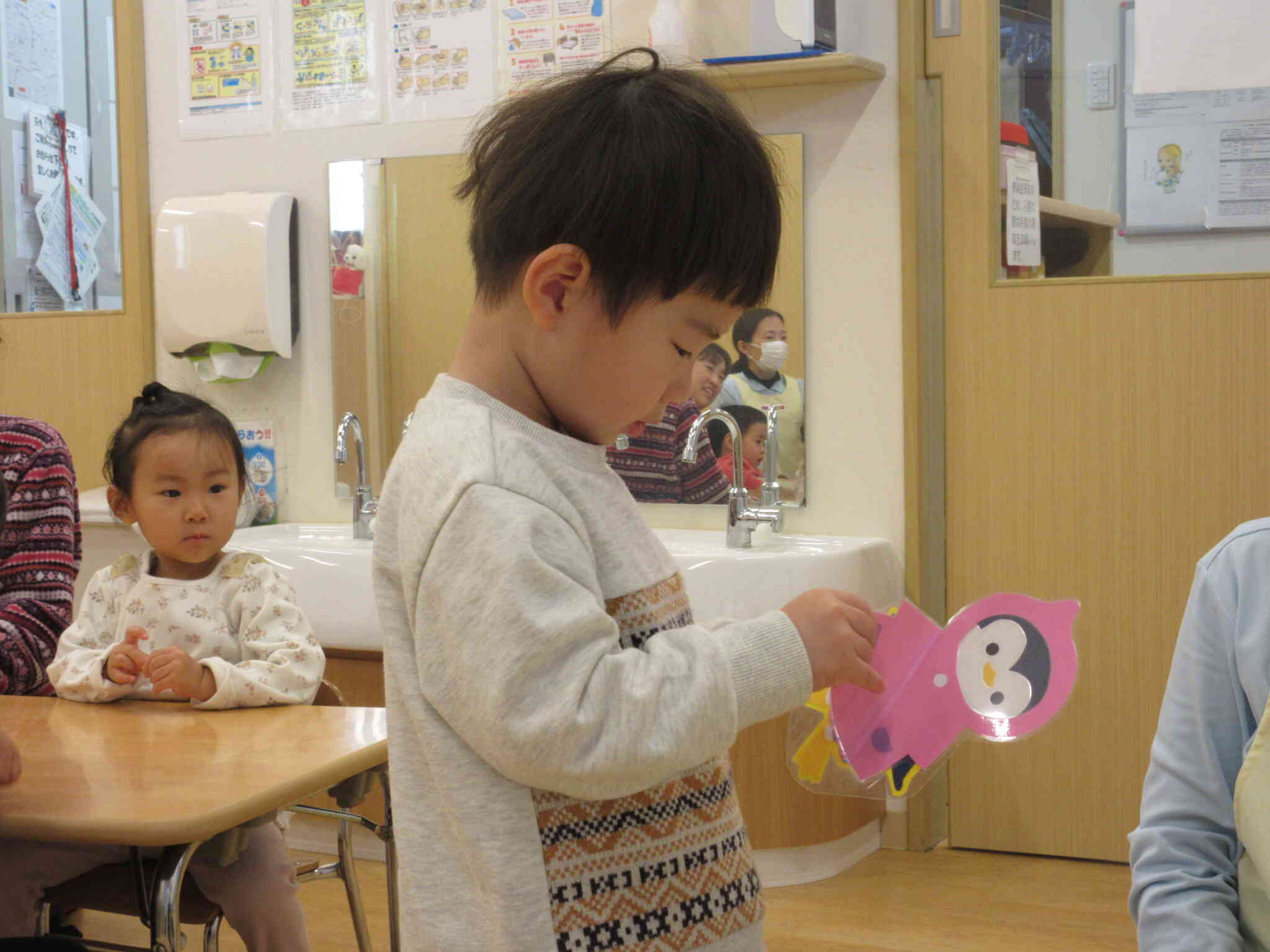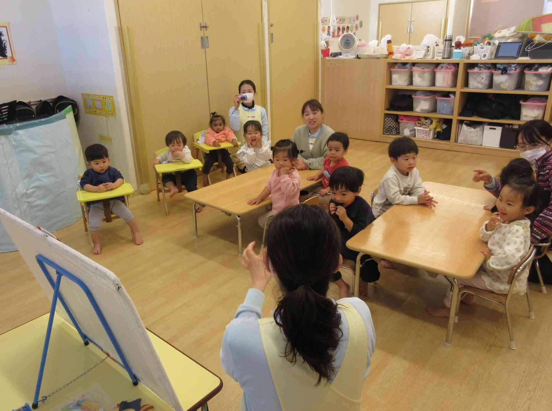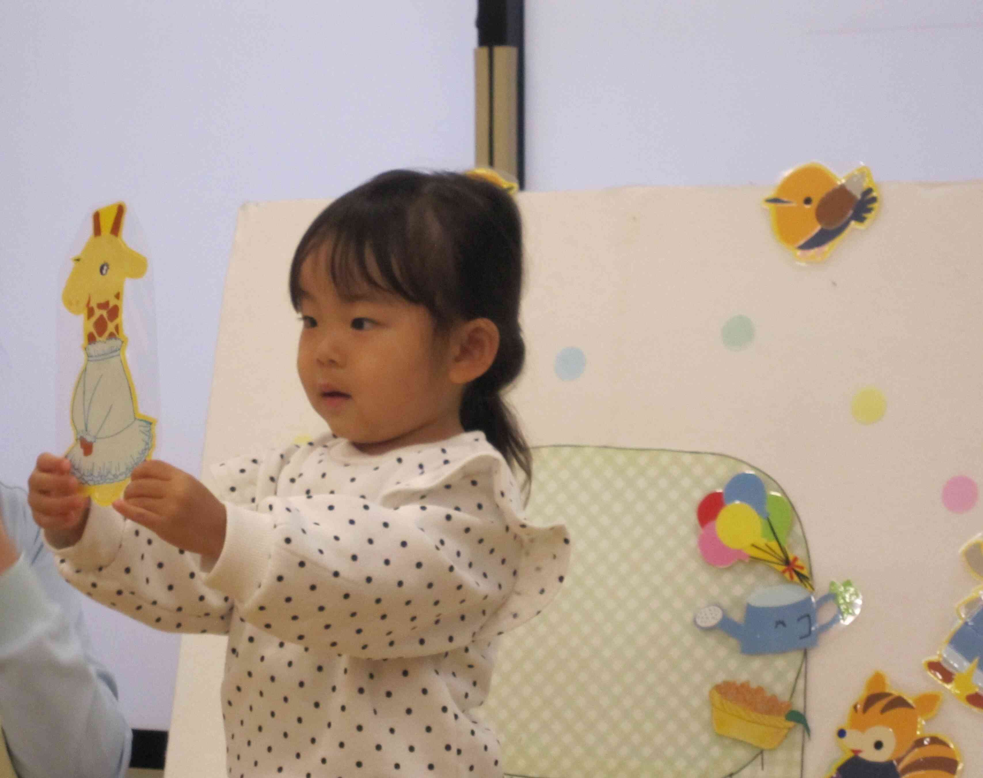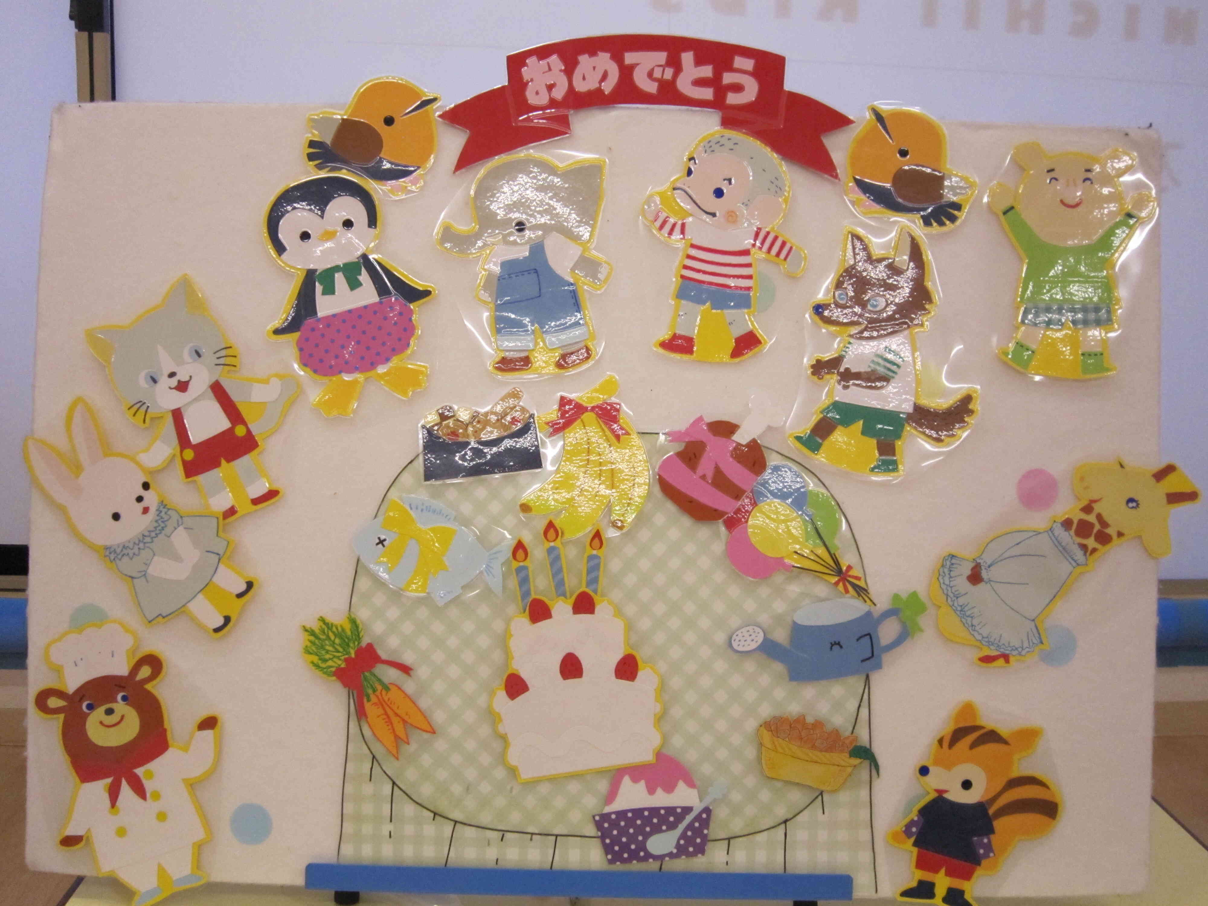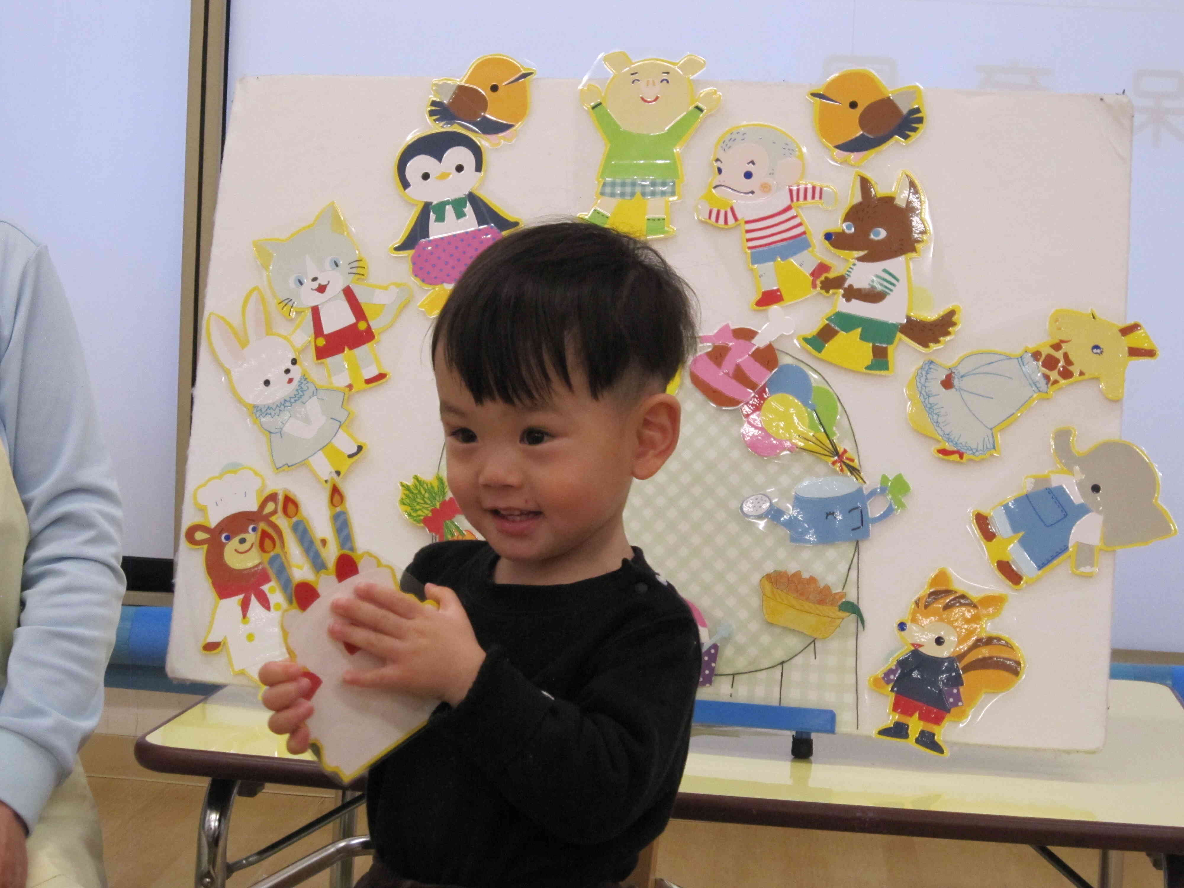 誕生会パーティーにプレゼントを持って動物たちがやってくるパネルシアターをみんなで楽しみました。