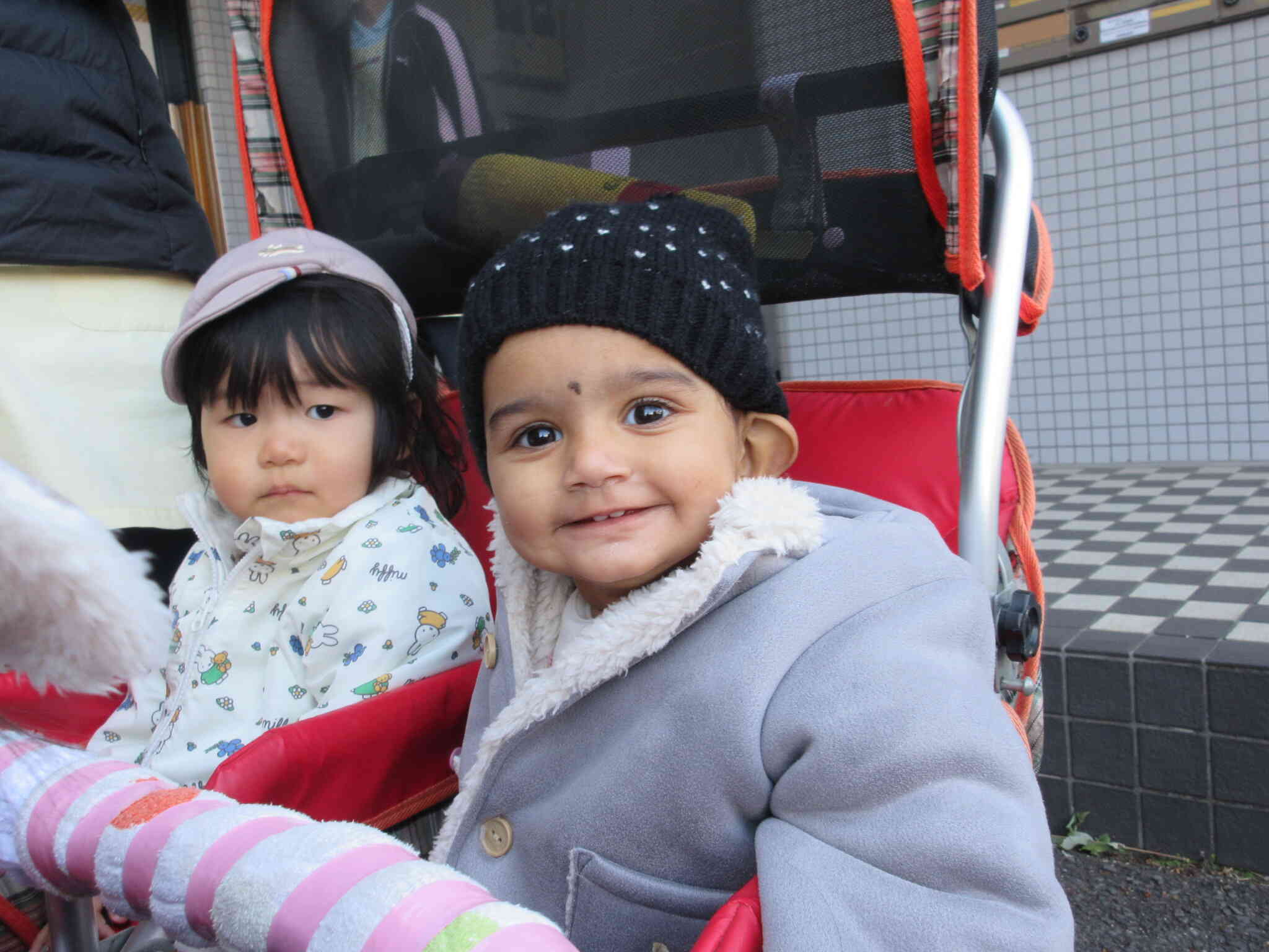 寒くてもニコニコです♪今日は何して遊ぼうかな?