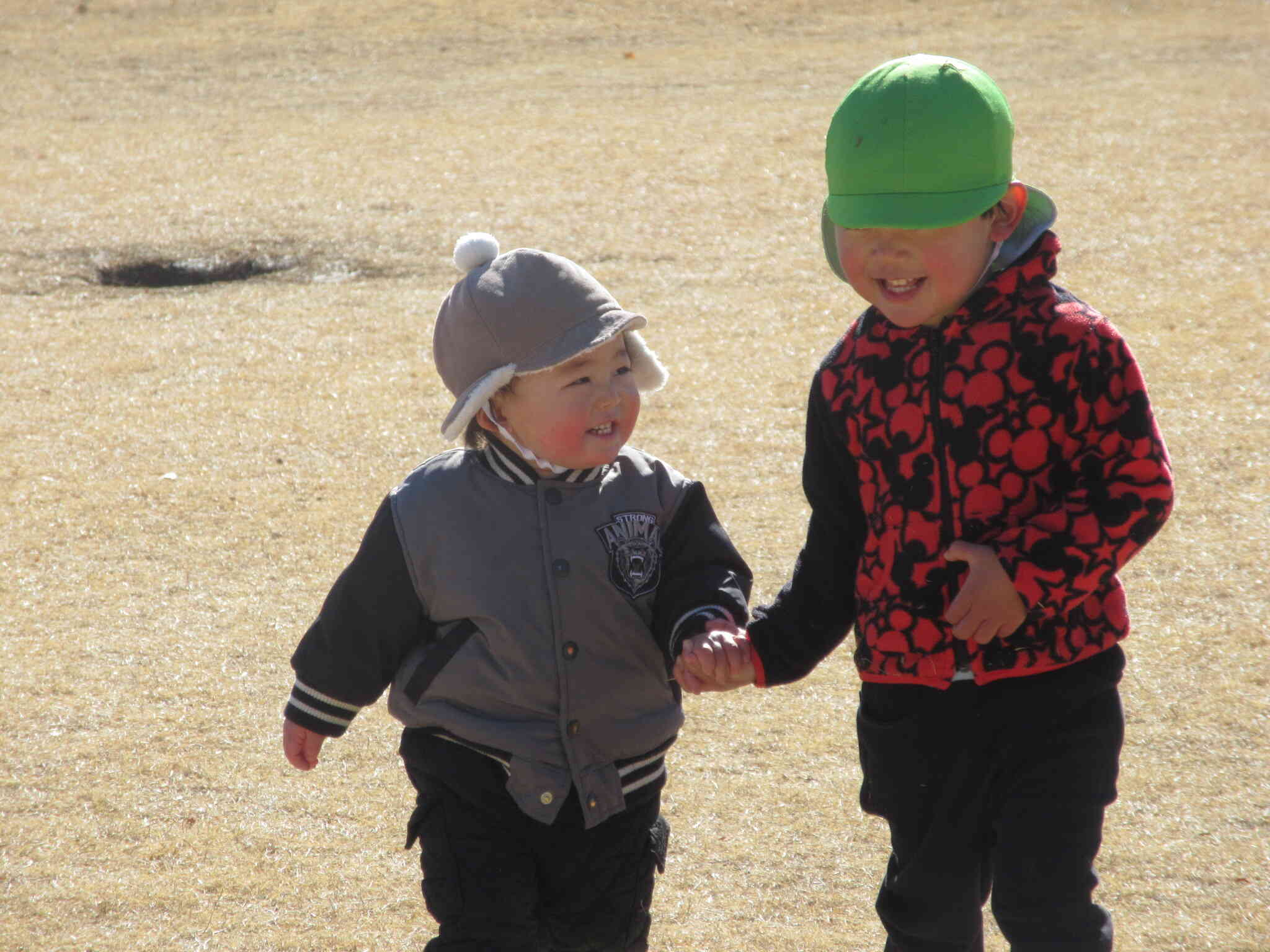 お兄ちゃんが手をつないでくれました!二人の表情がとっても嬉しそうで心が温まります。