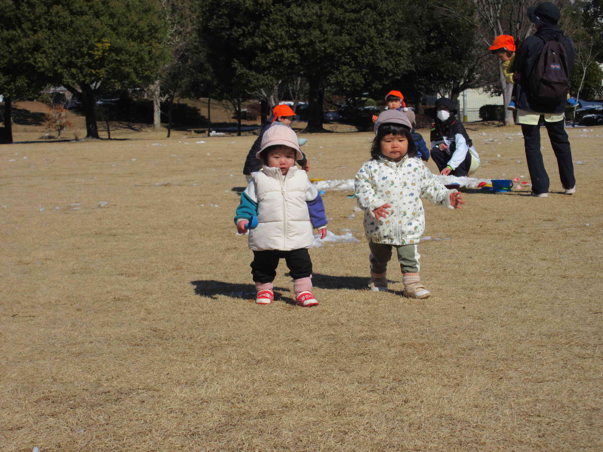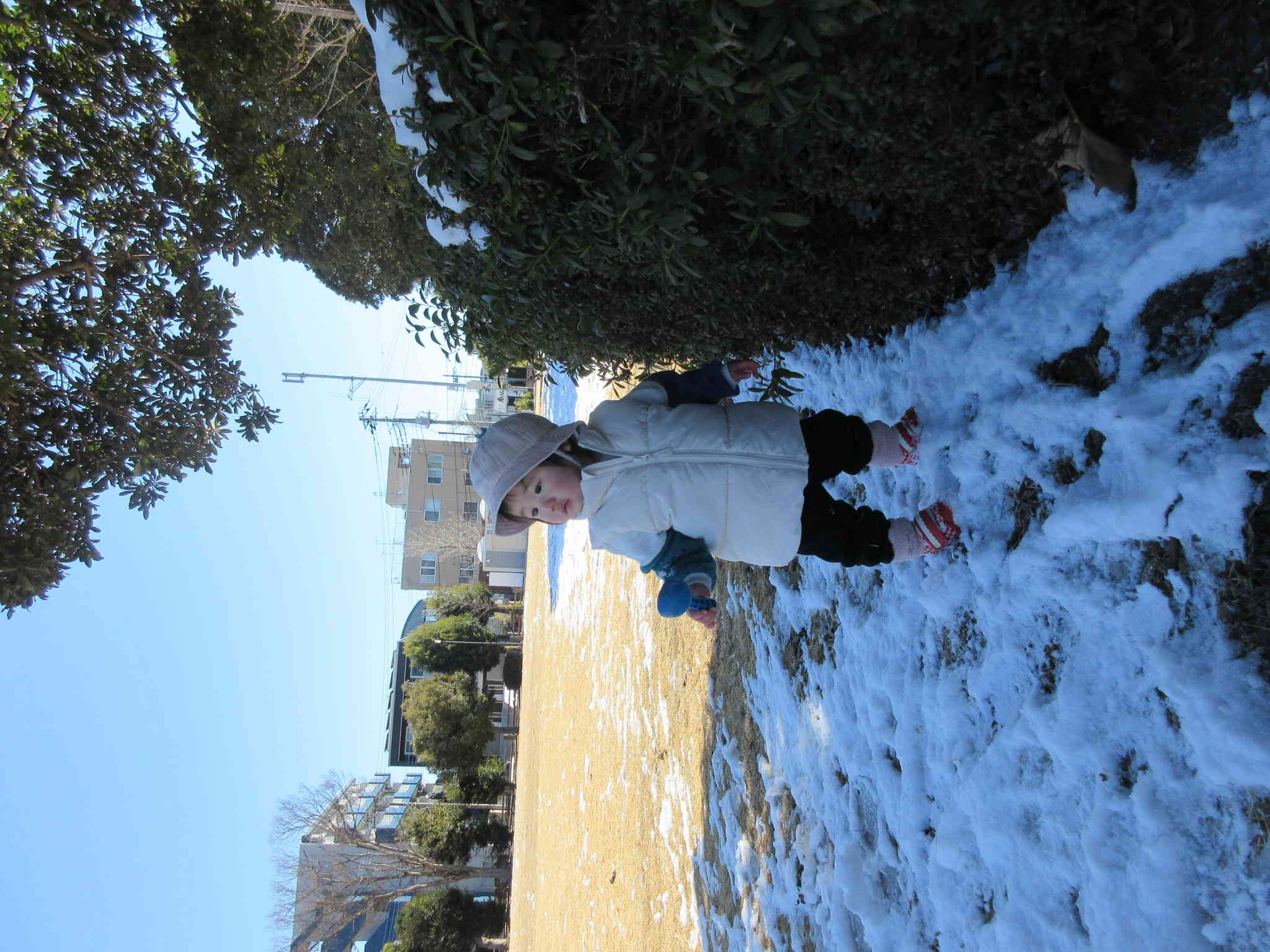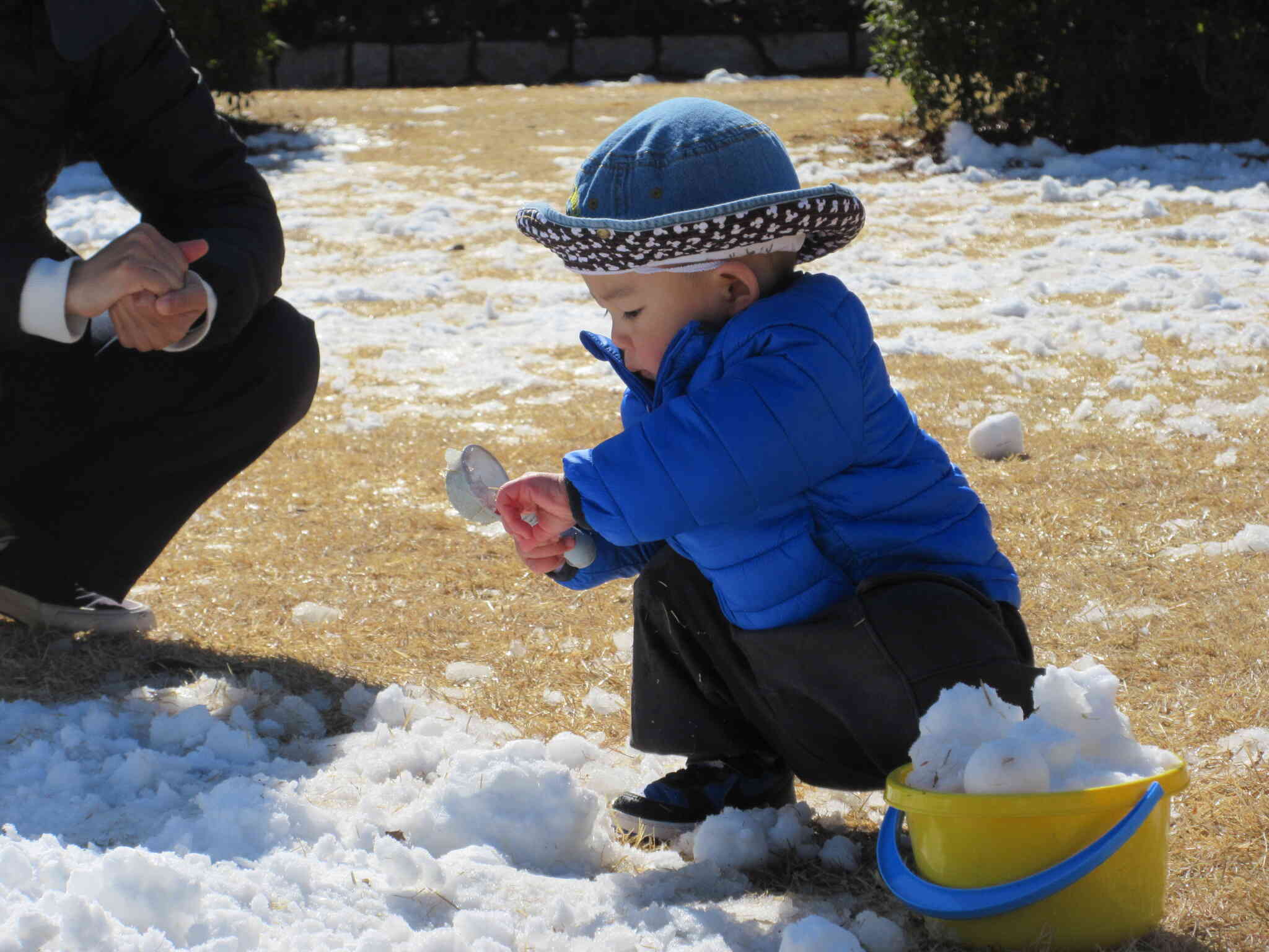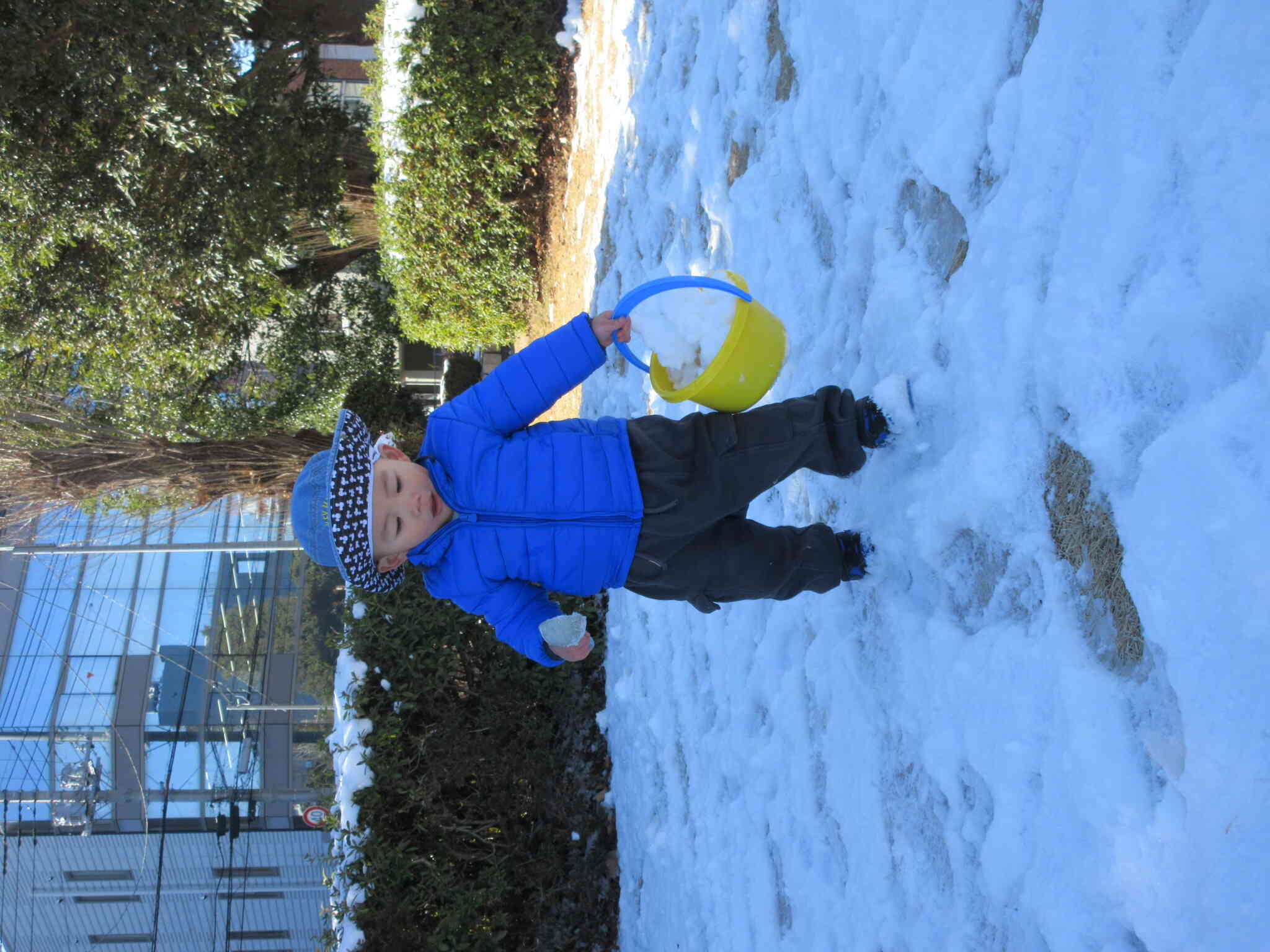 週末に降った雪が残っていて、みんなで遊ぶことができました。見慣れない景色にウキウキが止まりません♪