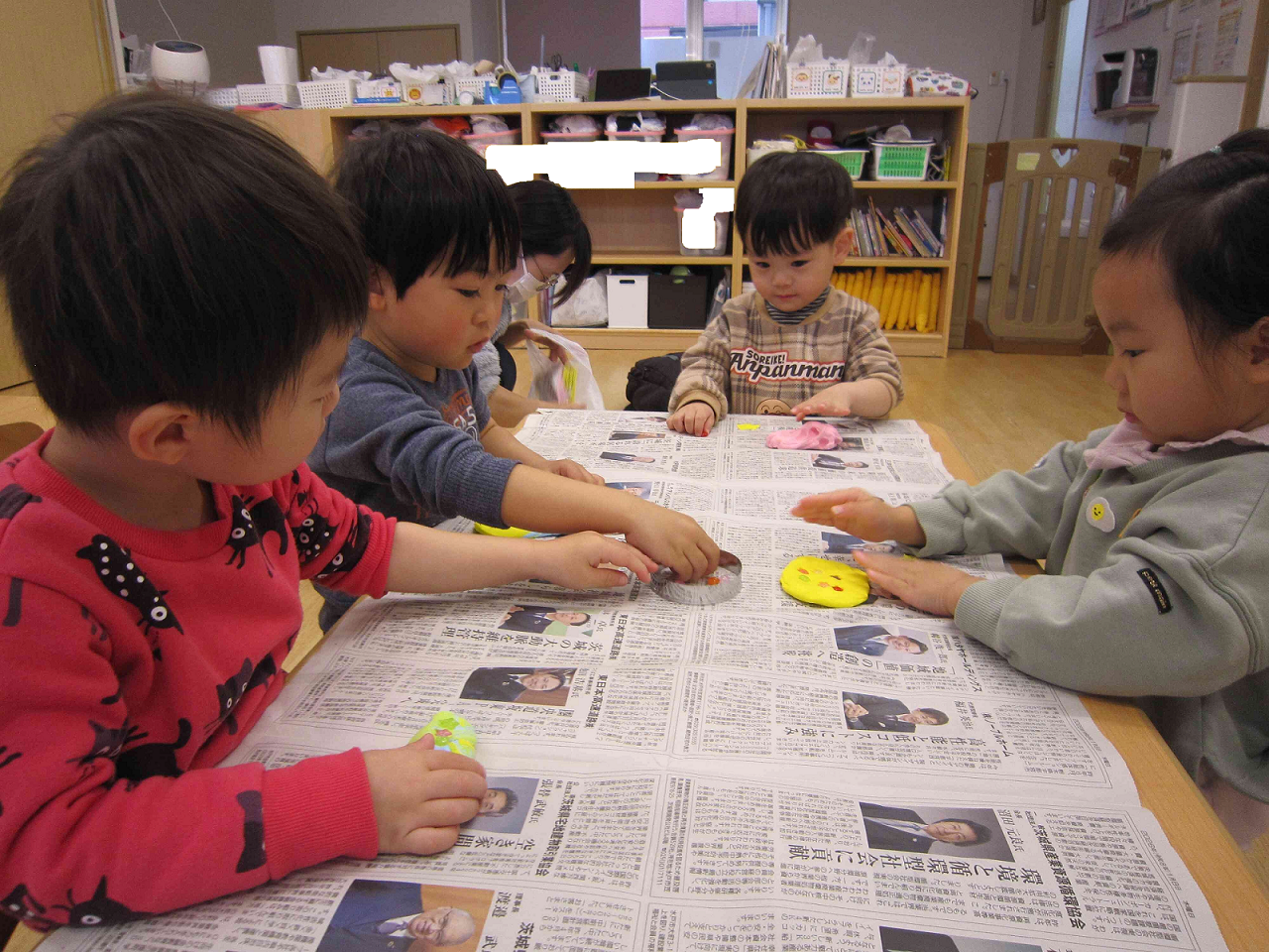 思い思いに好きな色の紙粘土やビーズに手を伸ばし、『作品』作りに夢中になるお友達です。