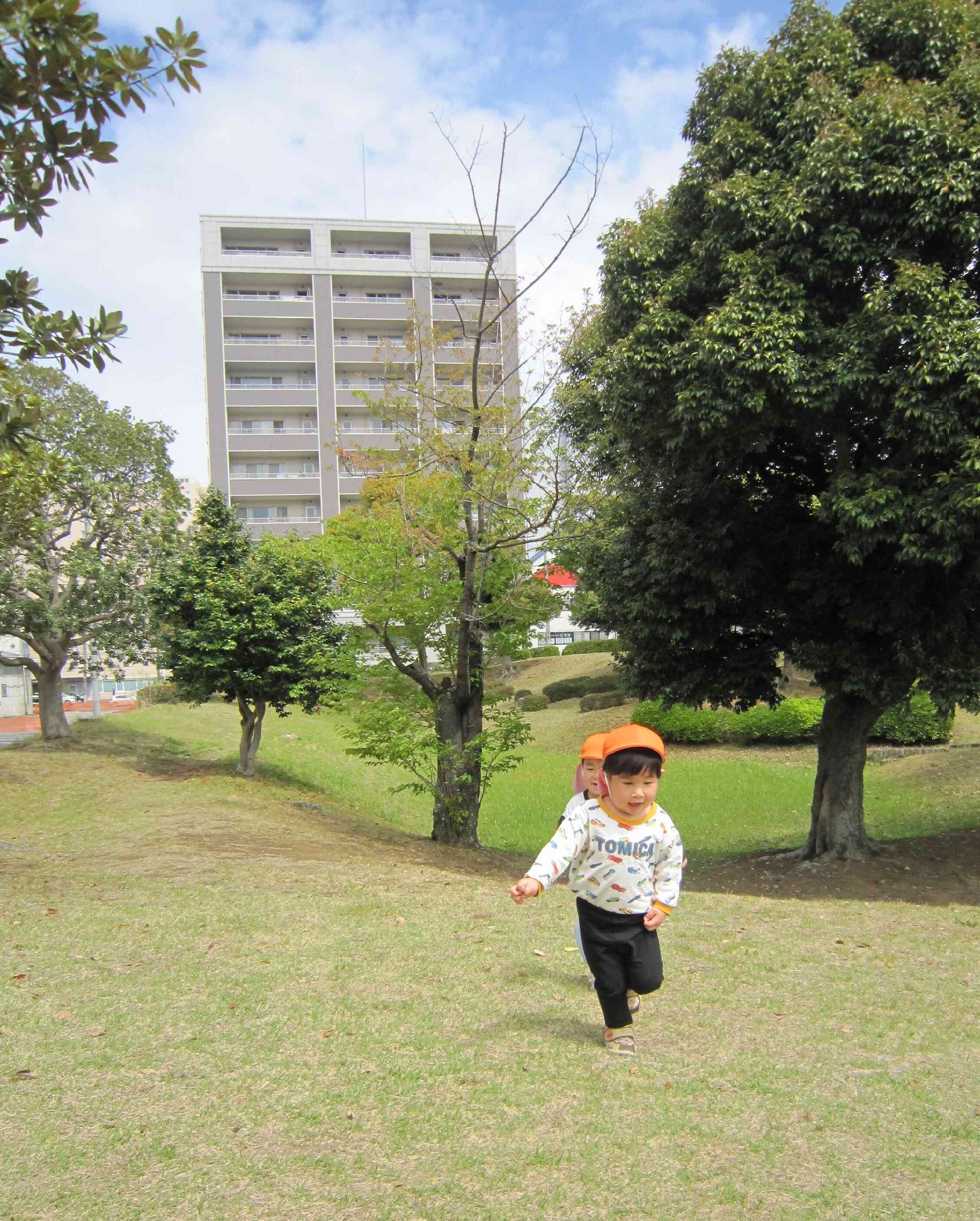 春の日差しをあびて、公園でおもいっきり戸外遊びを楽しんでいます。