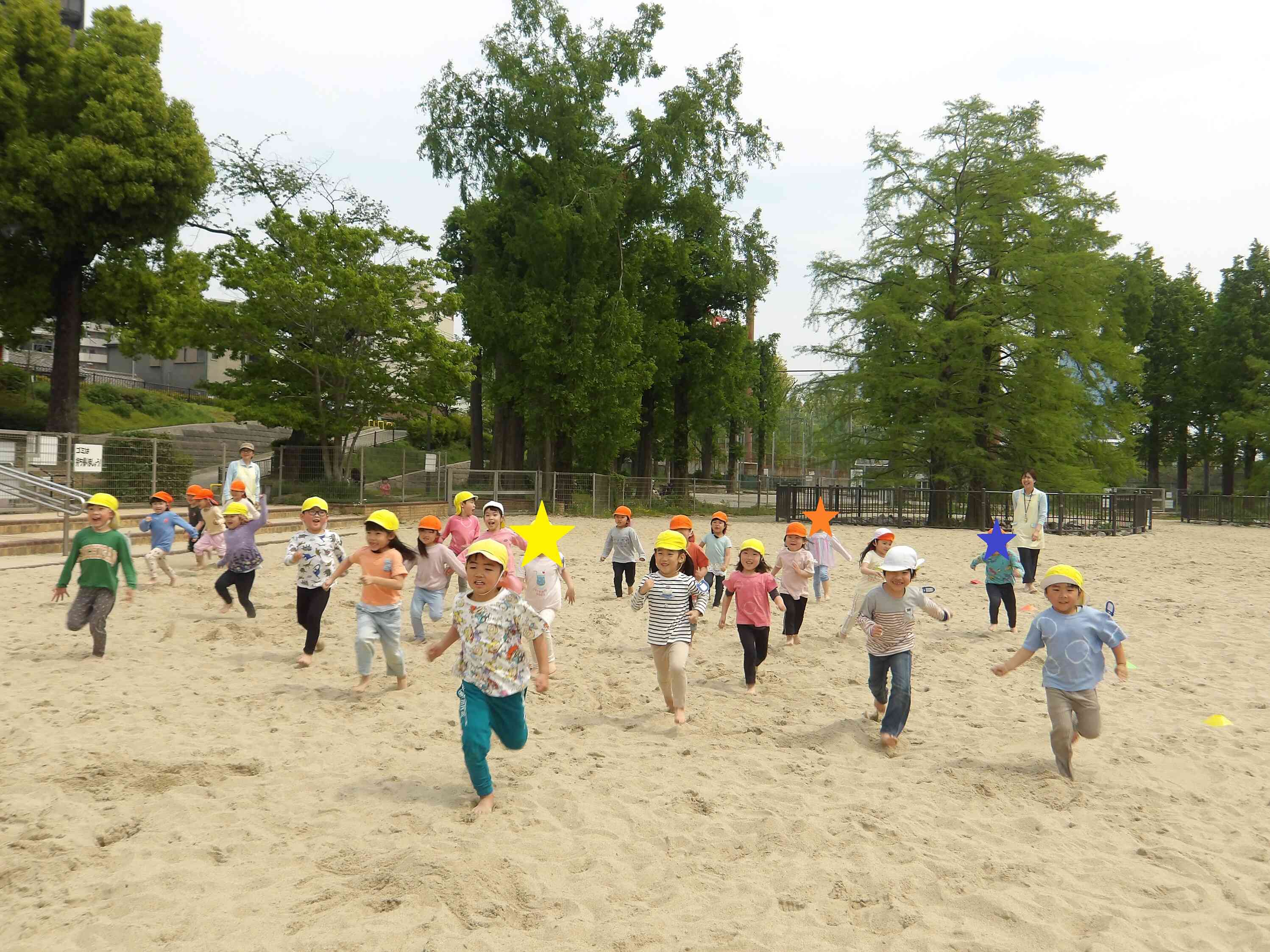 お散歩遠足で砂浜をみんなで走って、気持ちよかったね!