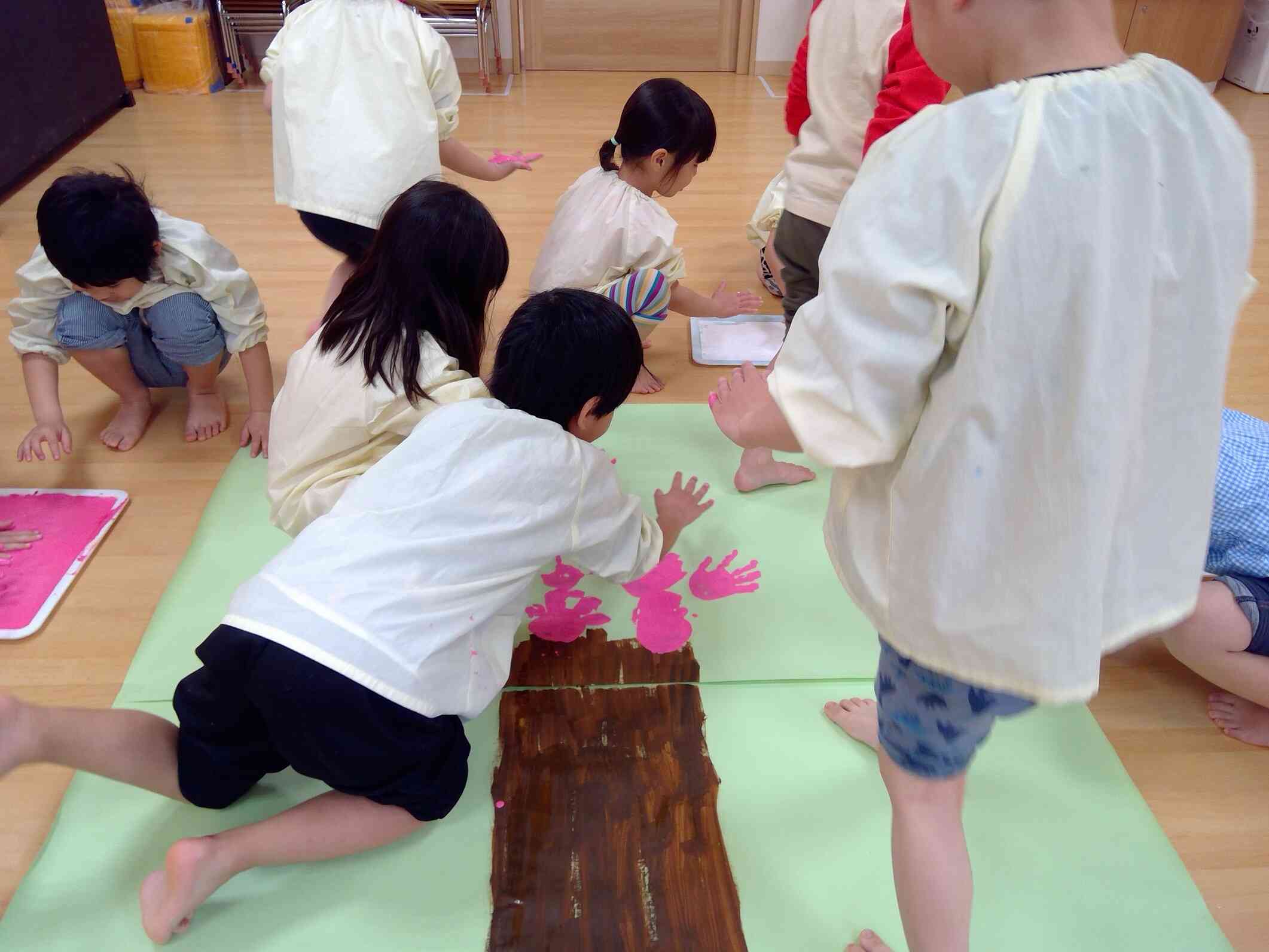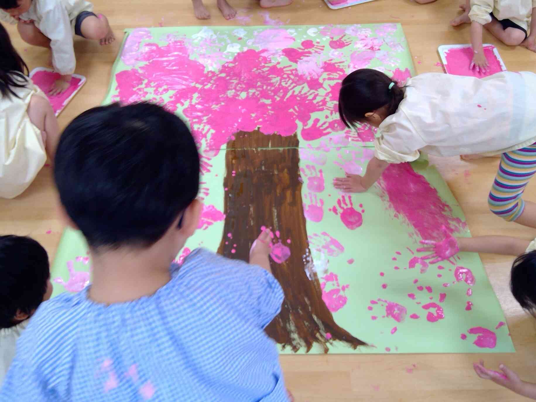 みんなで作った桜が完成し、とても嬉しそうな子どもたちでした!