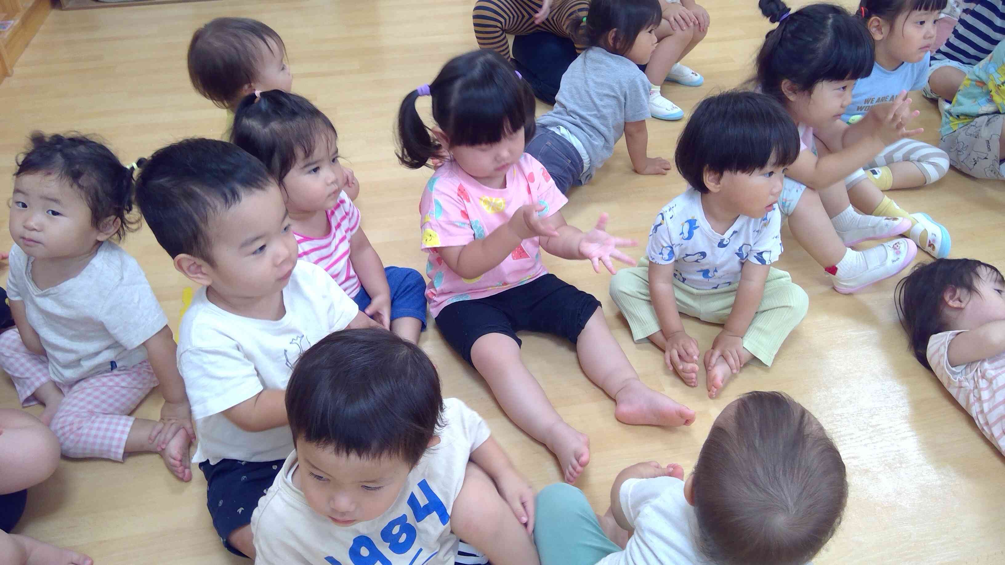 紙芝居や手洗いの歌を楽しんでいたあひる組さん。
