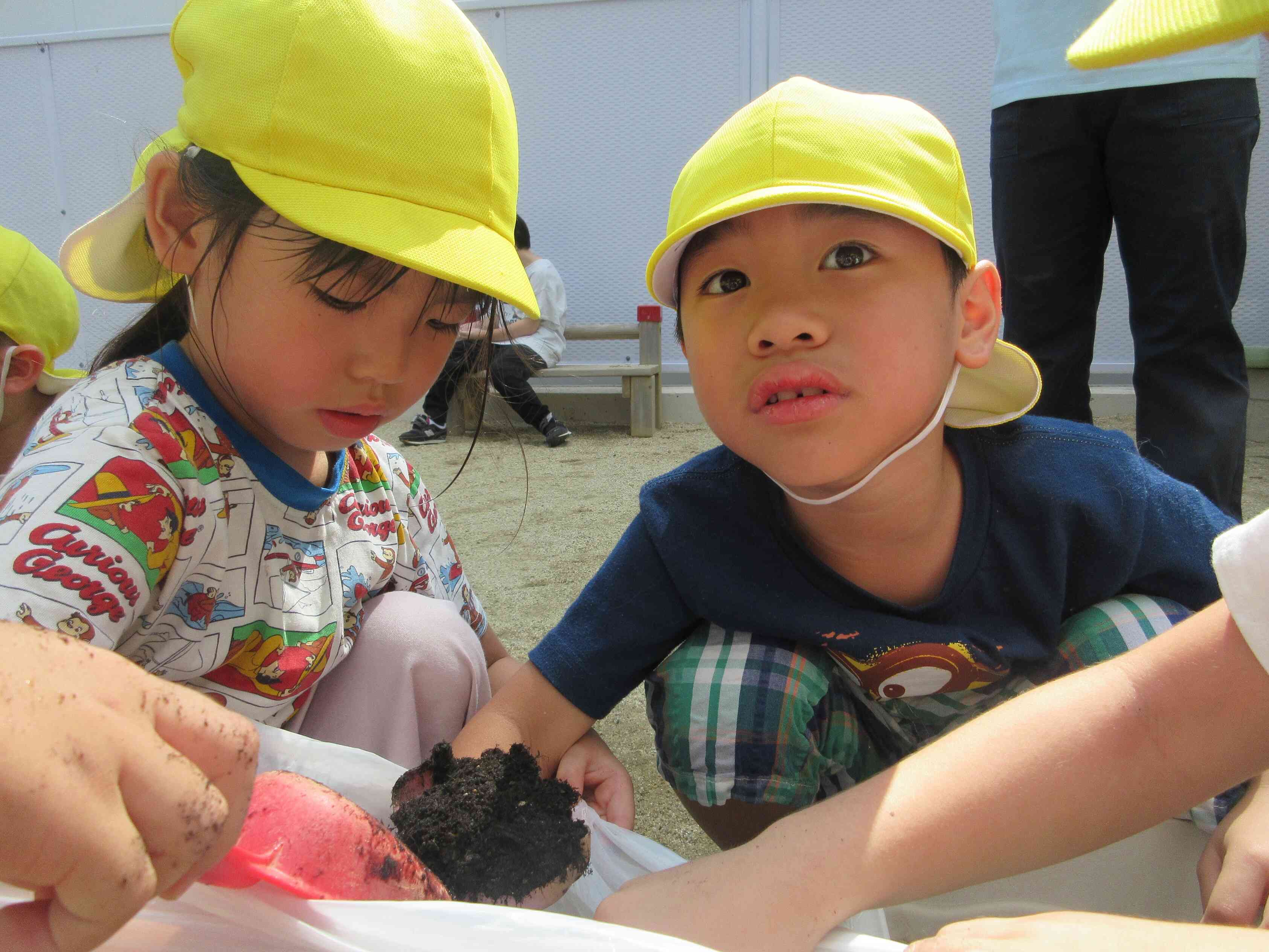苗植え当日、りす組は、ブロッコリーの苗をプランターの中へ入れて、周りに優しく土をかぶせて