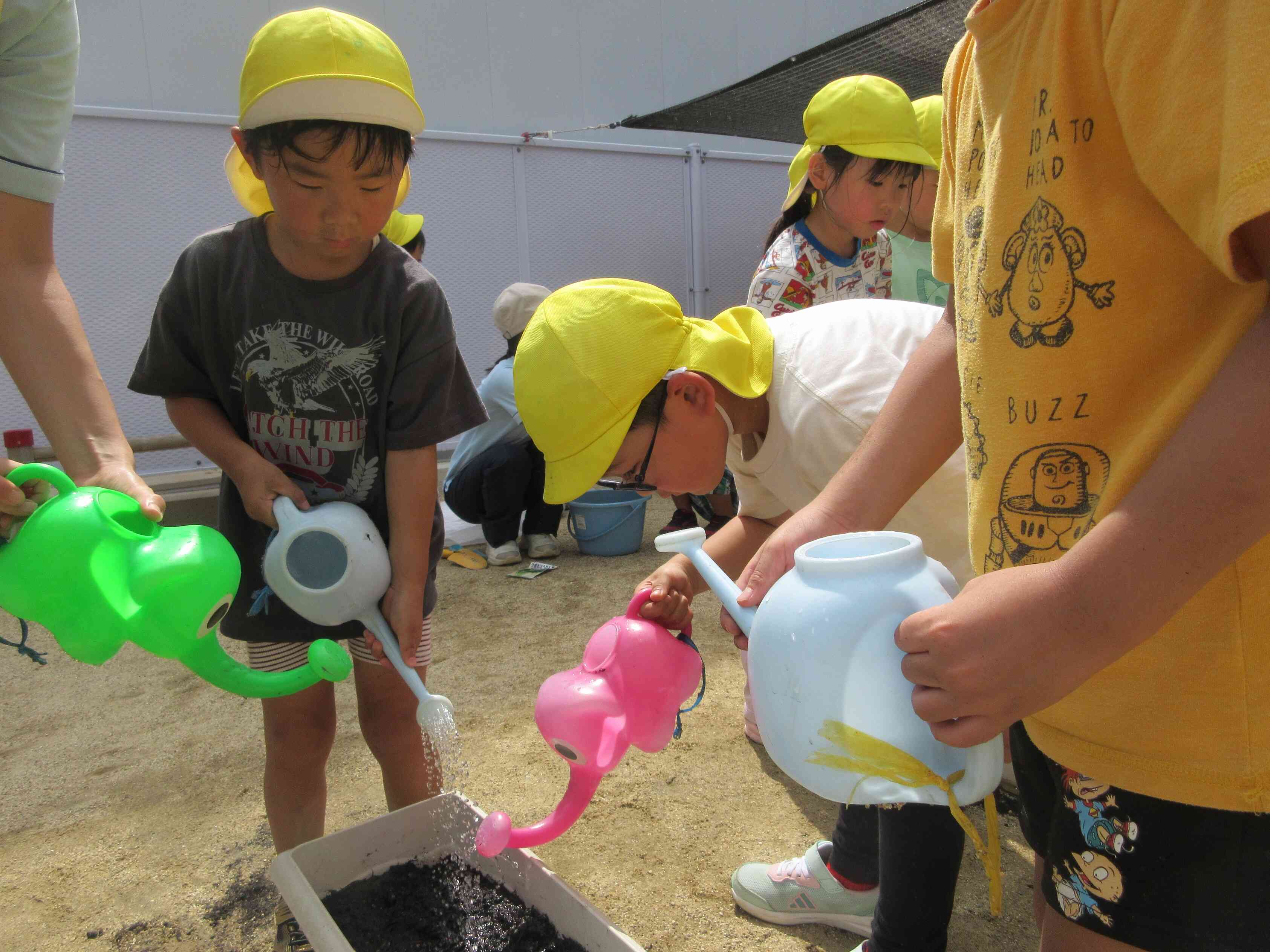 水やりをしました。これから大きくなっていくのをわくわくした顔で作業していたのがとても印象的でした。