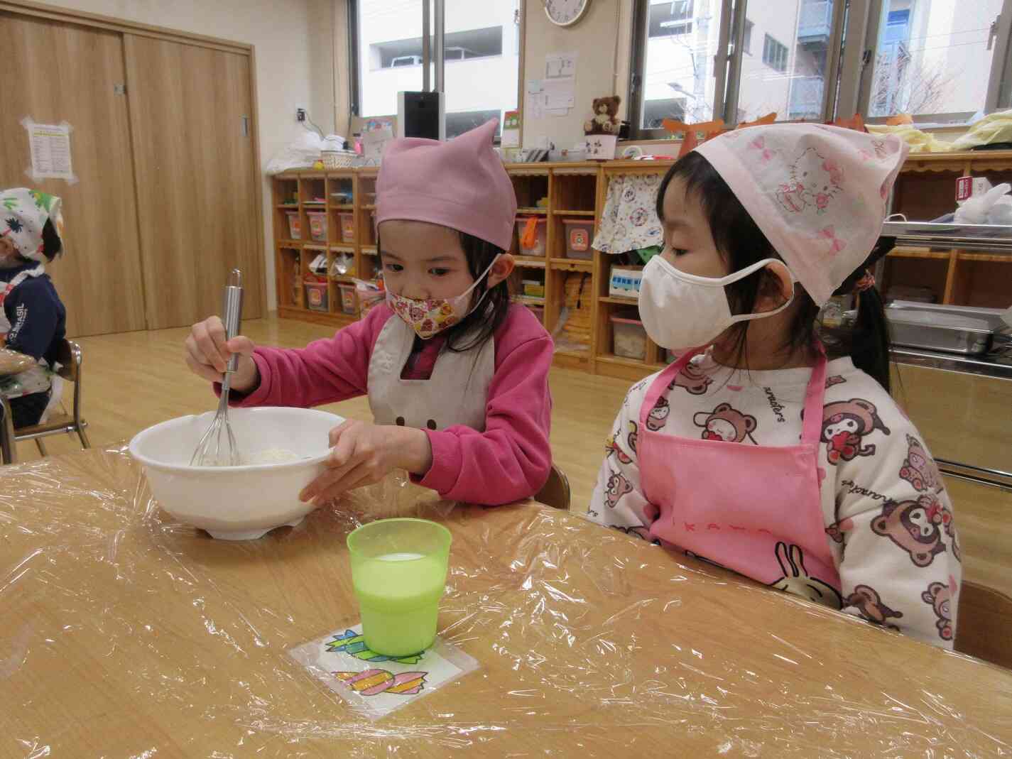 ぱんだ・きりん組では、クラスのみんなで大きなクリスマスケーキを作りました。