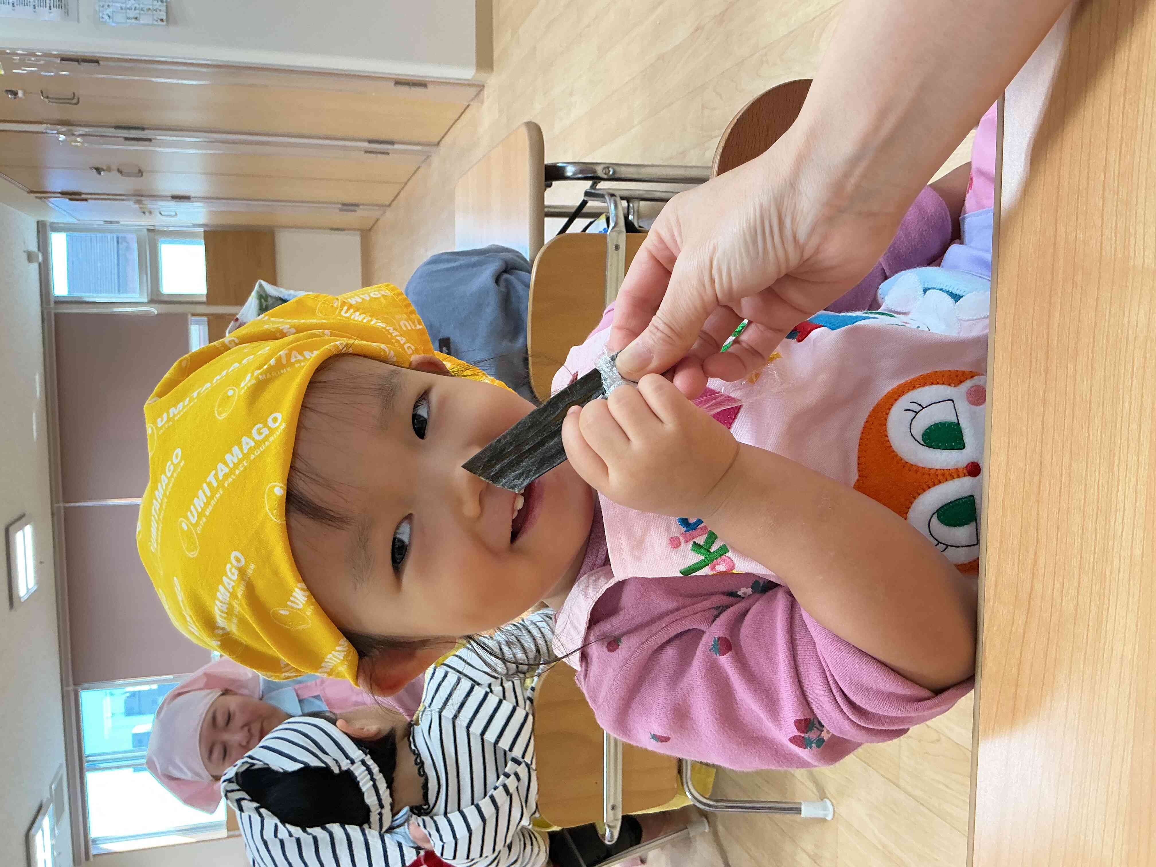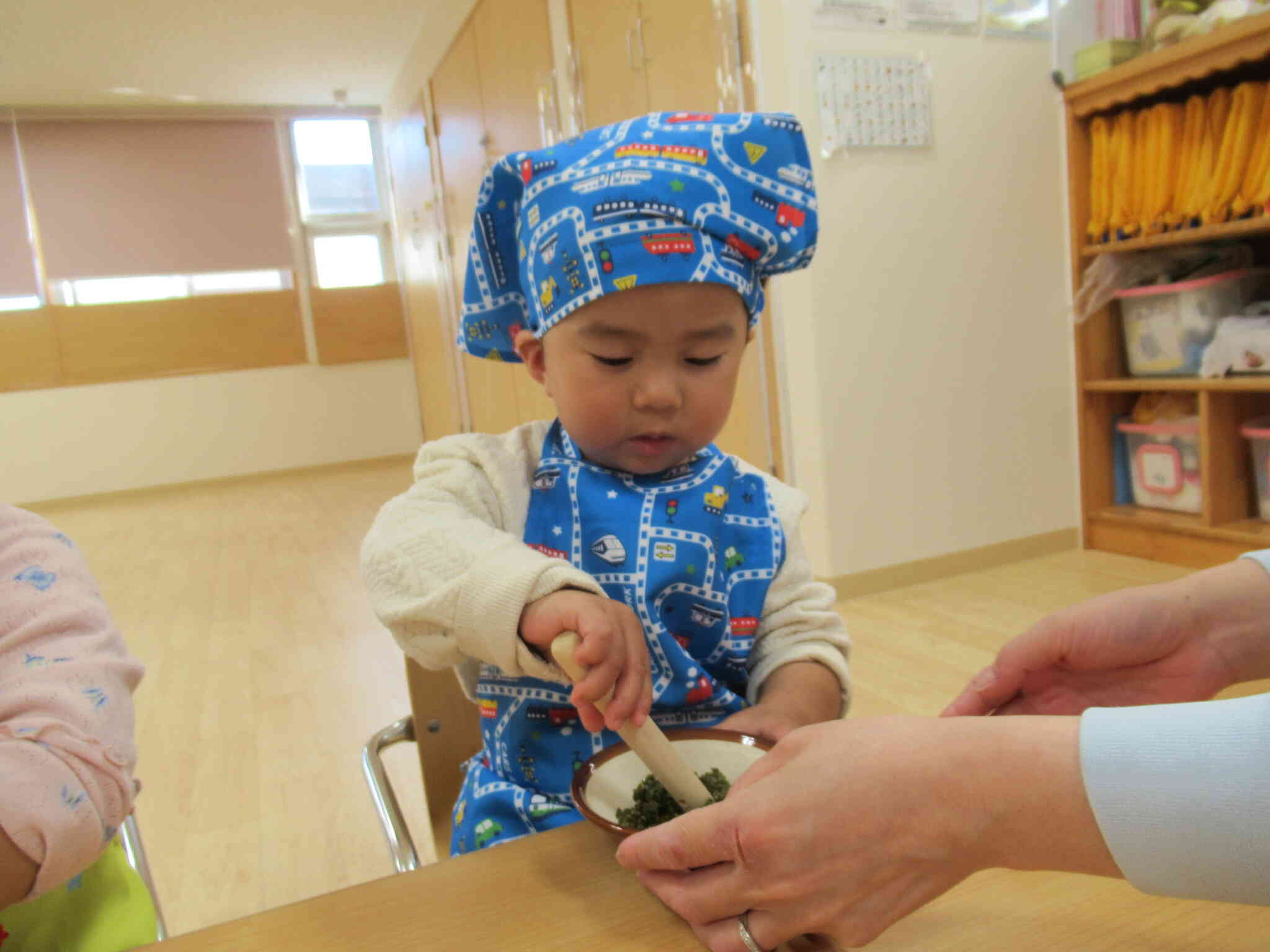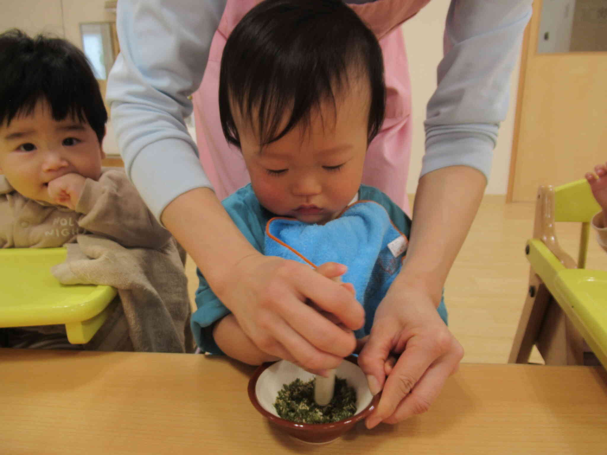 「おいしいね」「いいにおいするね」などたくさん会話を楽しみ、ふりかけ作りも挑戦しました。