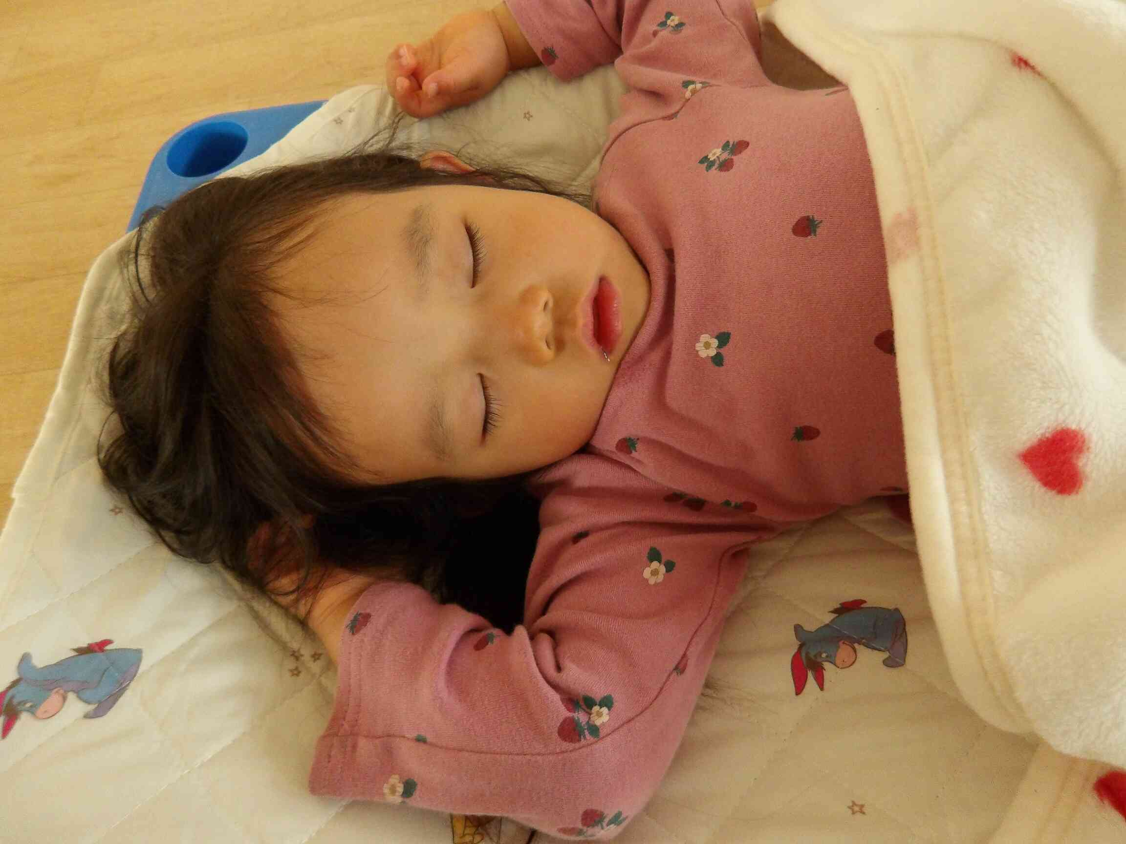 コットの上でスヤスヤきもちよさそうに眠っています♪