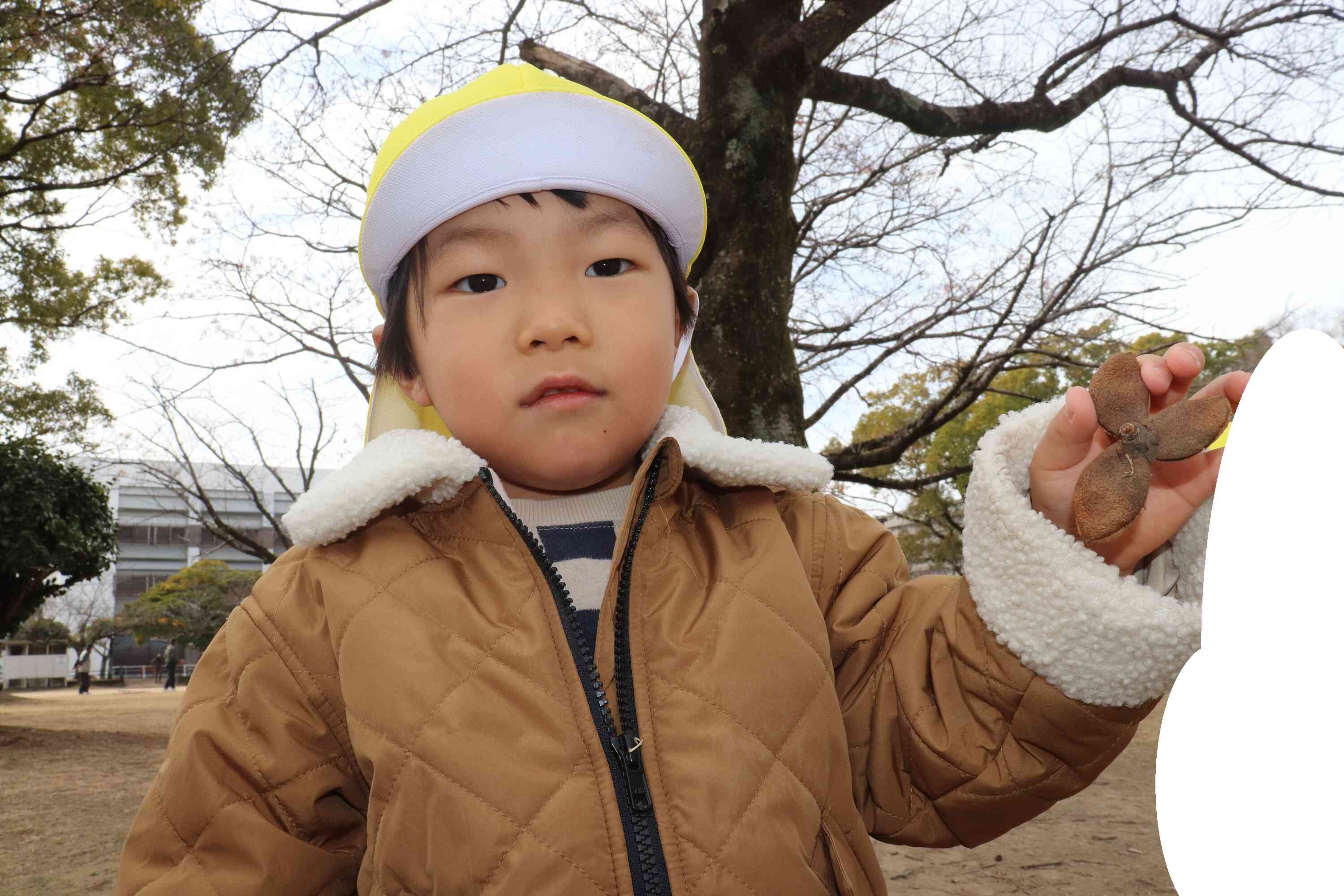 公園散策では「虫探ししようよ!」と早速、虫探しが始まりました。木の幹の下を木の棒を使って掘り起こしてみたり、じーっと観察しながら虫が出てこないか観察したりと真剣な様子で探す子ども達。結局、虫を見つけることはできませんでしたが、「虫さん寒いのかもね」「暑くなったら出てくるんじゃない?」と夏になるのを待ち遠しそうにしていました。そんな中でも季節の草花を見つけることができ、色々な発見もありましたよ。