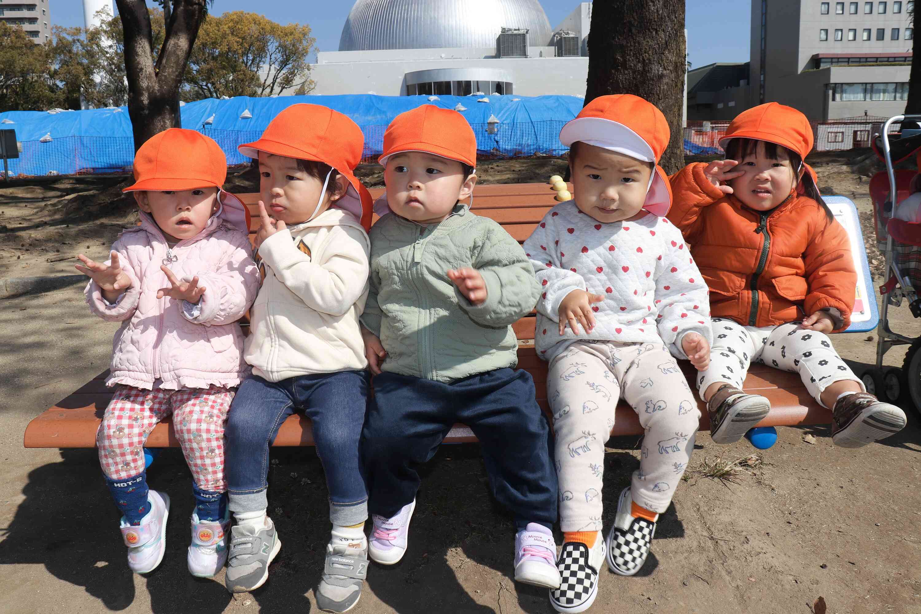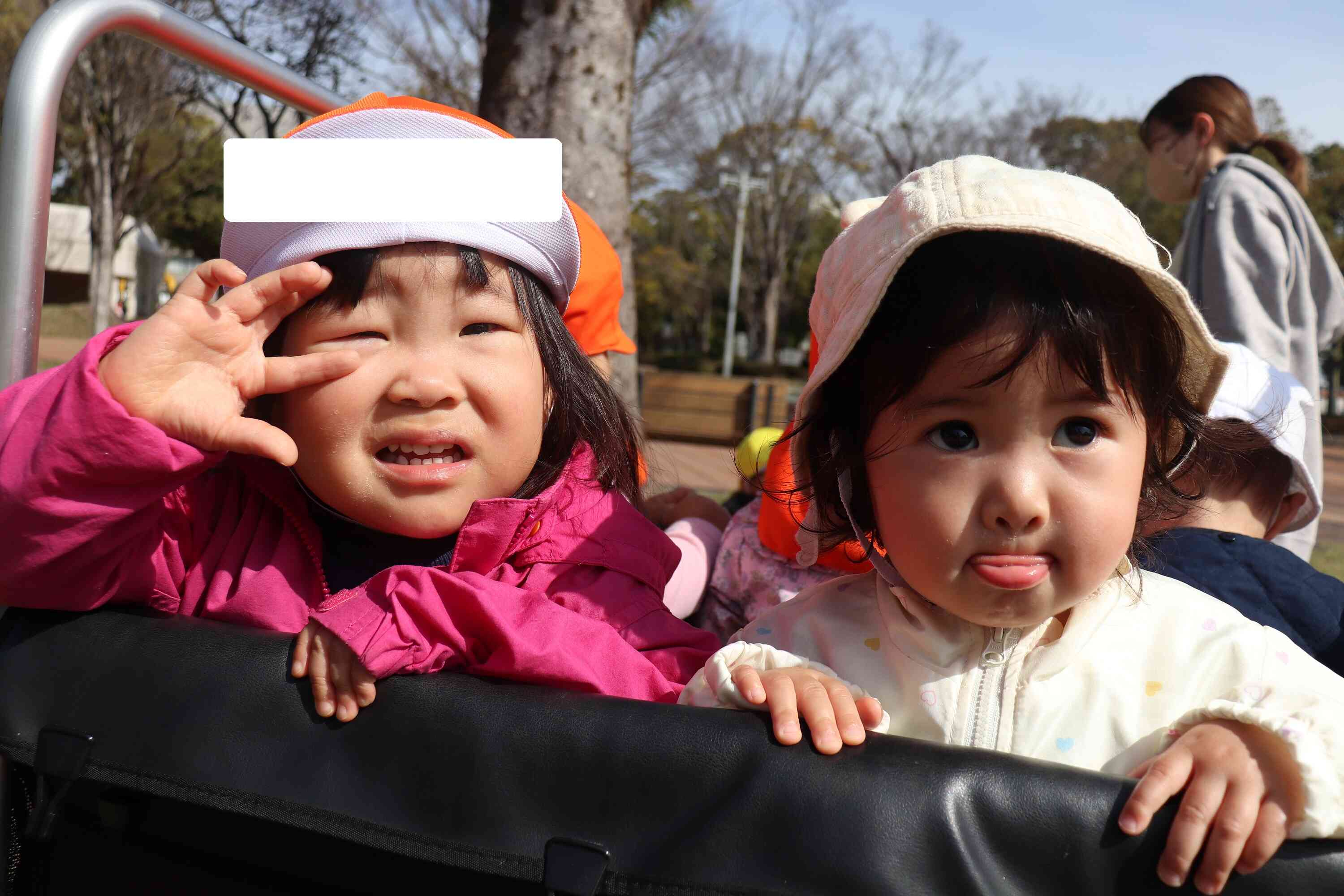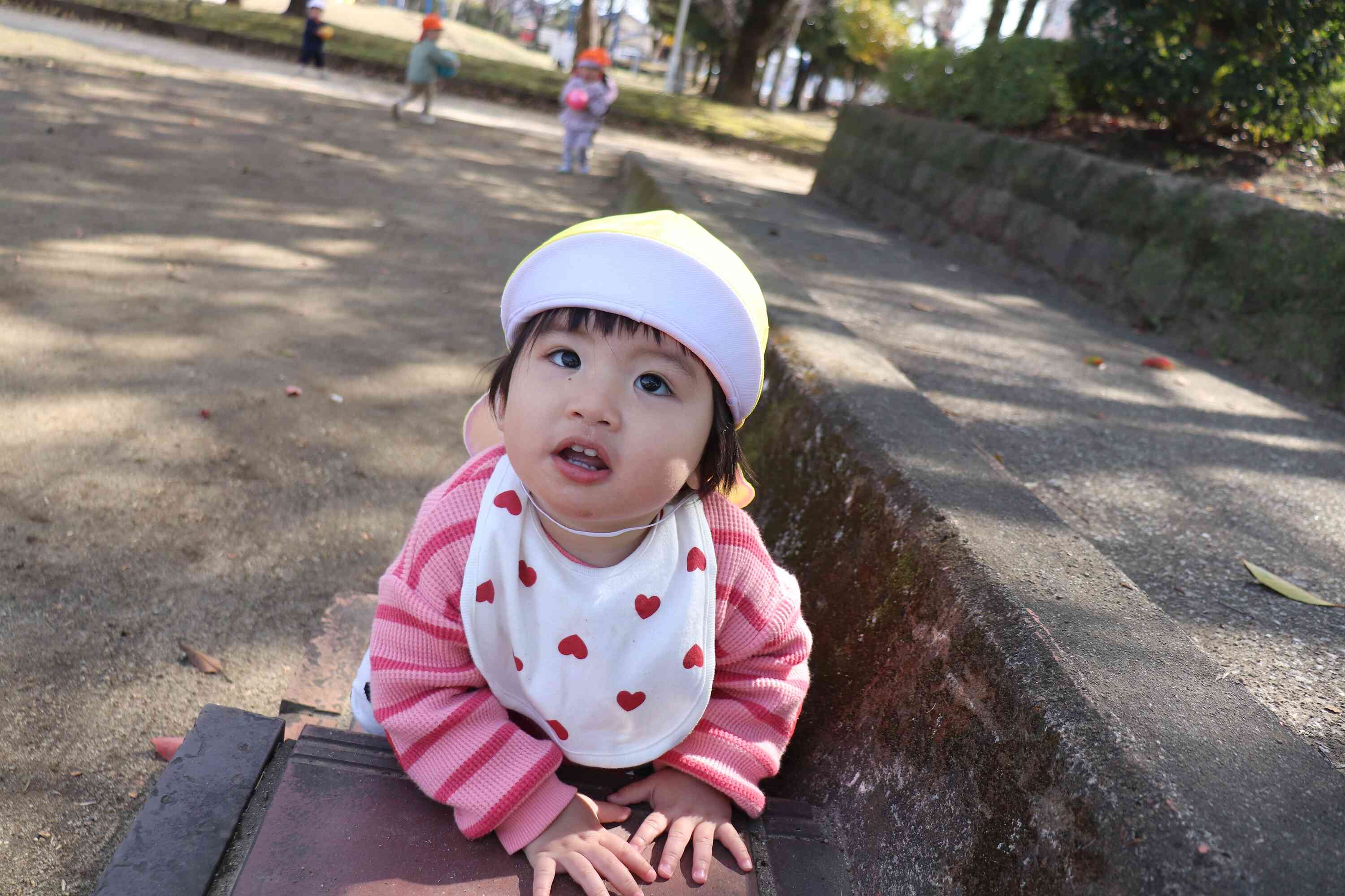 戸外では、室内とは違って思いっきり体を動かせるので、外に行くことを伝えると子ども達も大喜びです。公園やあみゅにわへ行く道のりでも、子ども目線で見るものと私たちが見る目線では大きな違いがある分、発見が広がります。