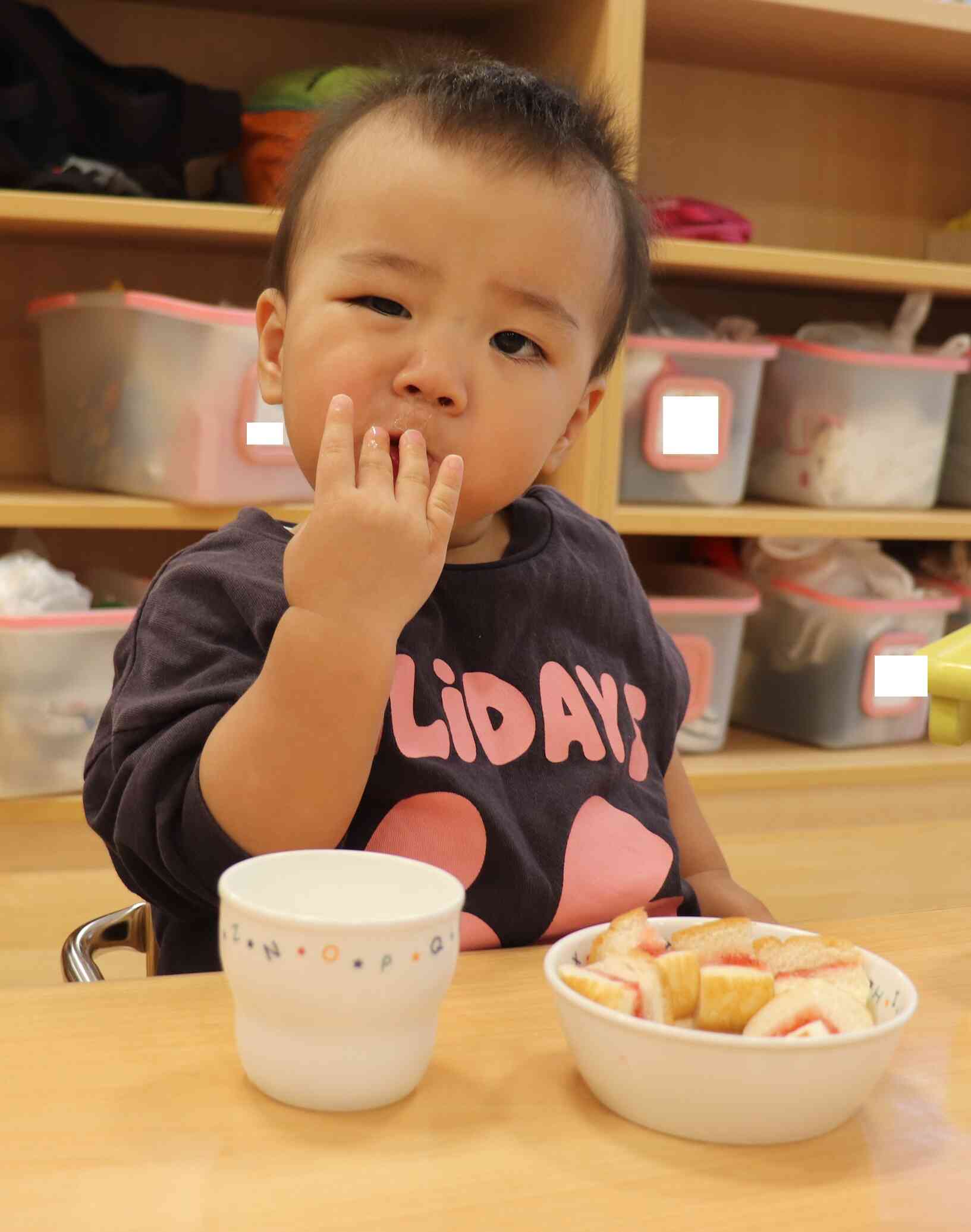 「おいしいね!」といいながらお友だちと仲良く食べていました♪