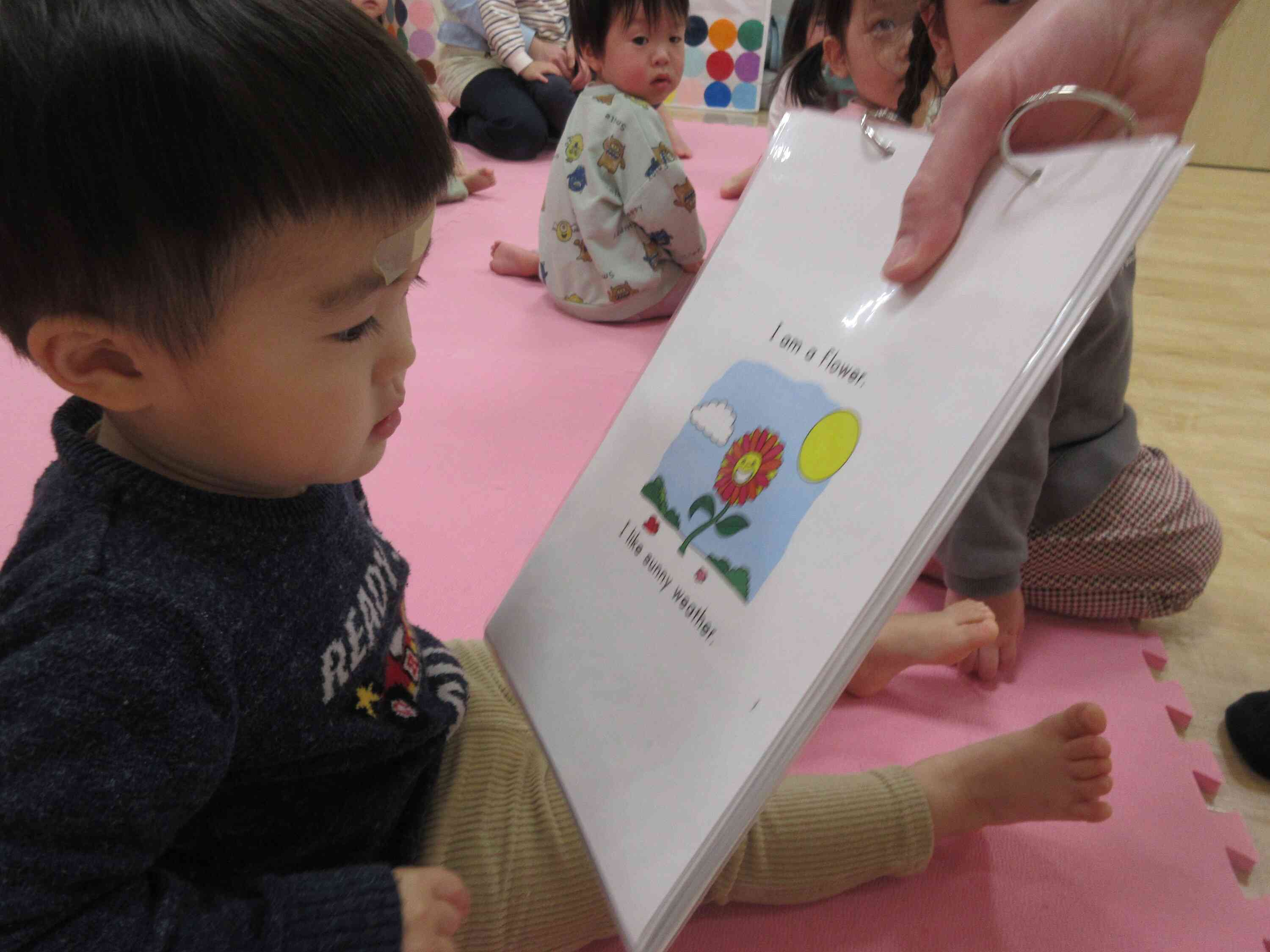 楽しい音楽や英語の発音などひよこぐみ(0歳児)さんも初めての参加でしたが、じーっとライアン先生の表情やお話を見たり聞いたりしていましたよ。小さくても色々な事を吸収していきますね。楽しみです。