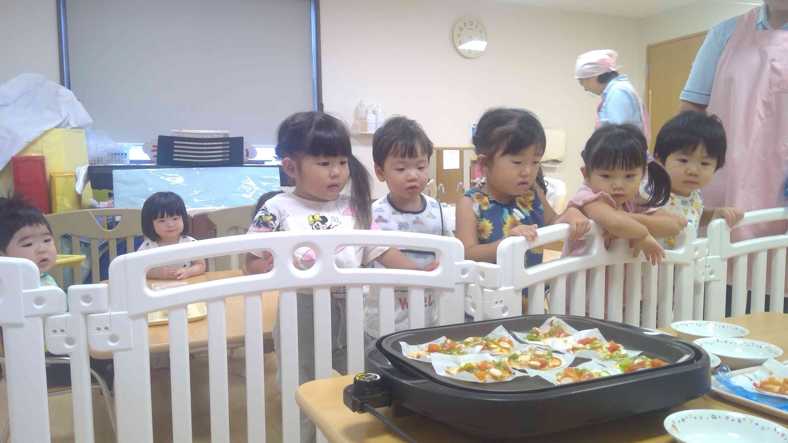 ピザが焼けたら、「おいしそう~!」「いいにおい~」と子どもたちの目がキラキラしていました。