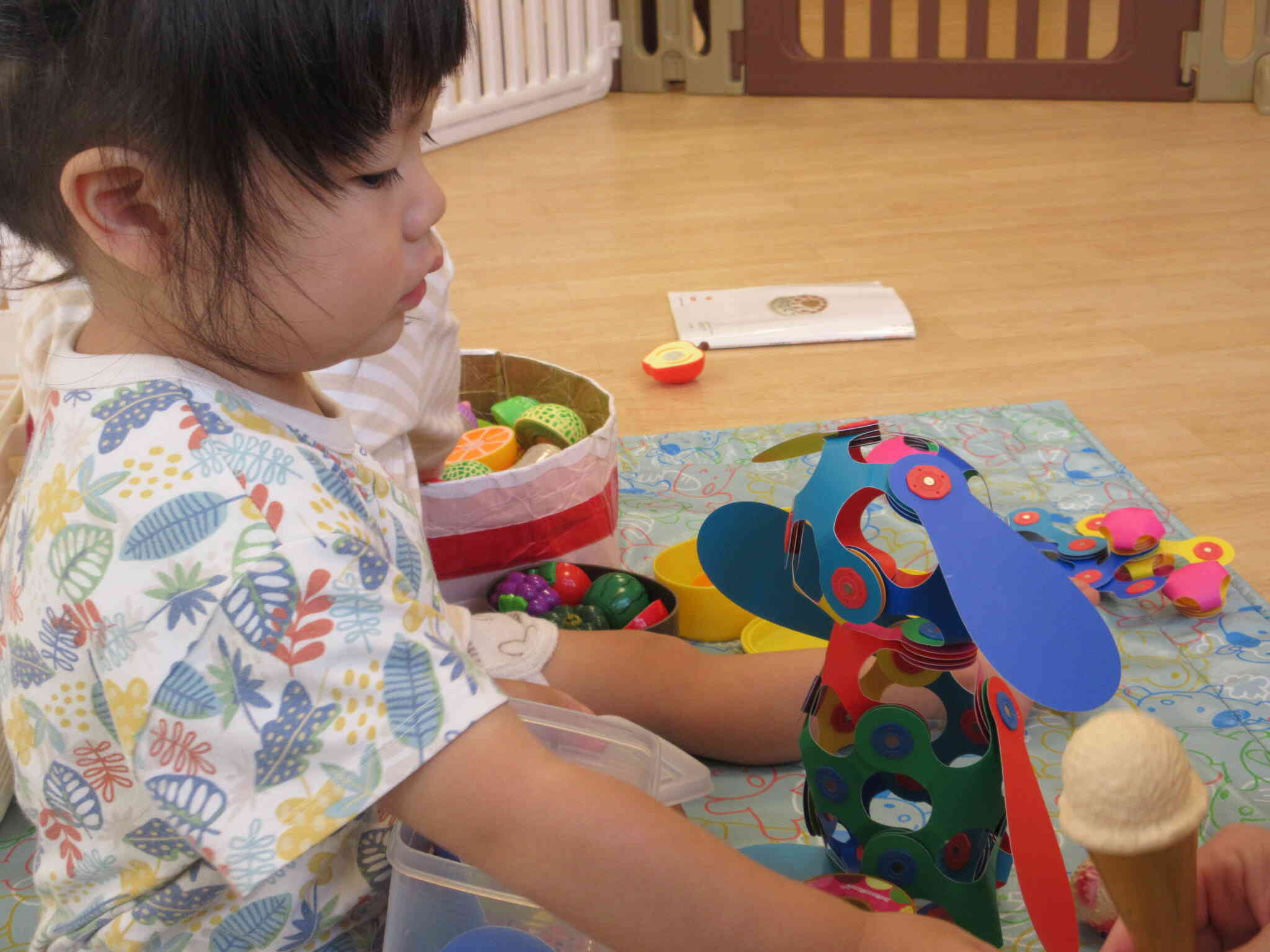 おもちゃ同士がくっつくのが面白いです。いろいろ組み合わせて出来たのは、かわいらしいお友達。