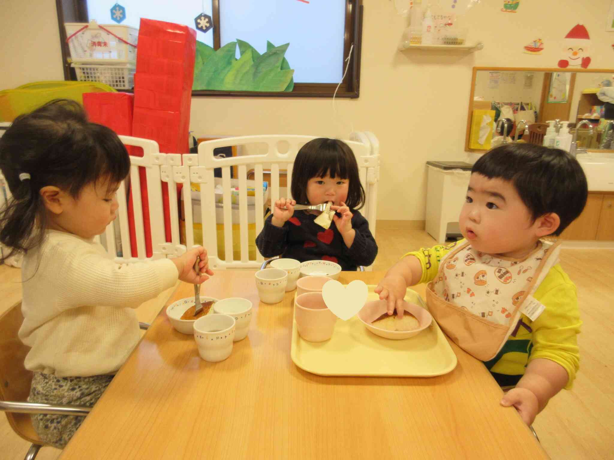 おいしそうなにおいに誘われて、みんなでカステラをいただきましょう。