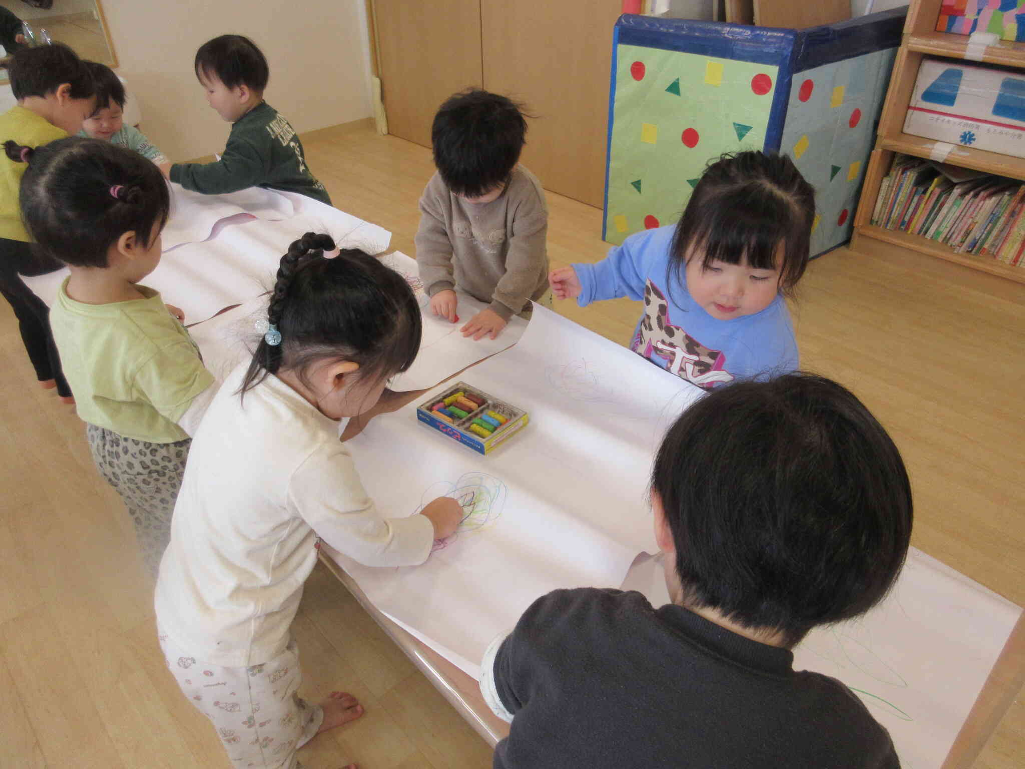 みんなの心の中にある世界が机いっぱいの紙に広がったようで、楽しいひとときでした。