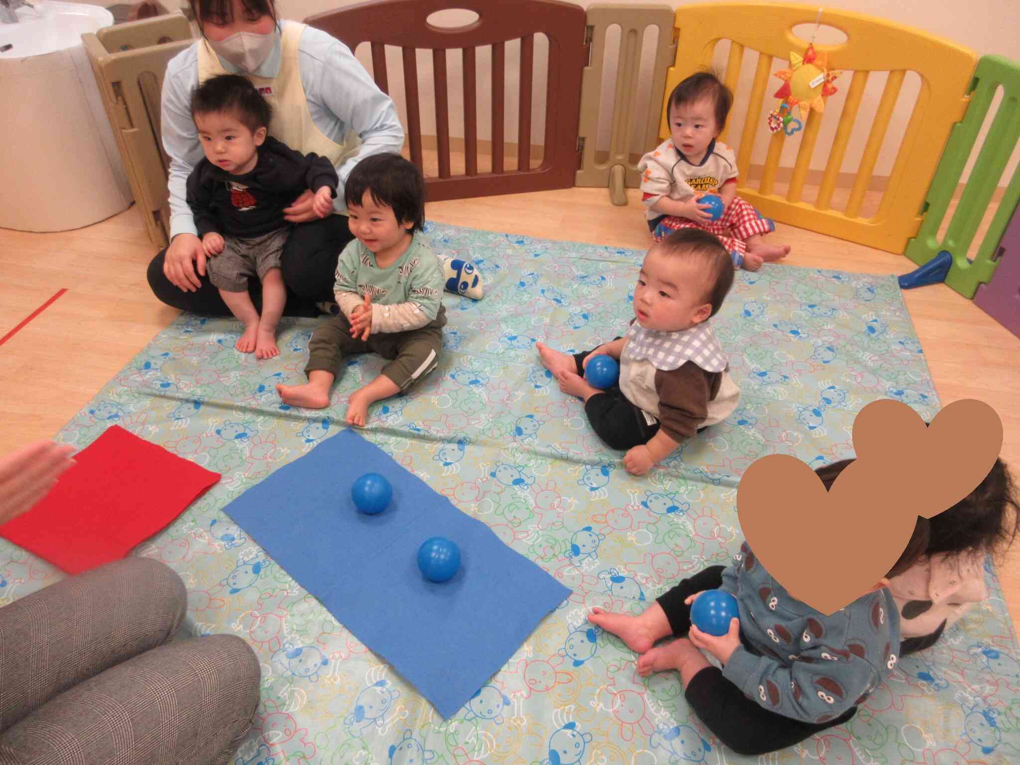 0歳児クラスのお友達も、色と数字の練習です。