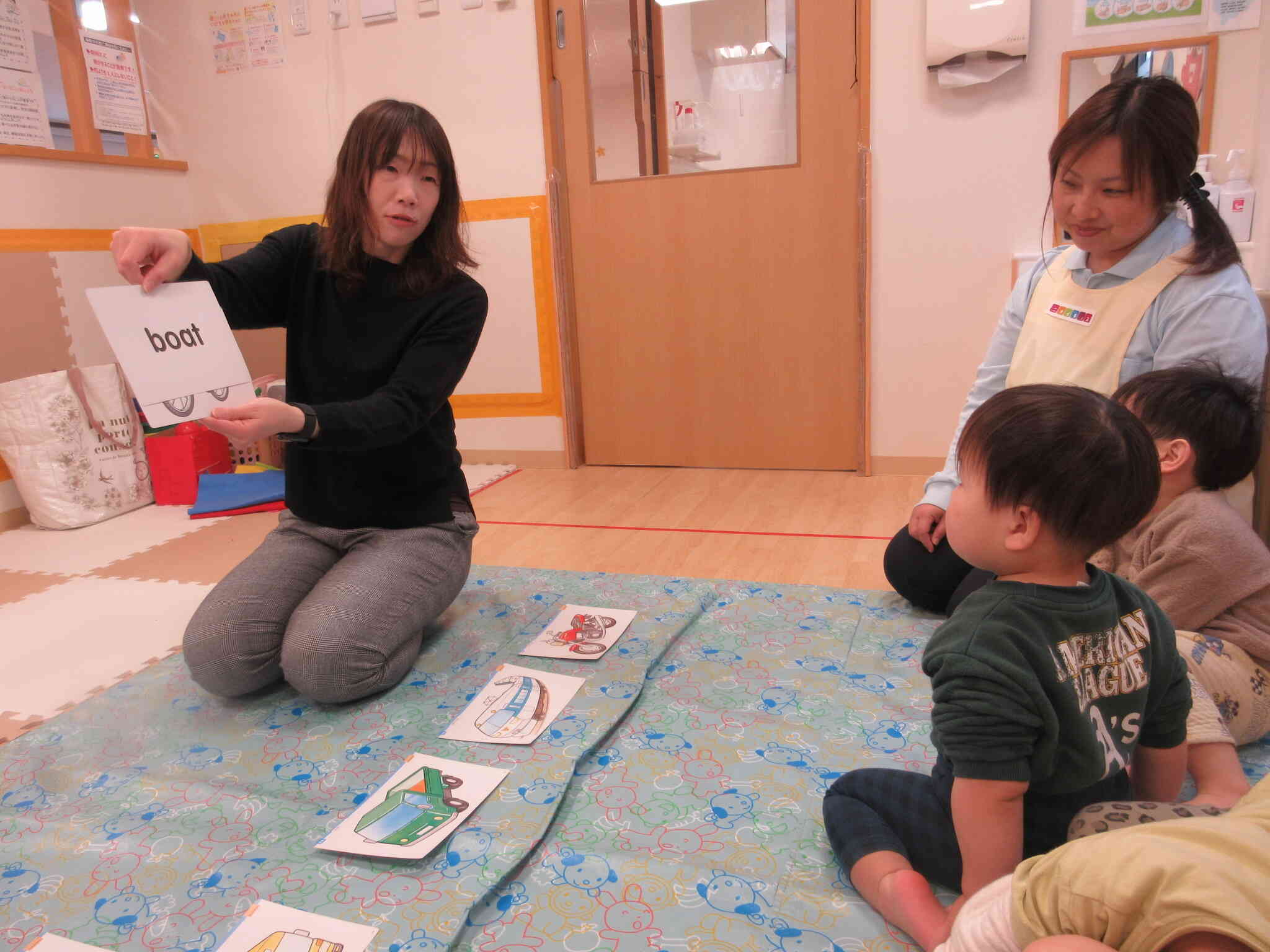乗り物の単語のコーナーでは、乗り物好きのお友達が大ハリキリ!