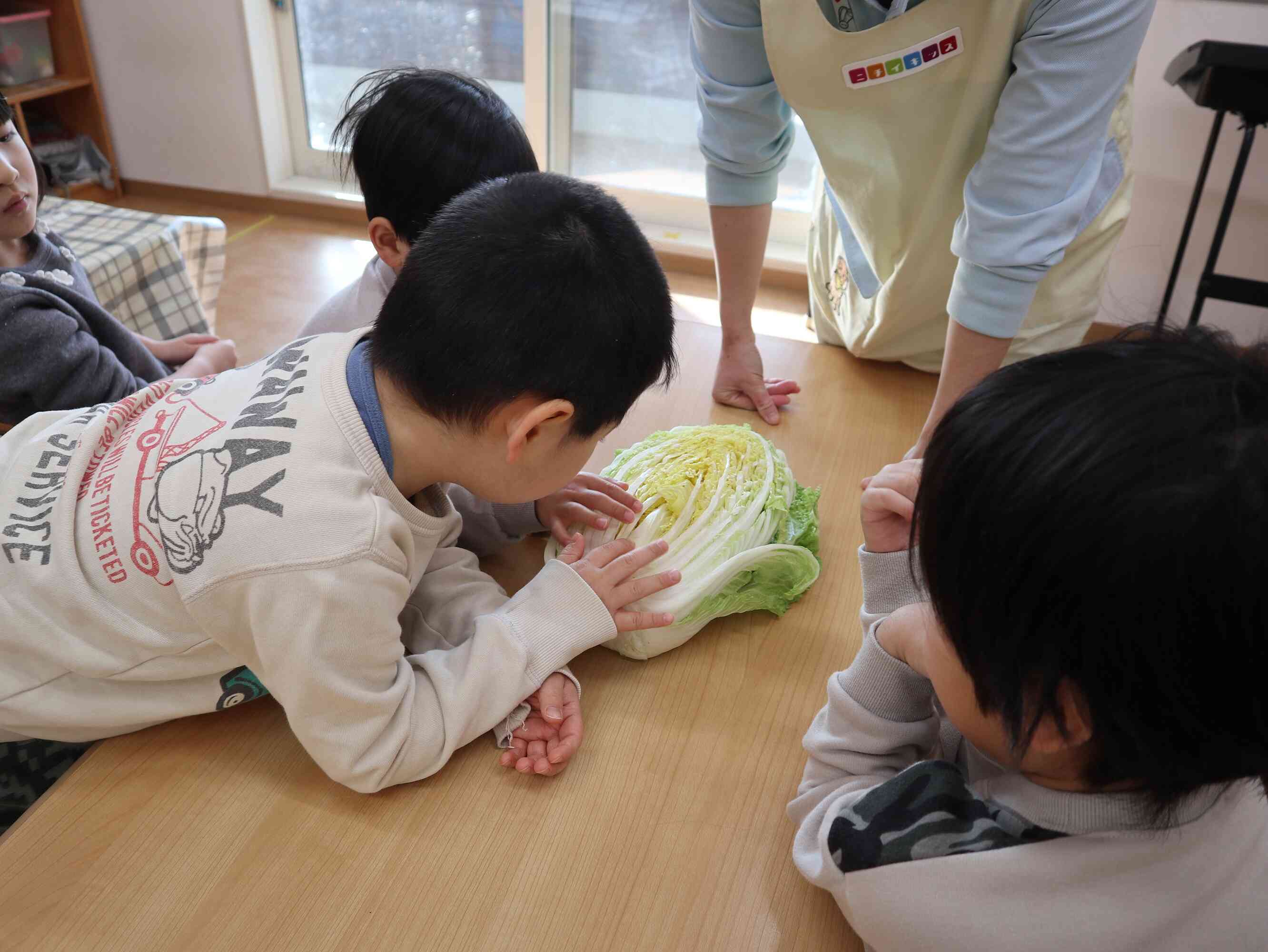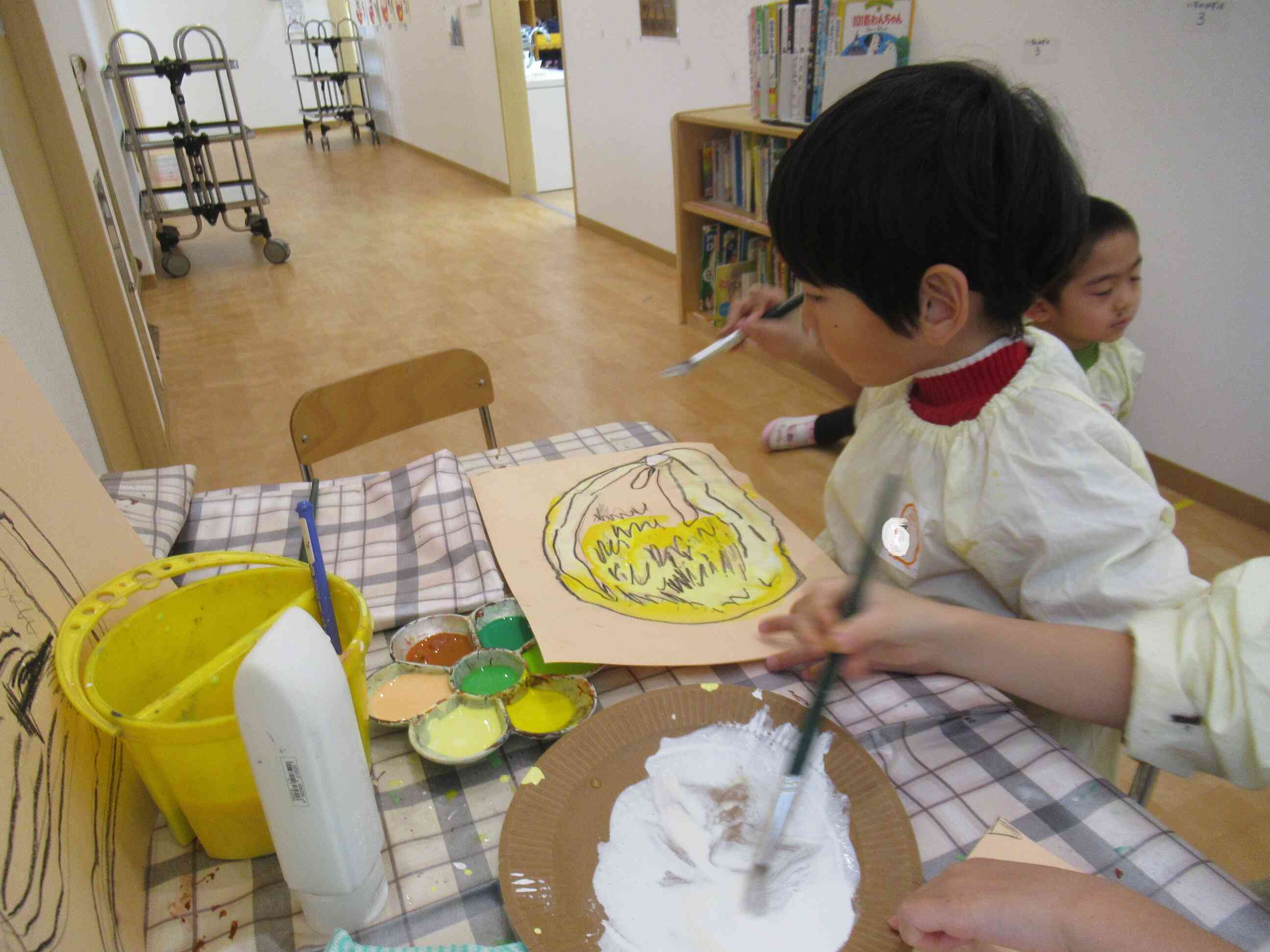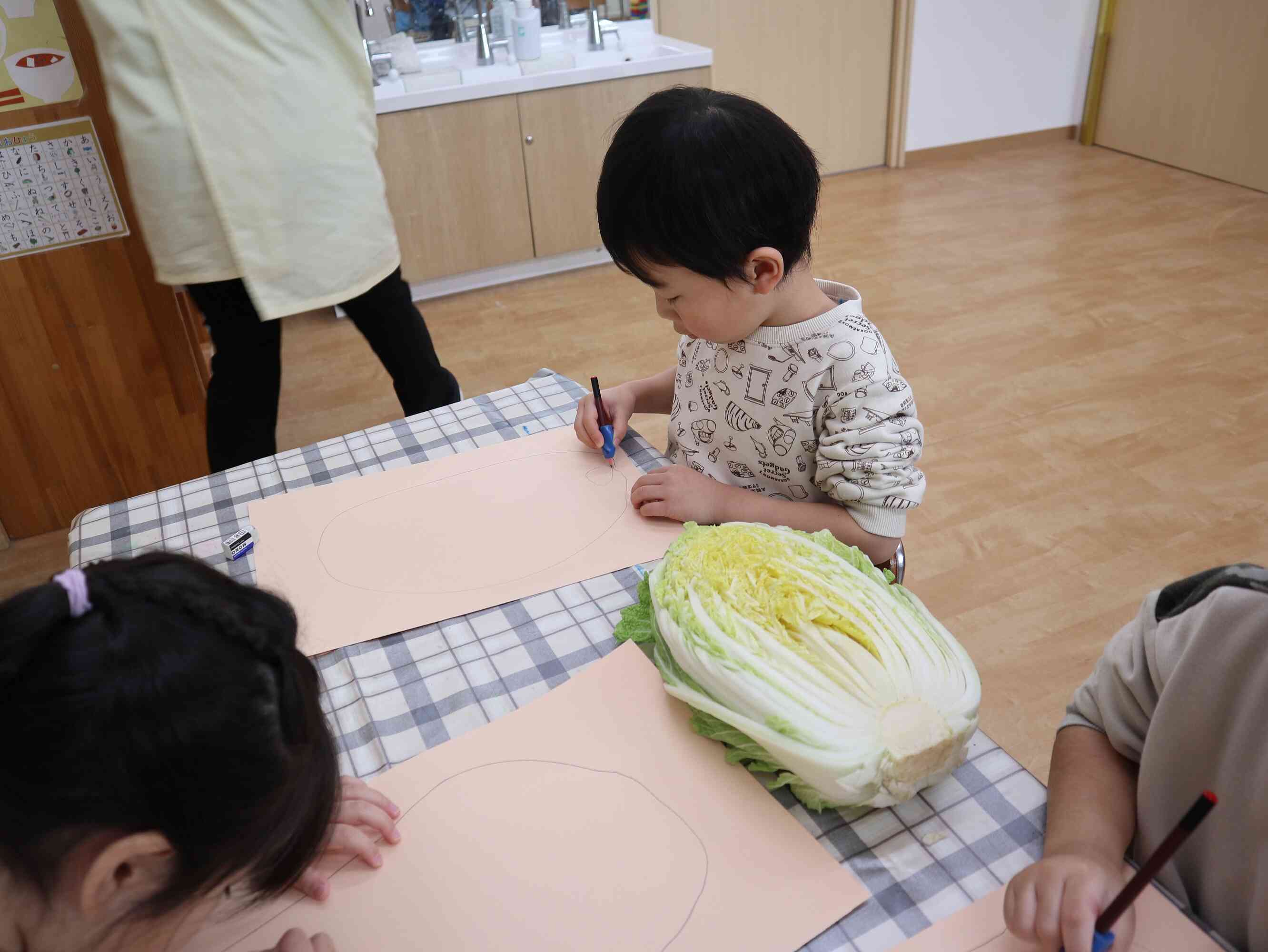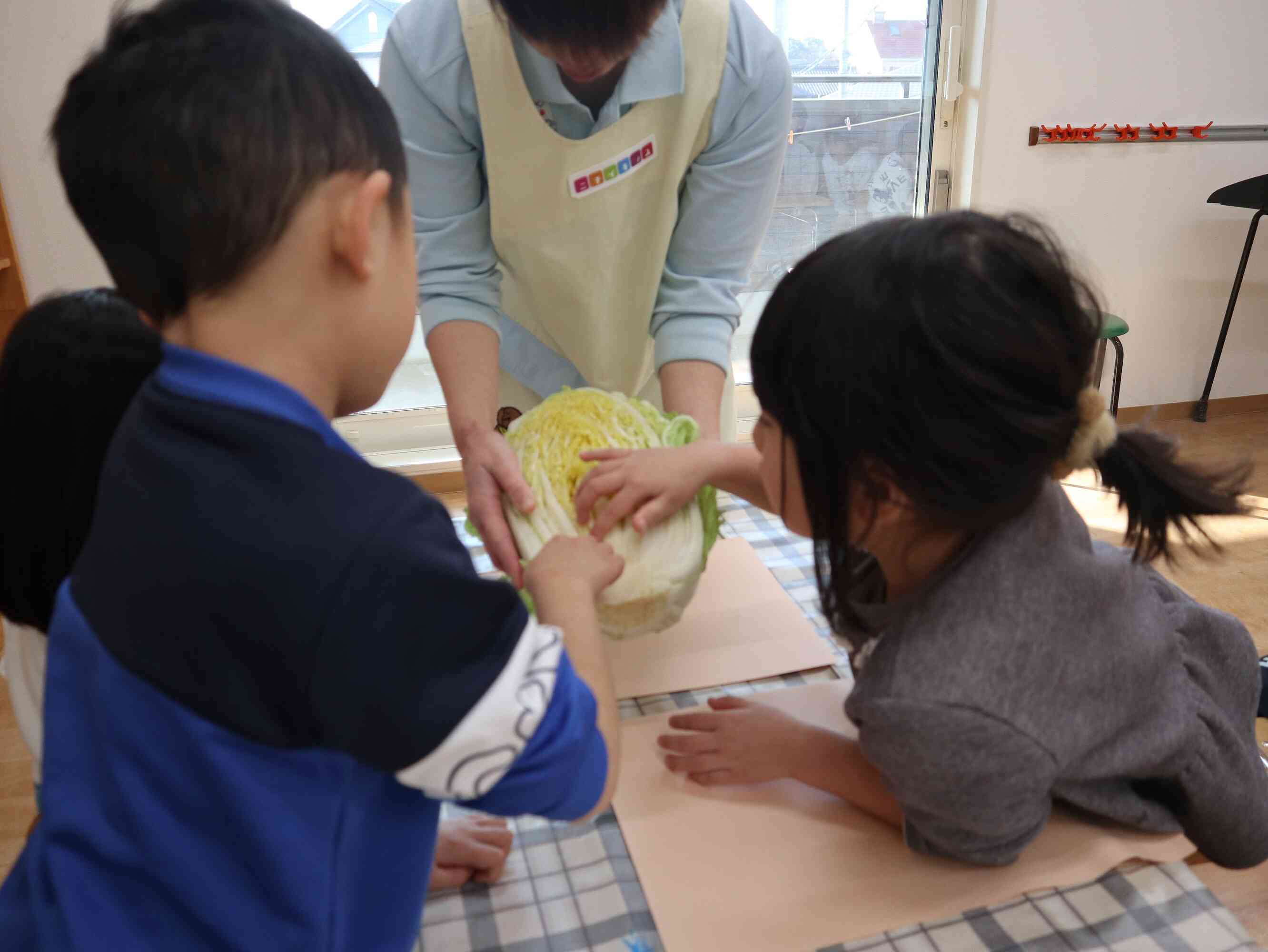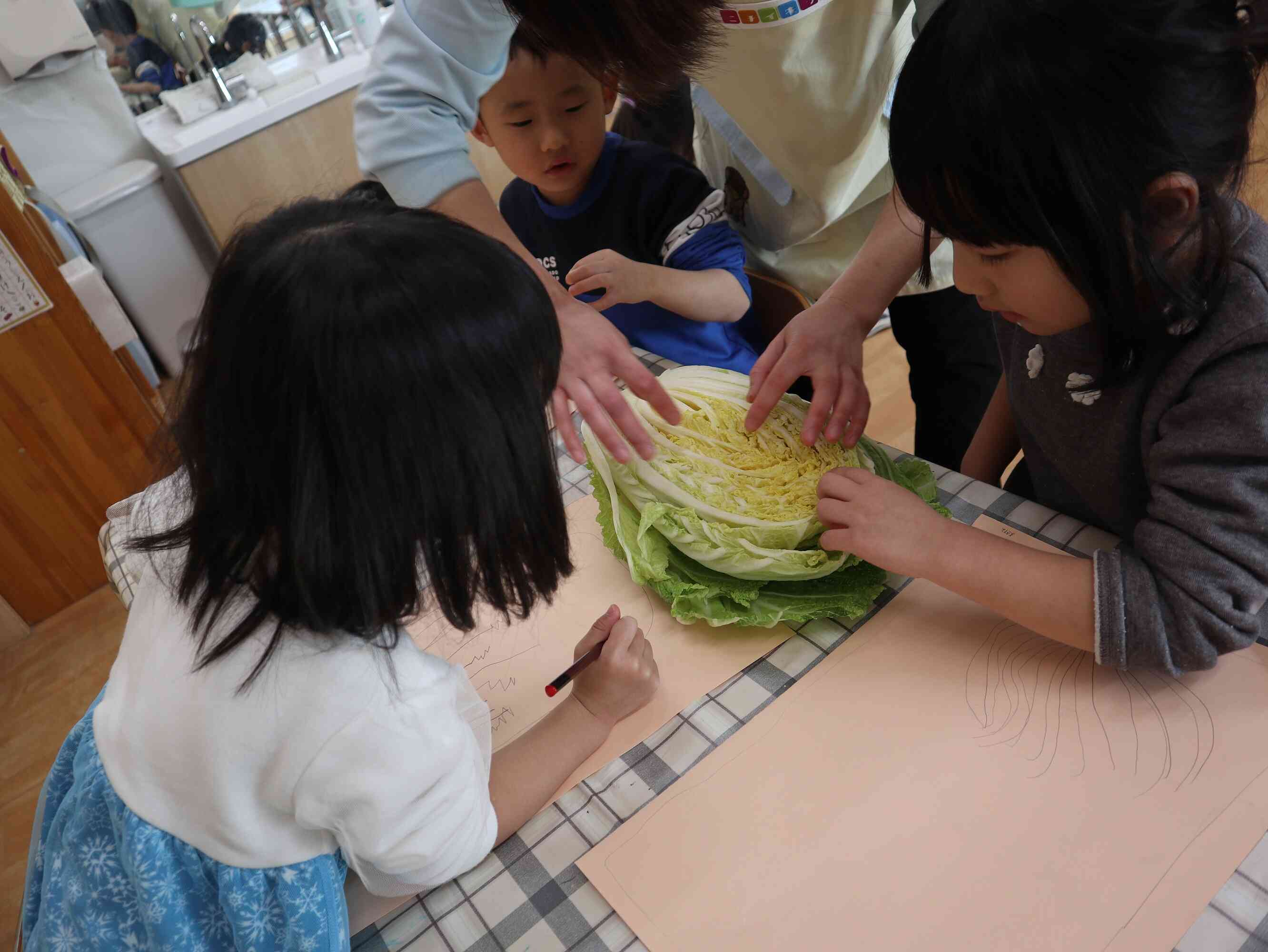 塗ってみる前に色を確かめ、白菜と見比べながら