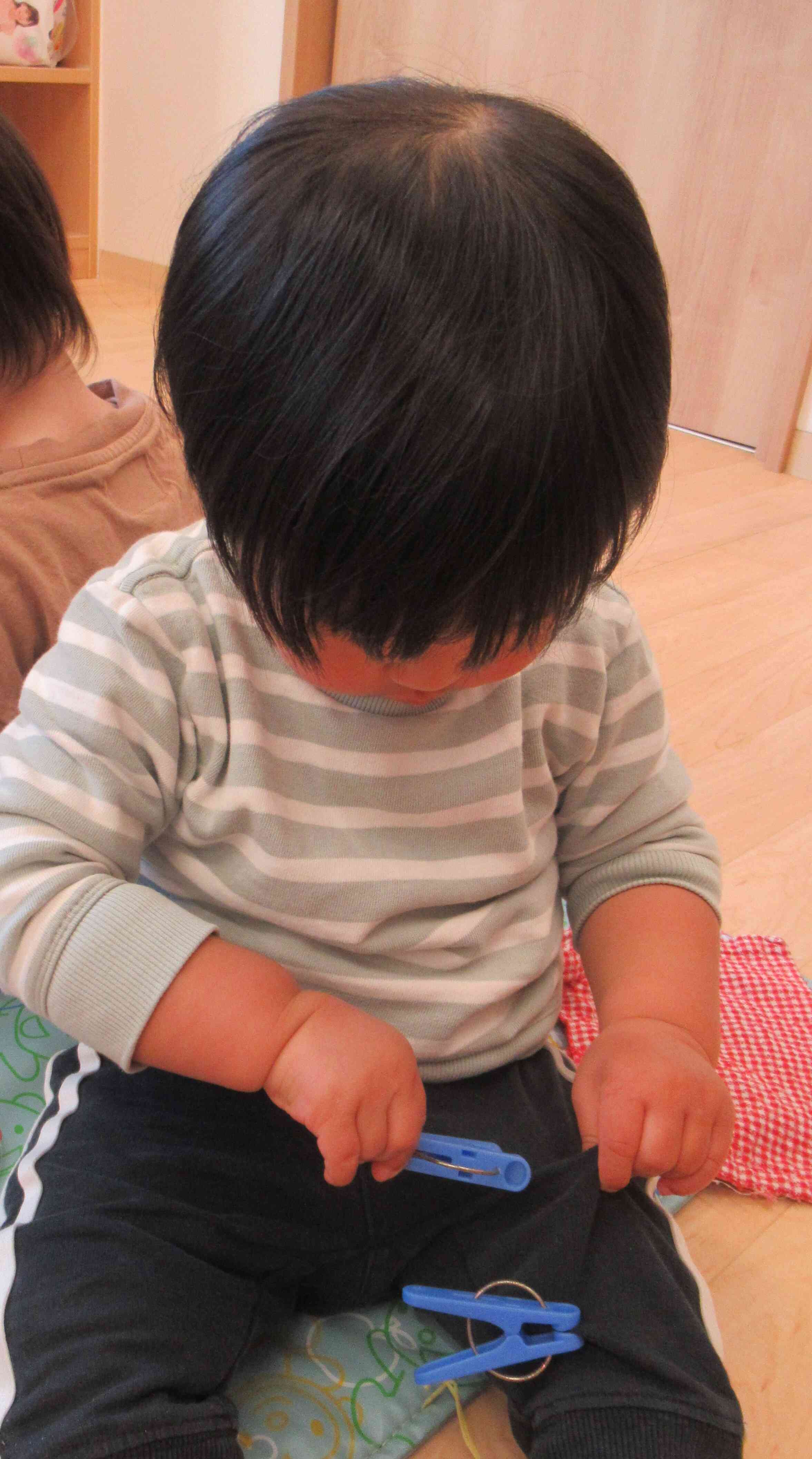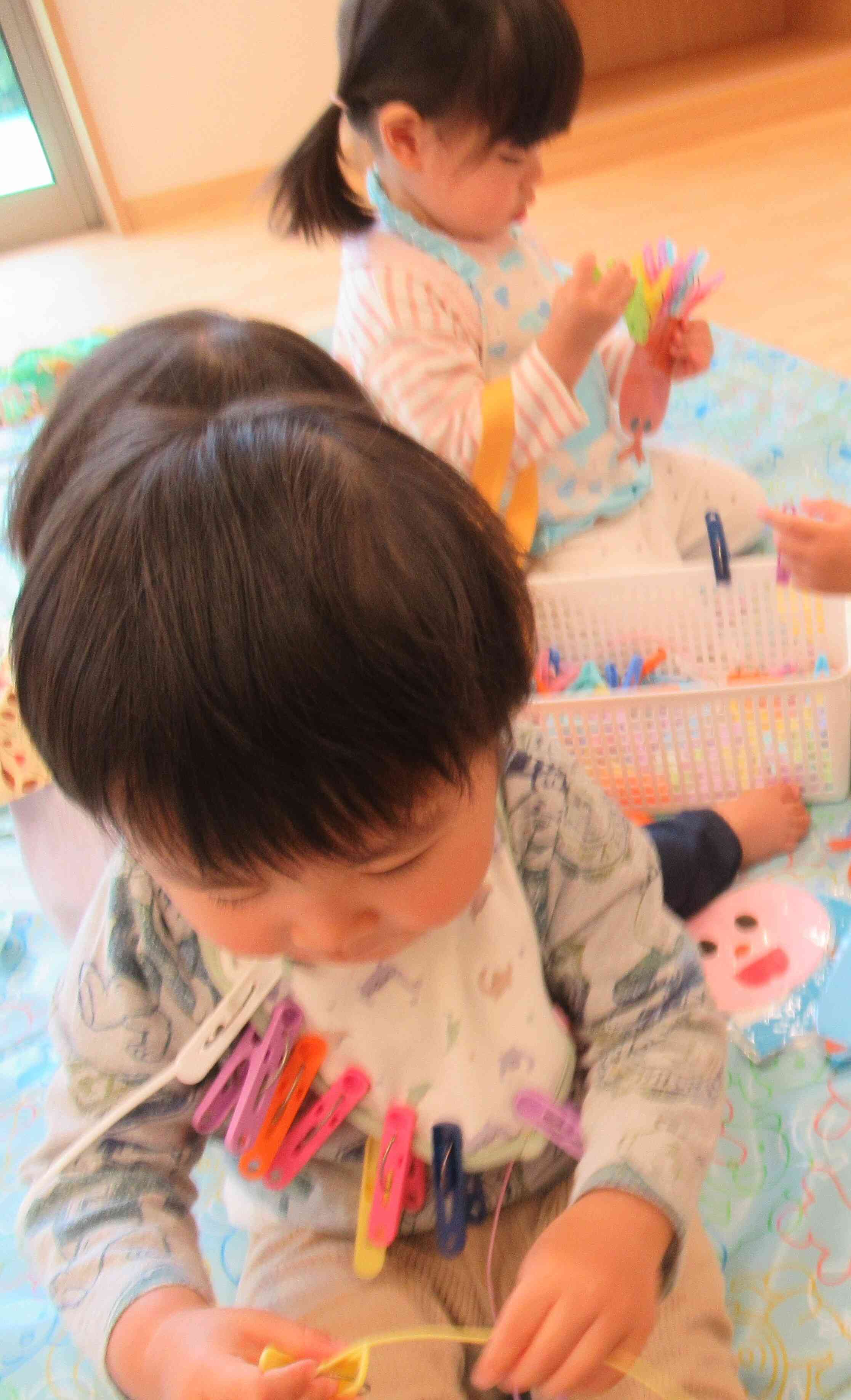 朝おやつのあとに、洗濯ばさみで遊びました!