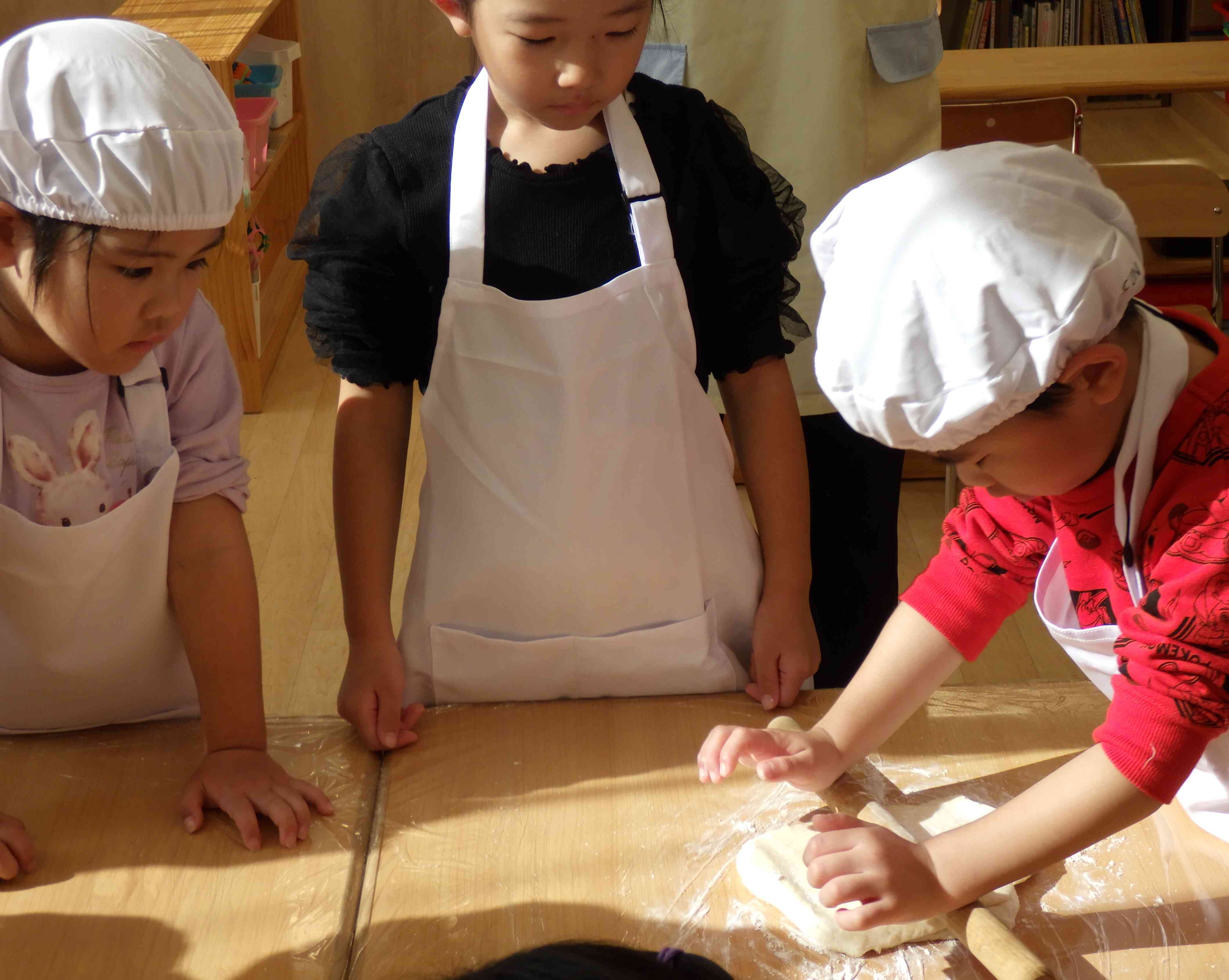 生地がひとつにまとまっていく様子に興味津々な子どもたちです。