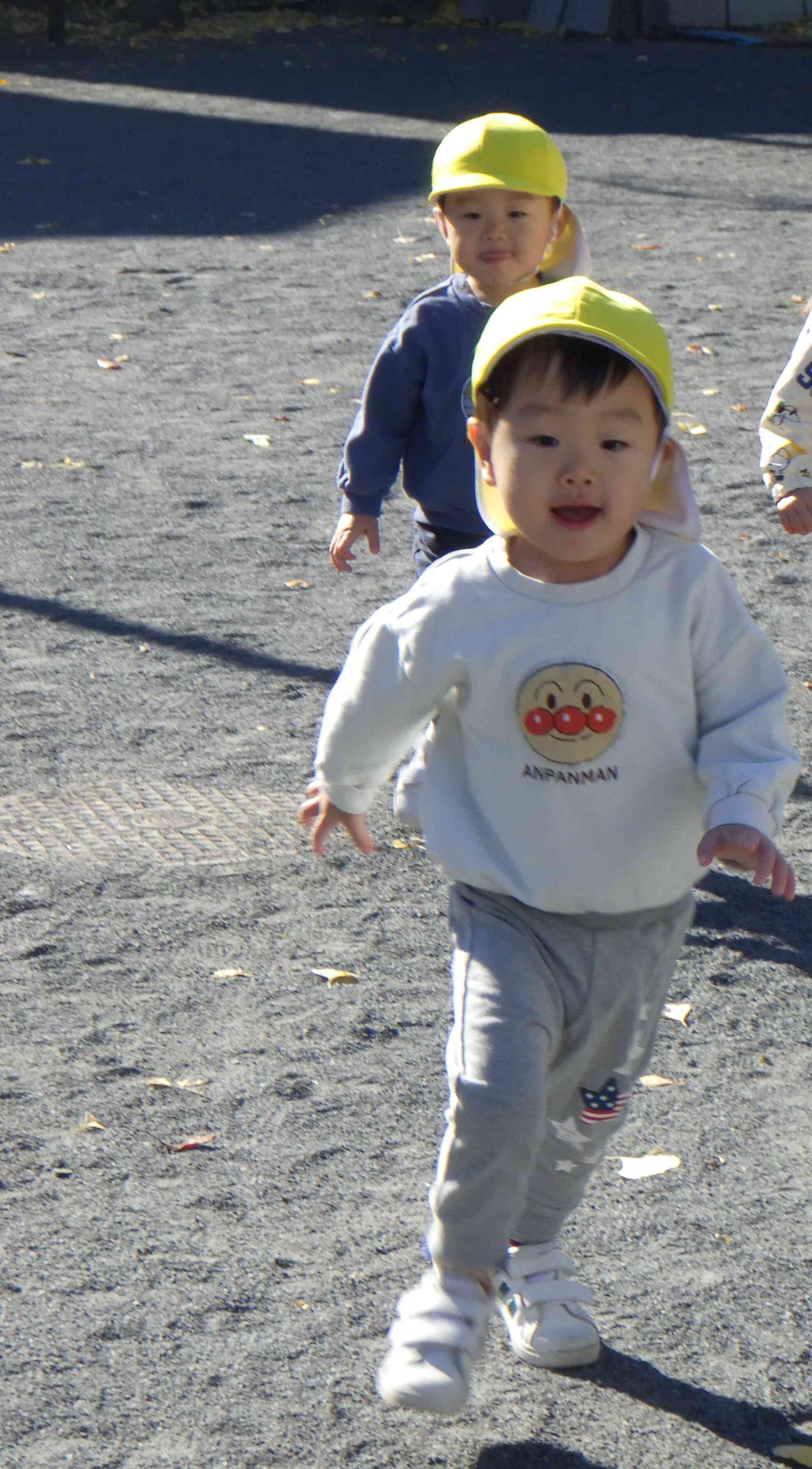 2歳児クラスでは、公園にいくと体を温めるためにみんなでたくさん走ります☆「よ~い!ドン!!」の合図でみんなが元気いっぱい走っている姿を見るとうれしいですね♪