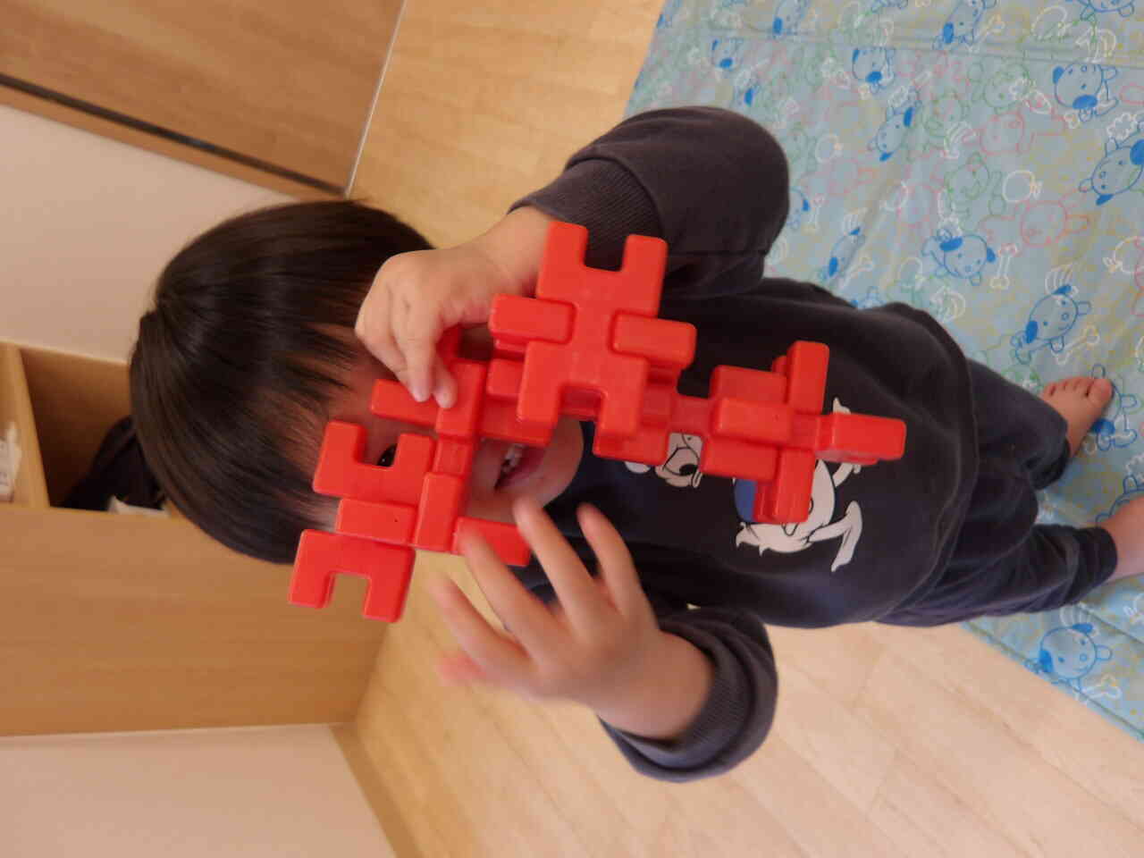 鋳型ブロックでさまざまな大作を作ることができるようになった1歳児さん♬一生懸命作った後はお友だちと「みて~かっこいいでしょう?」と見せ合いっこをしています!いろいろな形に組み立てられるようになり感心してしまいます☆