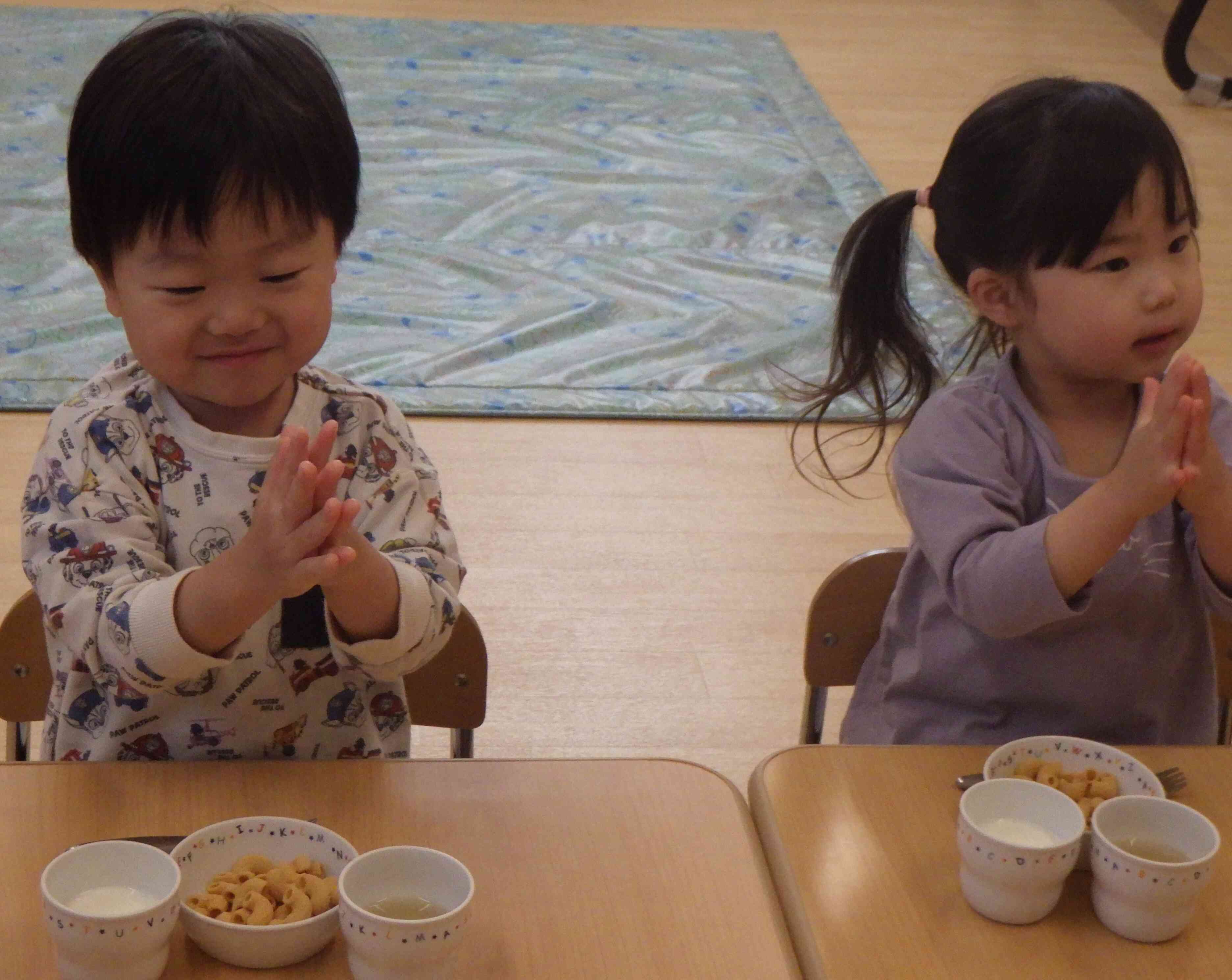 「いただきます!」で食べ始めると「おいしいね」「あまいね」といいながらペロリと完食でした♬自分たちで作ったマカロニきな粉は格別だったようです!