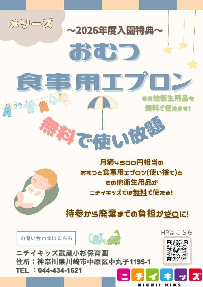 2026年度入園・継続特典!おむつ等の無償提供を継続+拡大します!