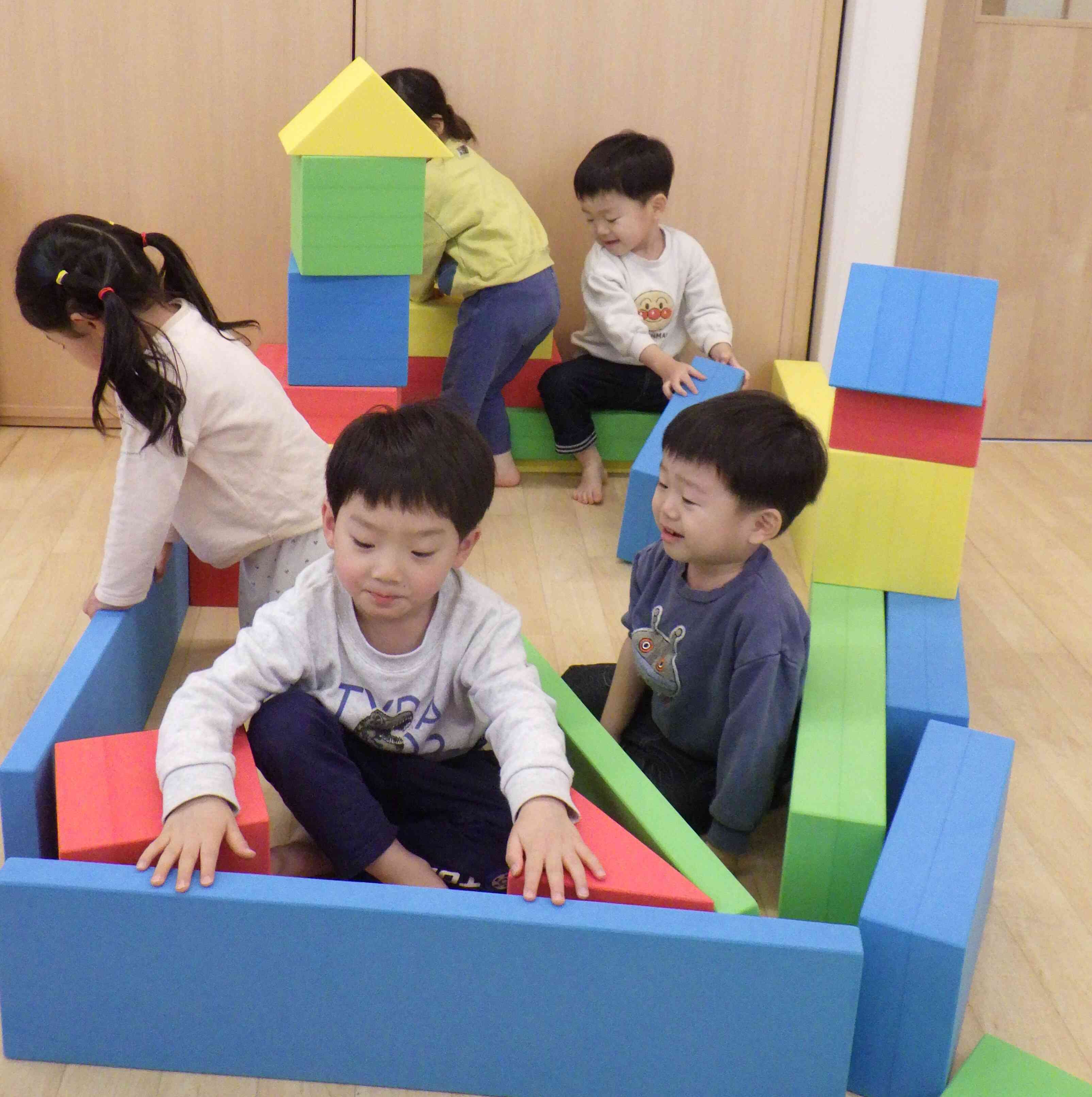 それぞれのお部屋で横になってくつろいでいるいる姿がとってもかわいかったです!「みんなでお家作って楽しかったね」と嬉しそうな子ども達でした♬