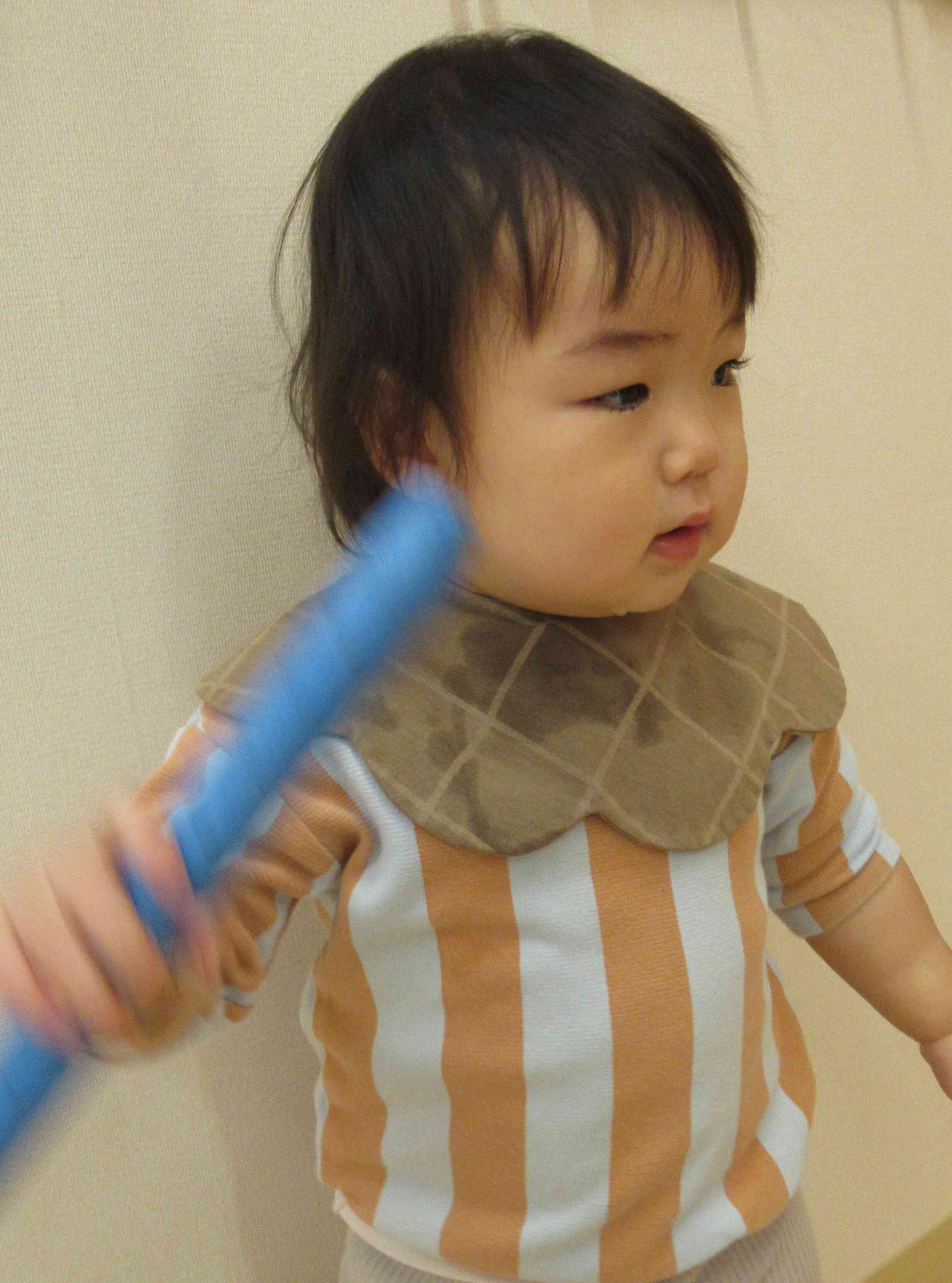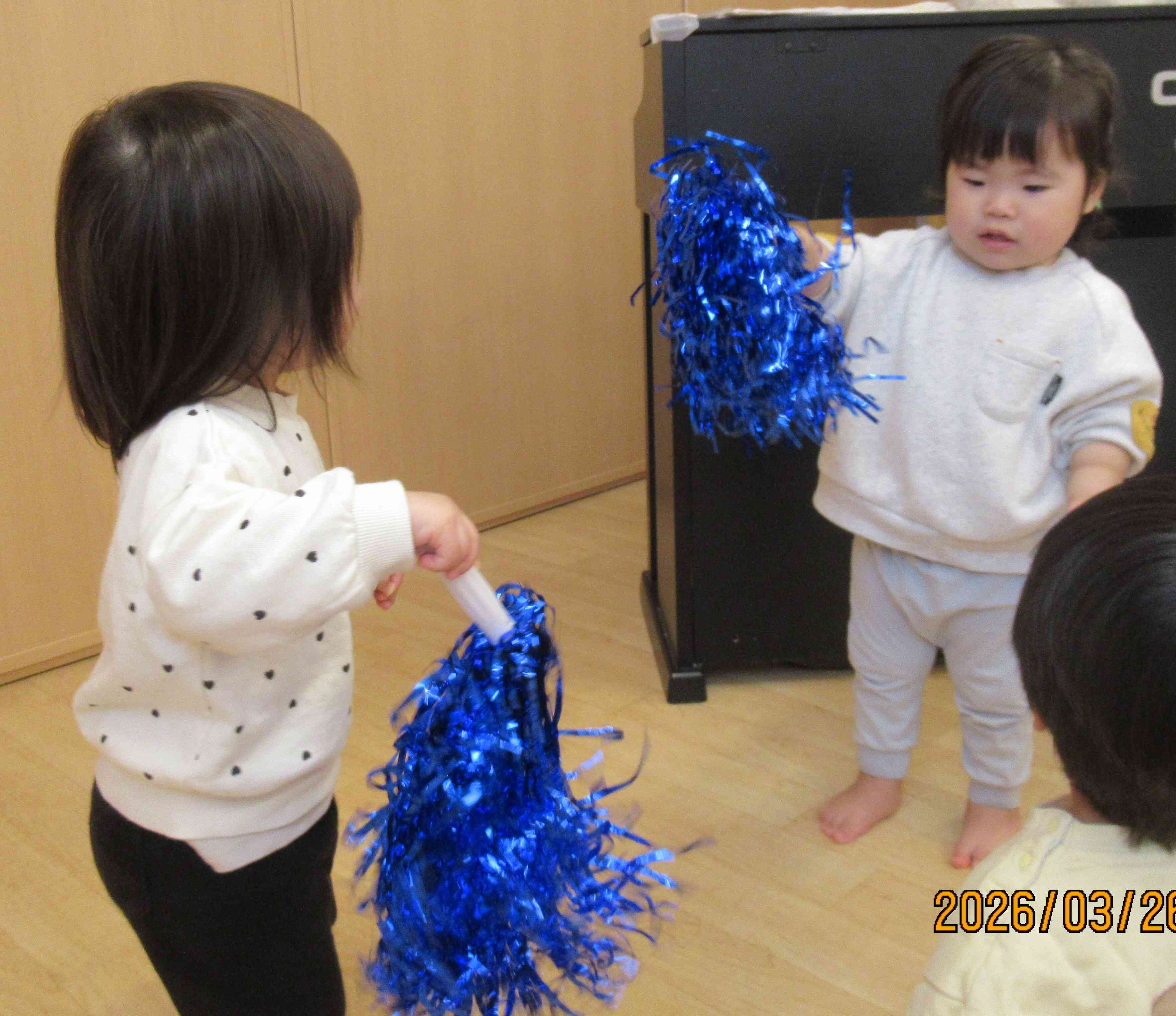 キラキラのポンポンを持ってとっても嬉しそうにシャンシャンしている姿がとっても可愛いです♡お風呂は沸いたかな?