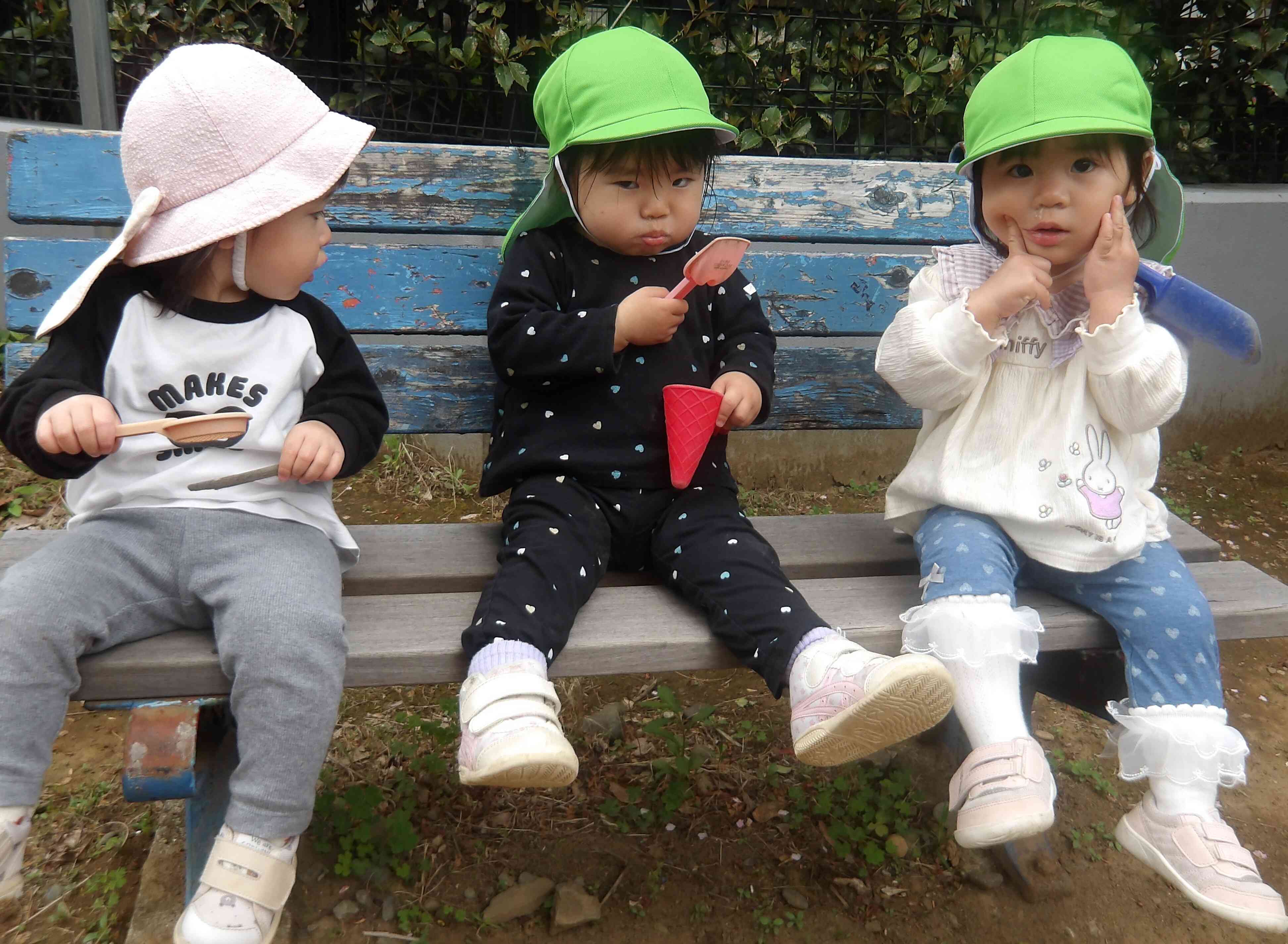 お茶タイムはベンチに座ってとってもかわいかったです♡
