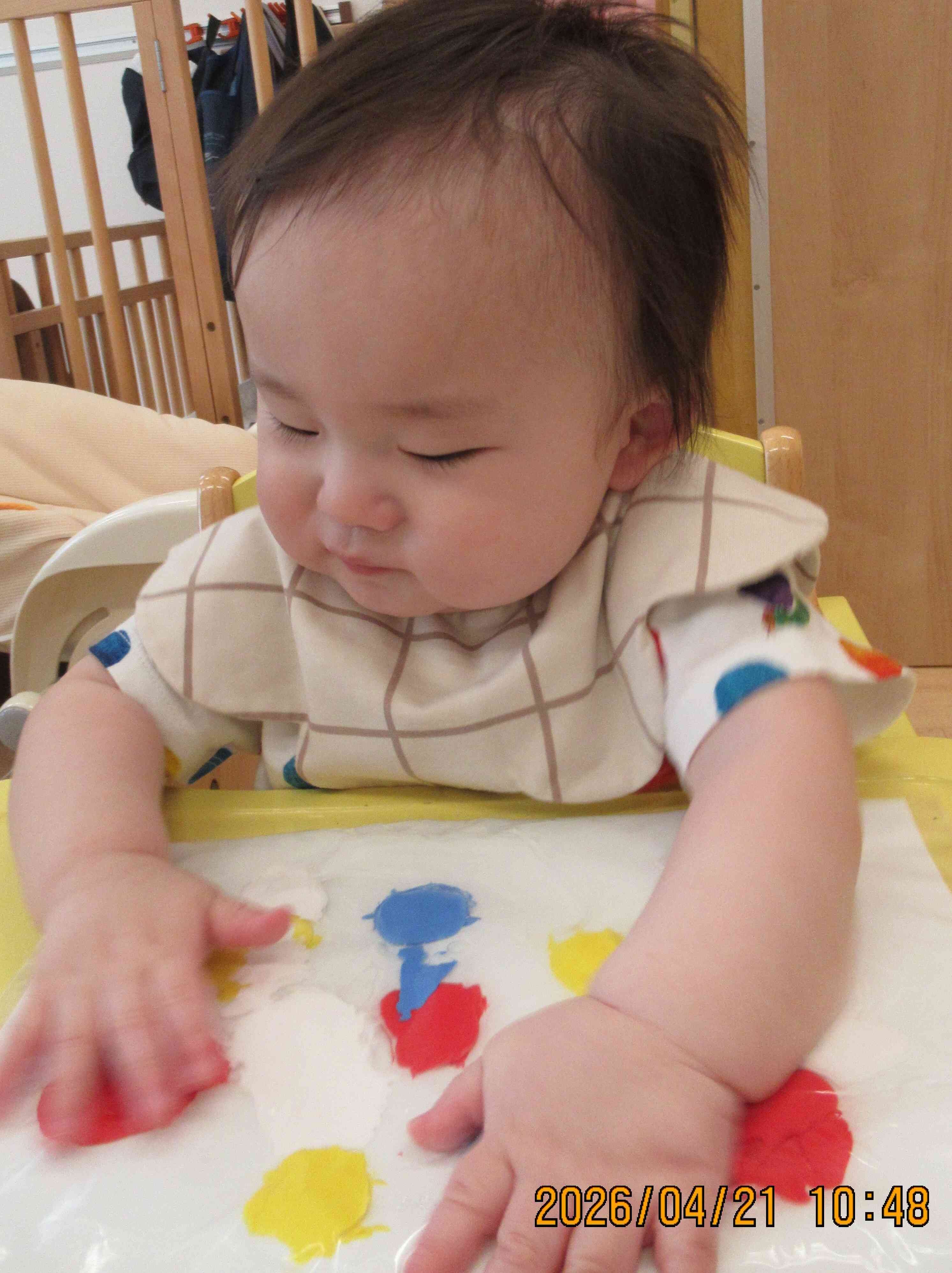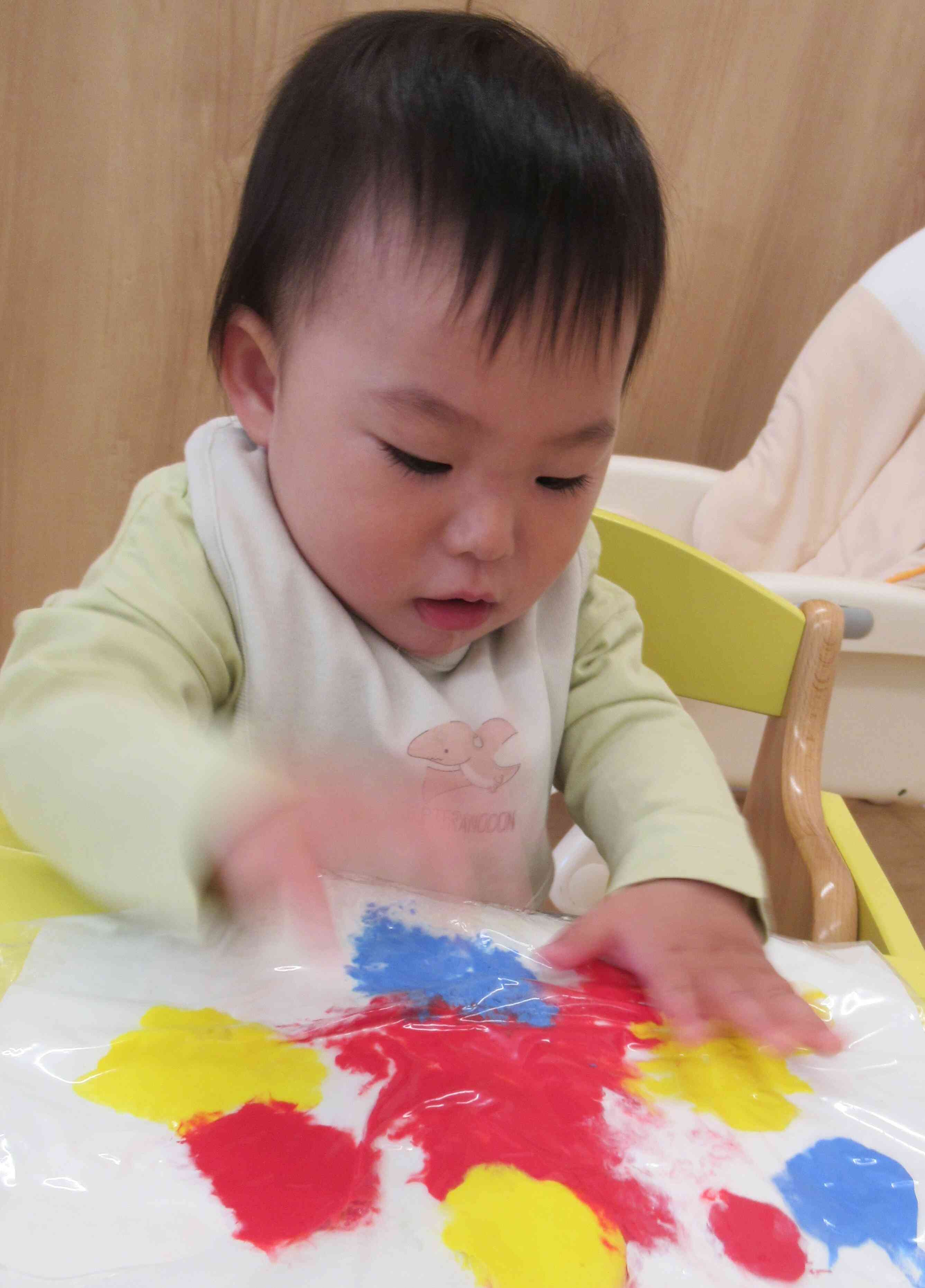 絵具の感触遊び♬~0歳児~