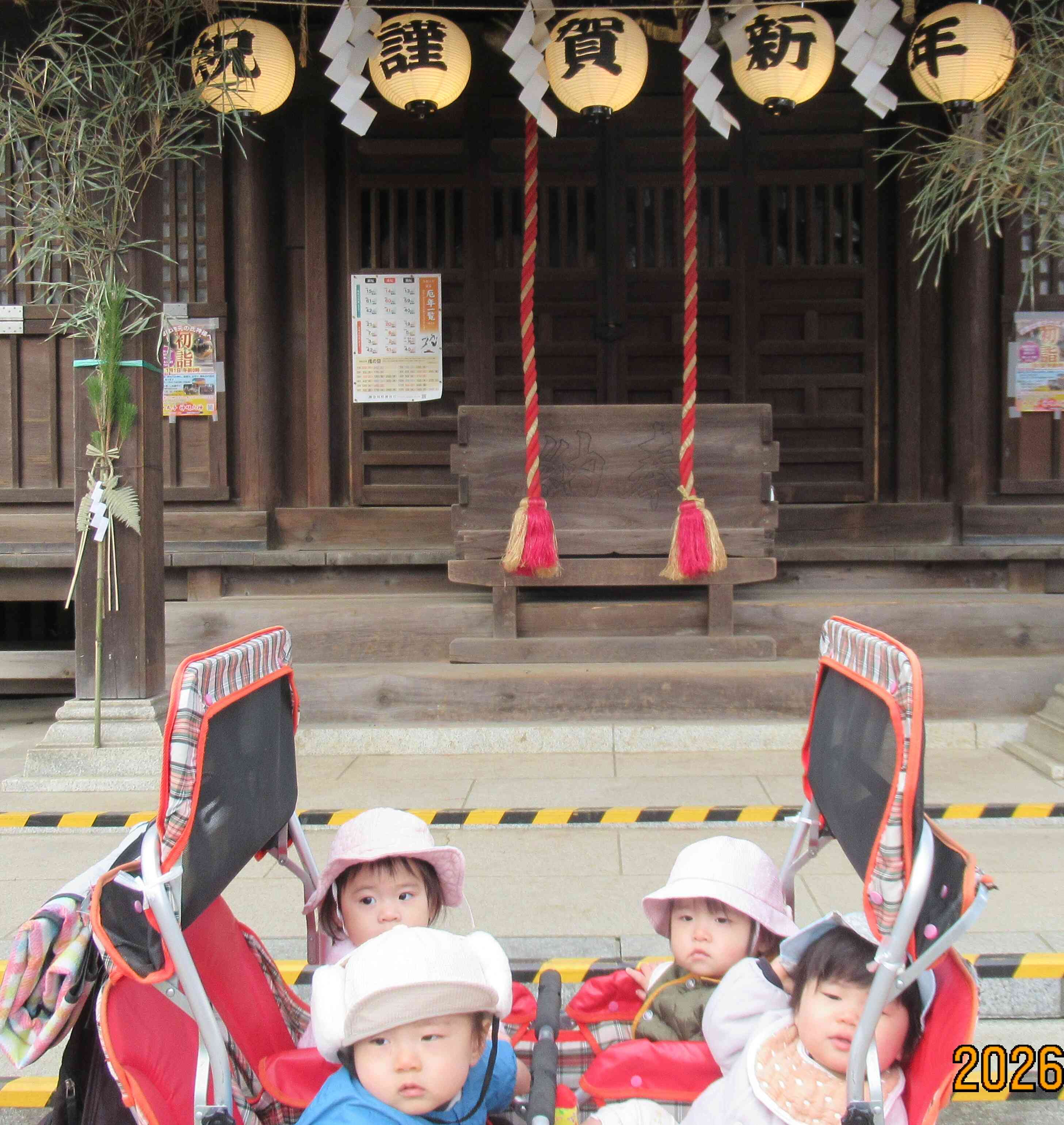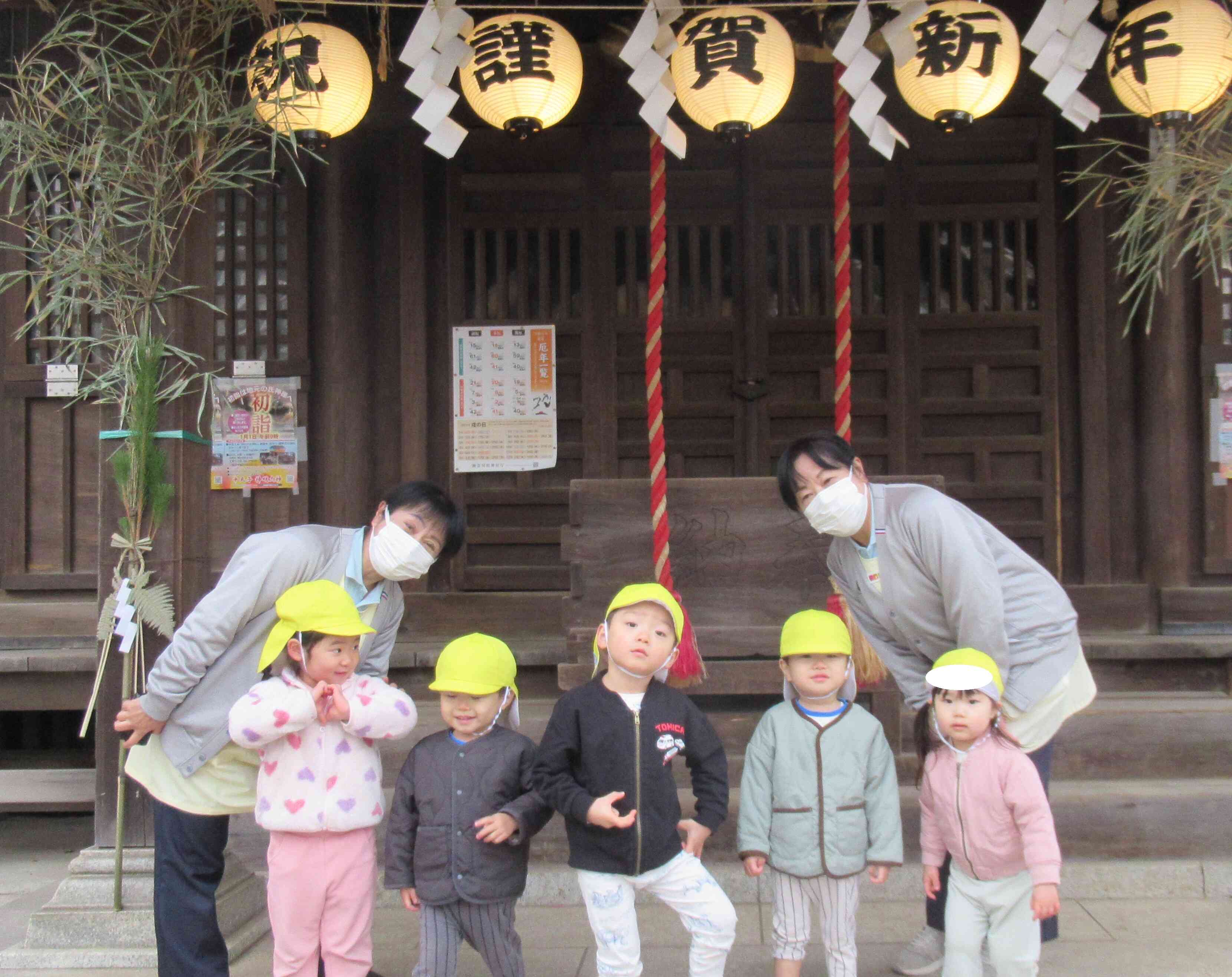 2歳児クラスのお友だちもしっかりお参りすることができましたよ!みんなでお賽銭を入れて、鈴を鳴らしてパンパンと手を叩きお願い事をしました!みんなどんなお願い事をしたのかな~?