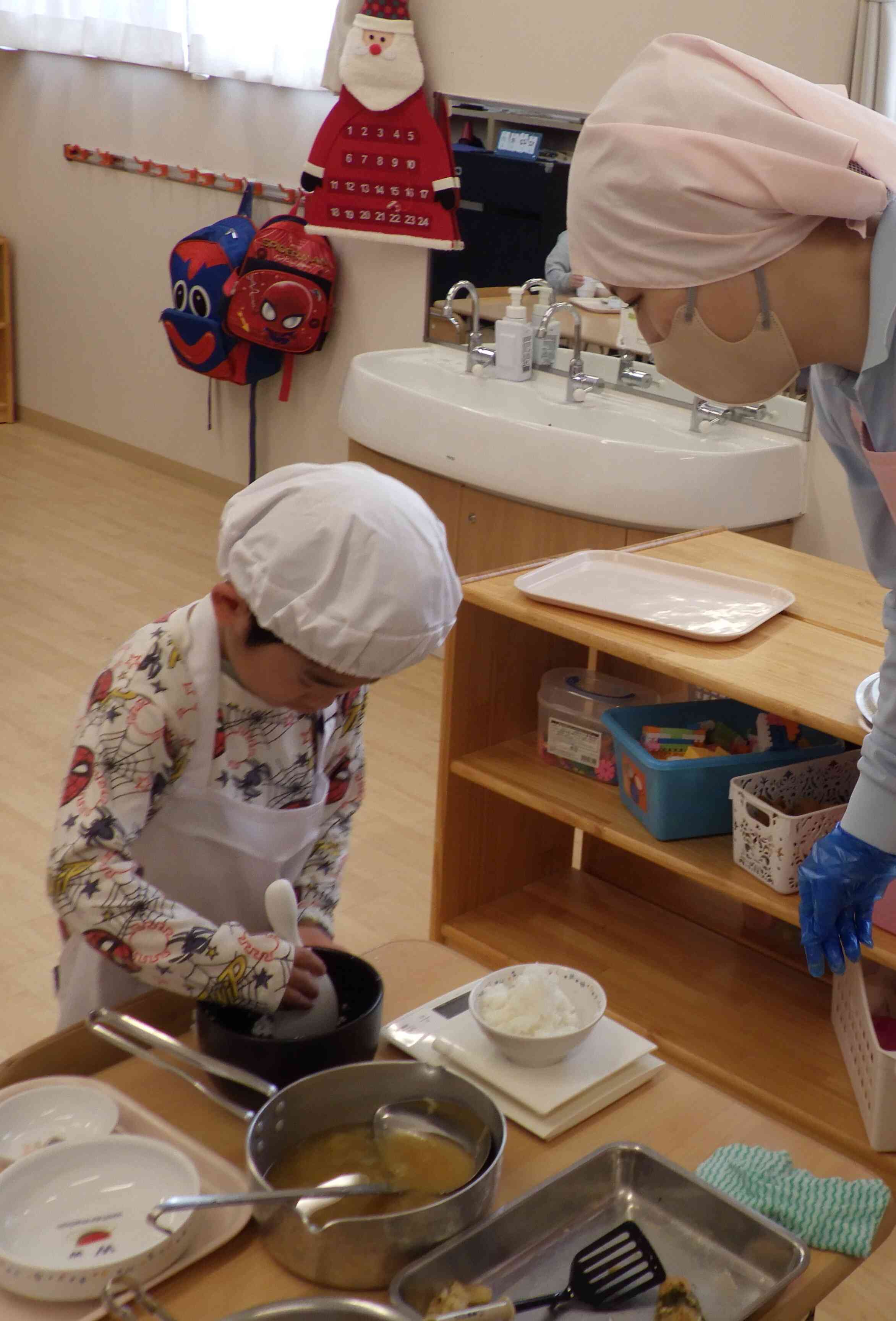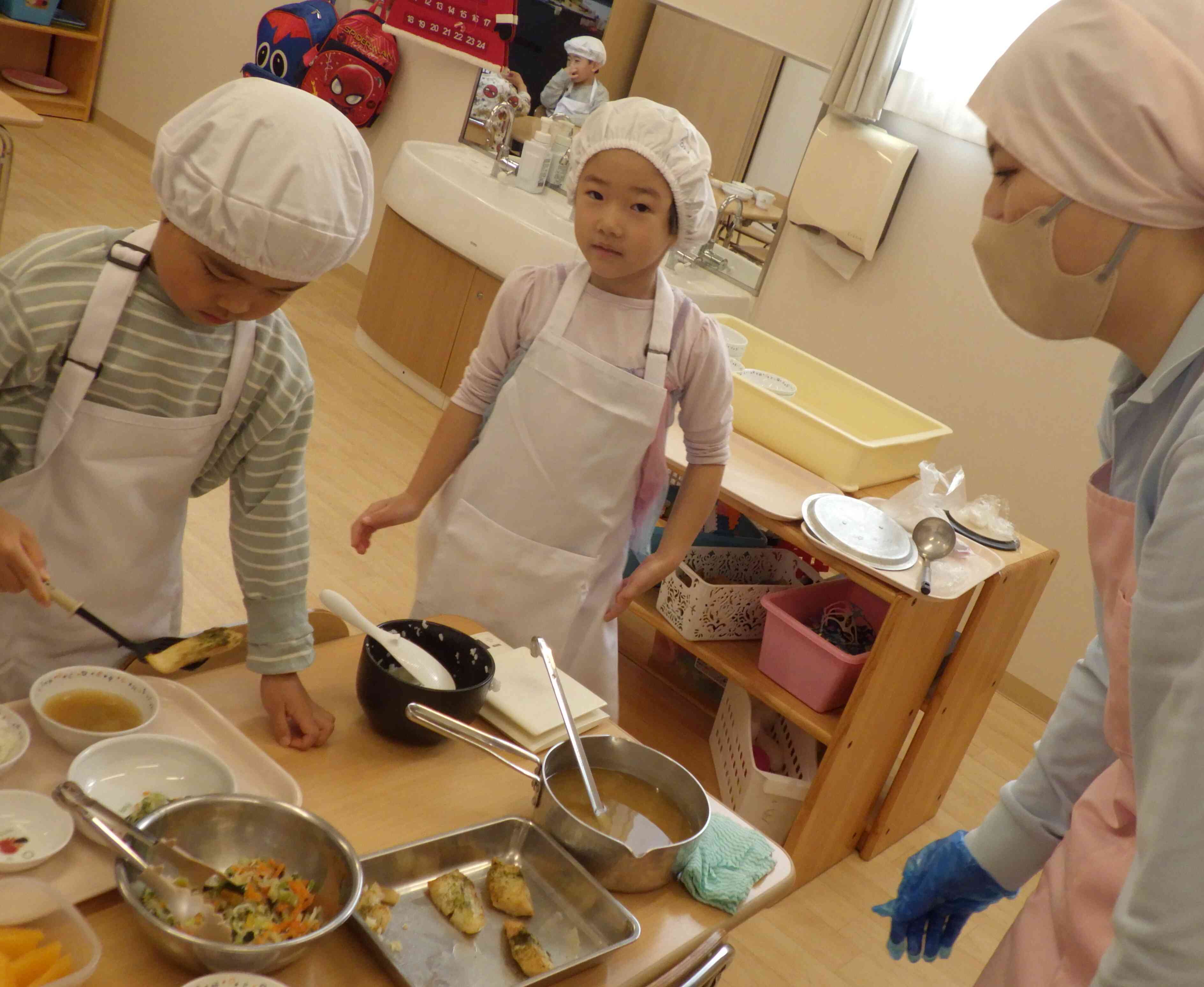 こぼさないようにドキドキしながら毎日楽しく頑張っています!食べられる量だけを考えながら配膳できるようになってきました!小学校生活に向けての第一歩ですね♪