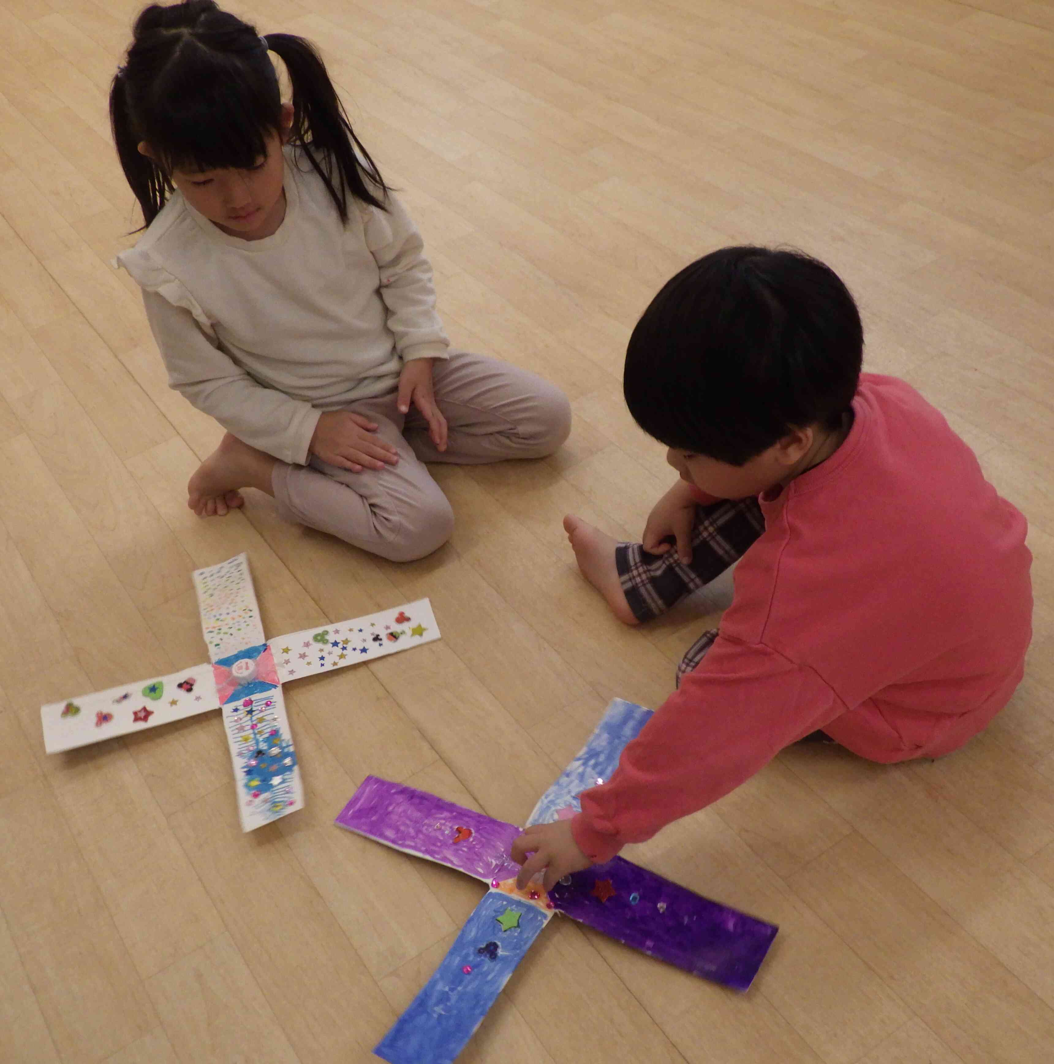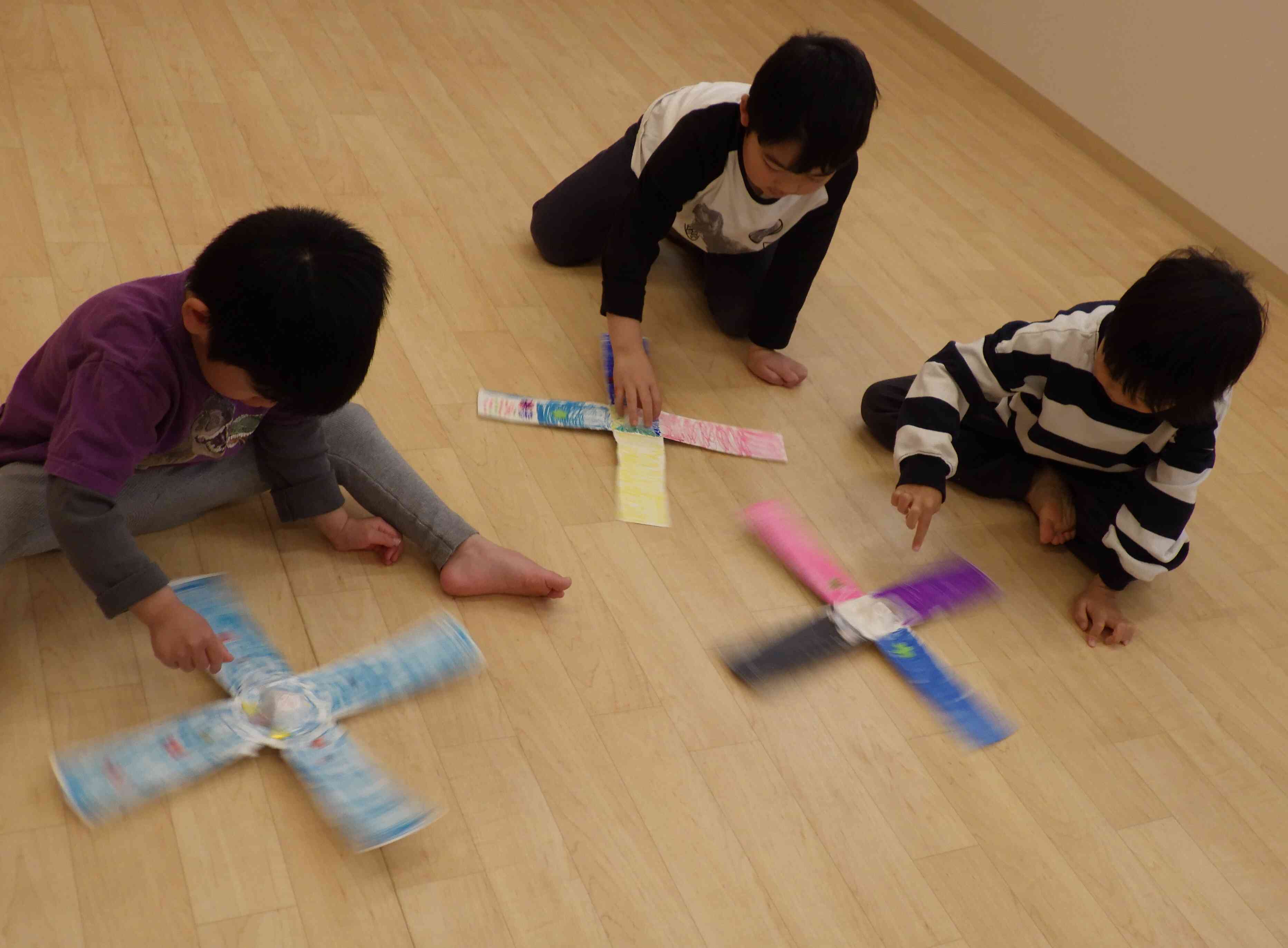 コマ回しもとっても上手になりました!「きれいだね~」「だれが一番長く回っているかな?」と何度も何度も繰り返し楽しむことができました!