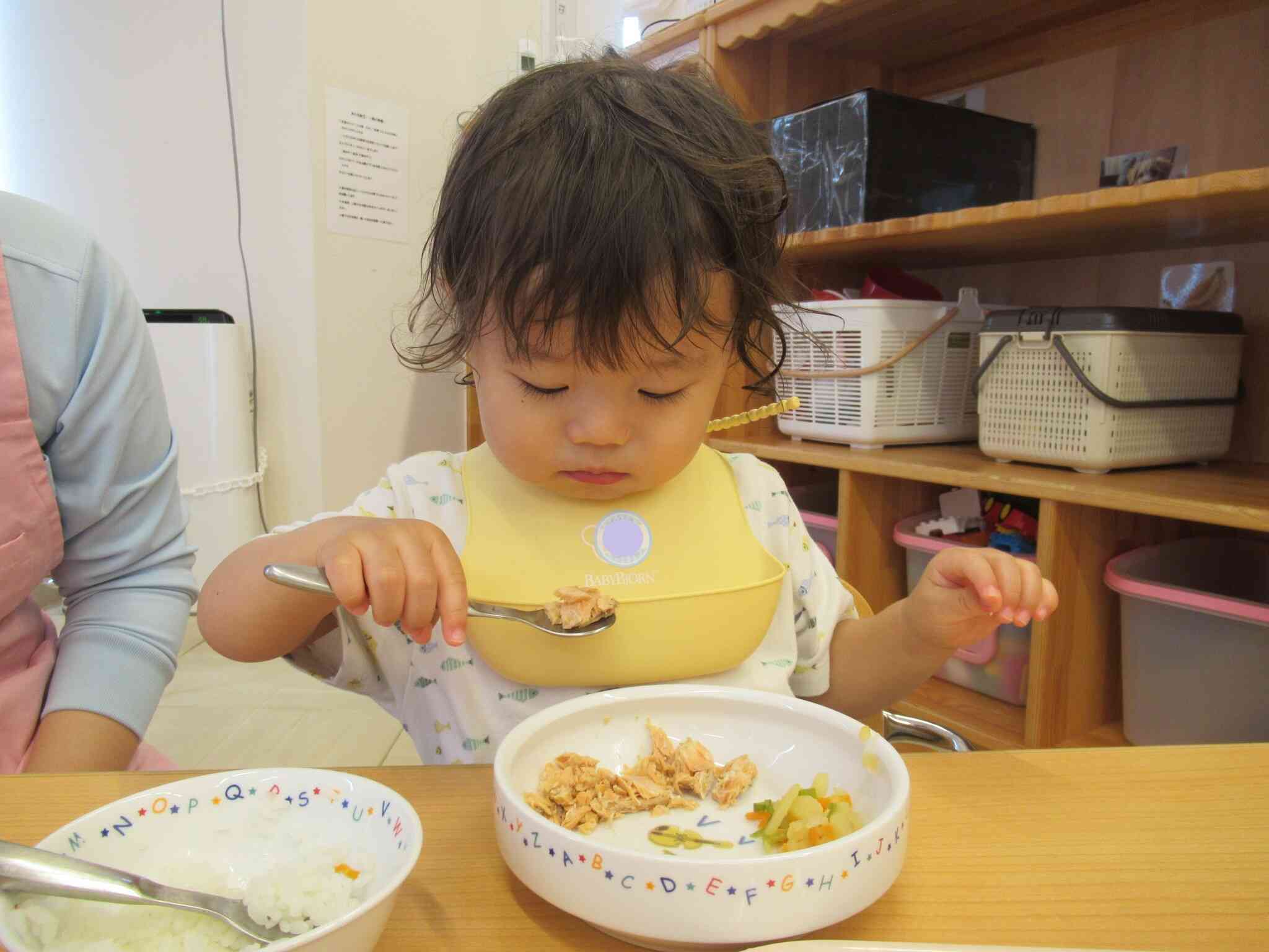 昼食をみんなで食べることで、「一緒に食べるほうがよりおいしい」と感じる体験を十分に積み重ねます。