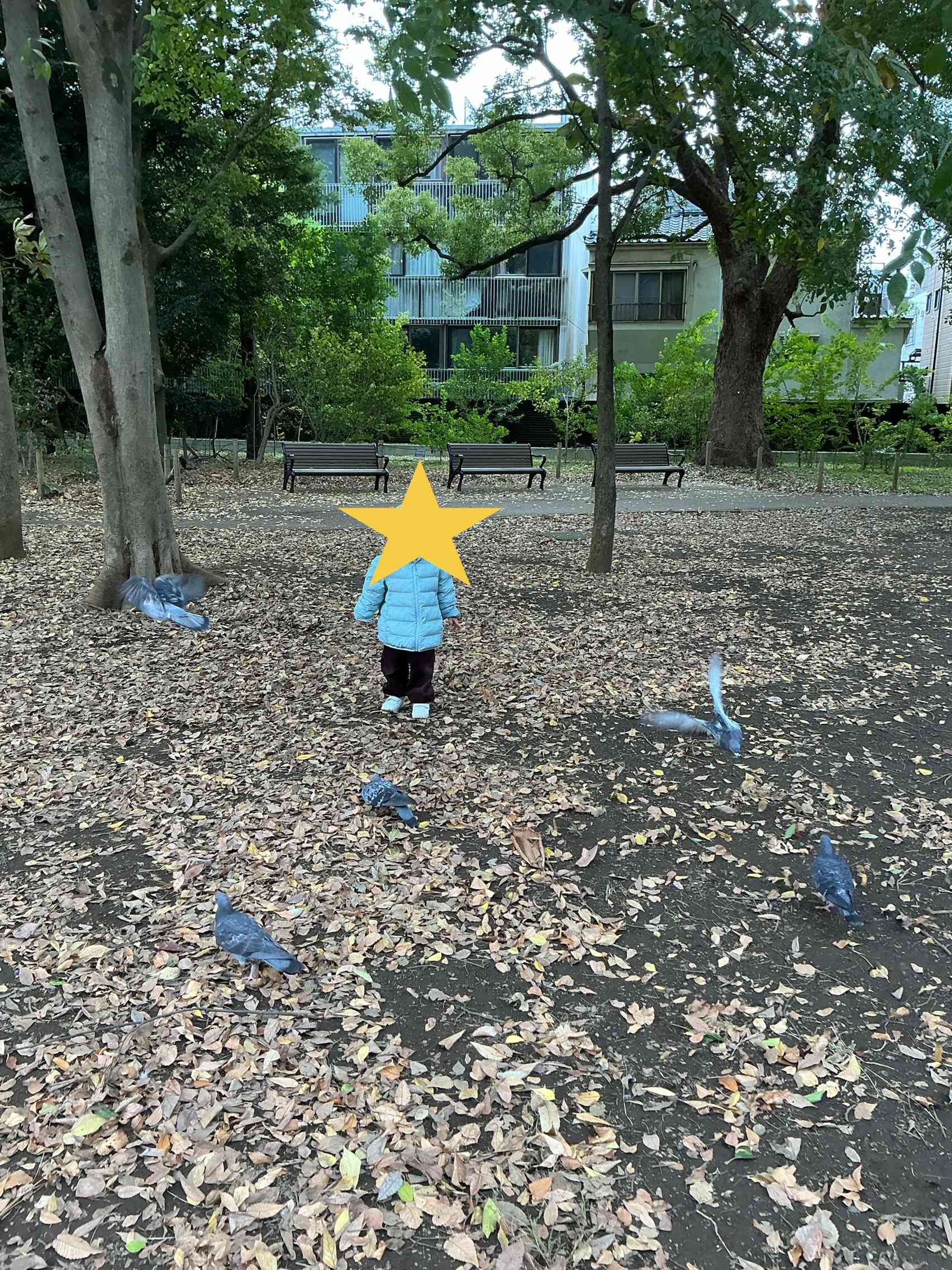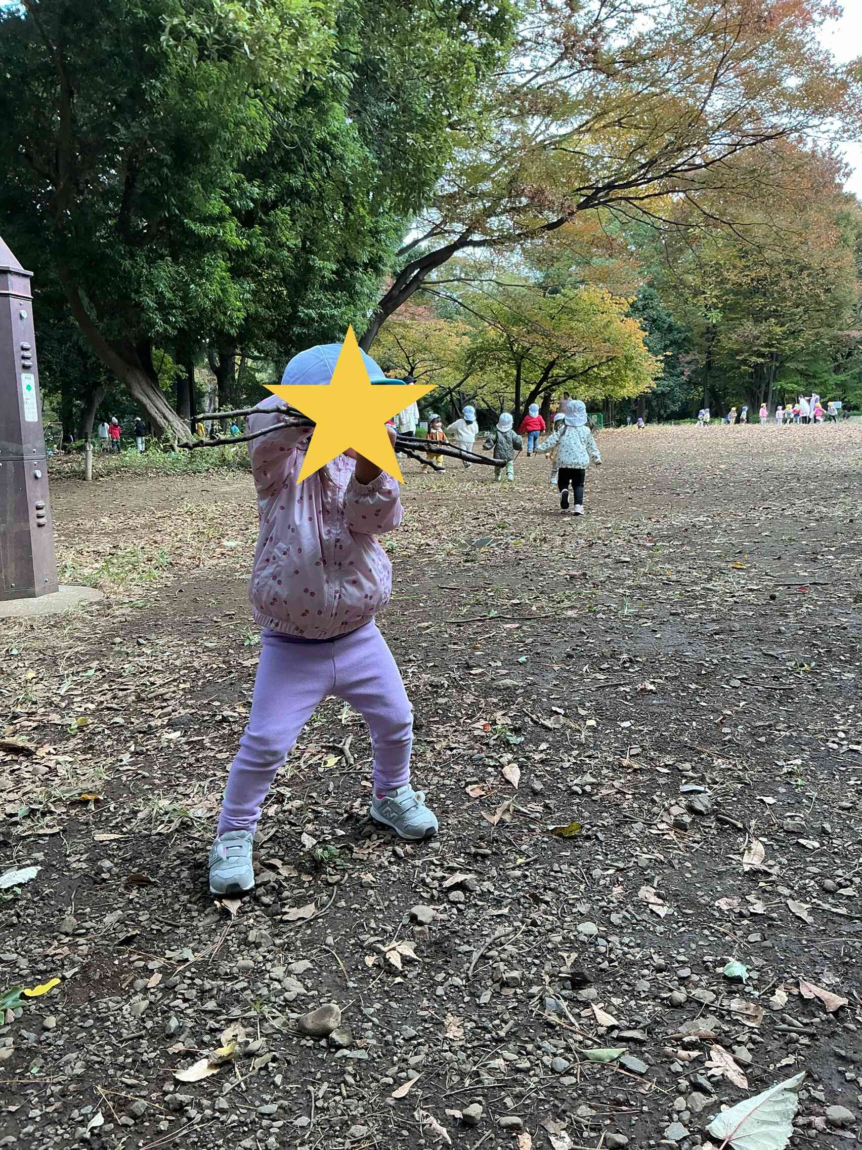 林試の森公園へあそびに行きました。風に吹かれて葉っぱが落ちてくる様子に子ども達は大興奮!